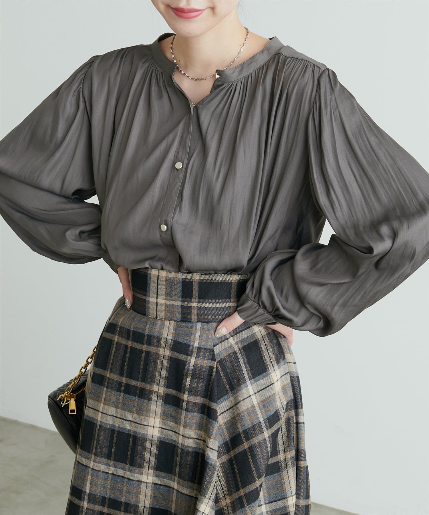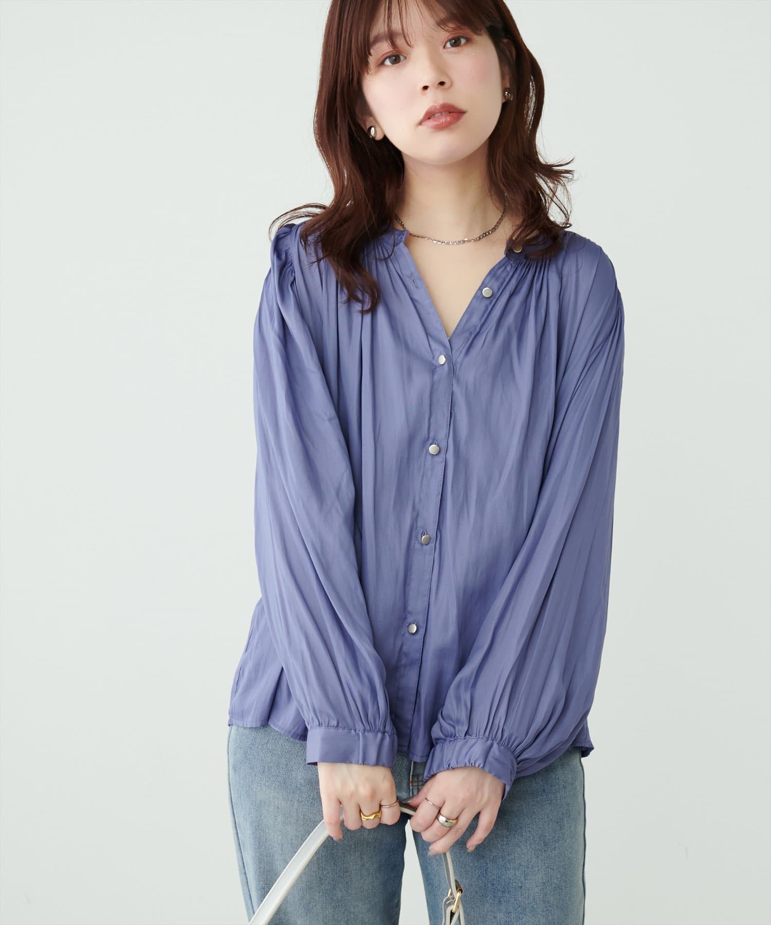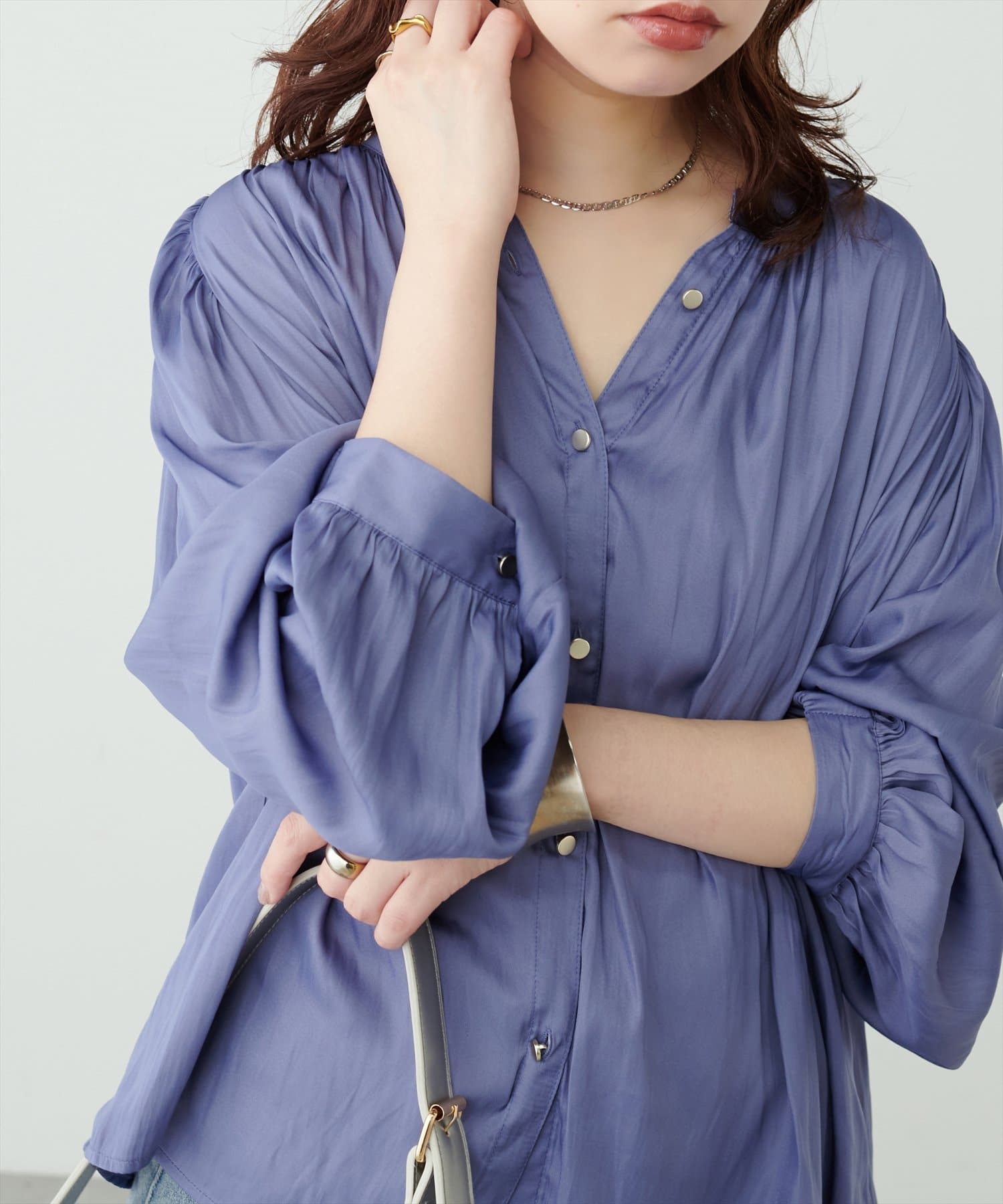 マット釦とろみサテンブラウス