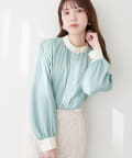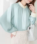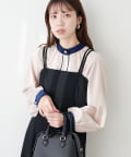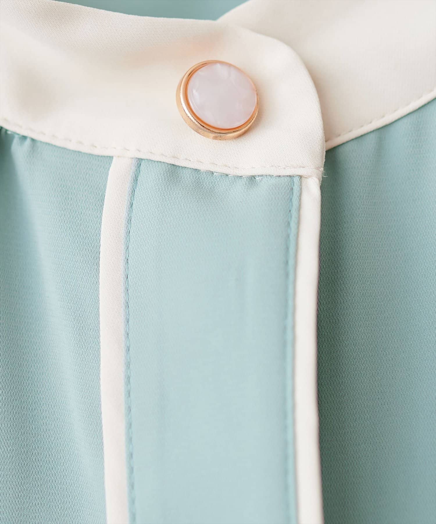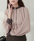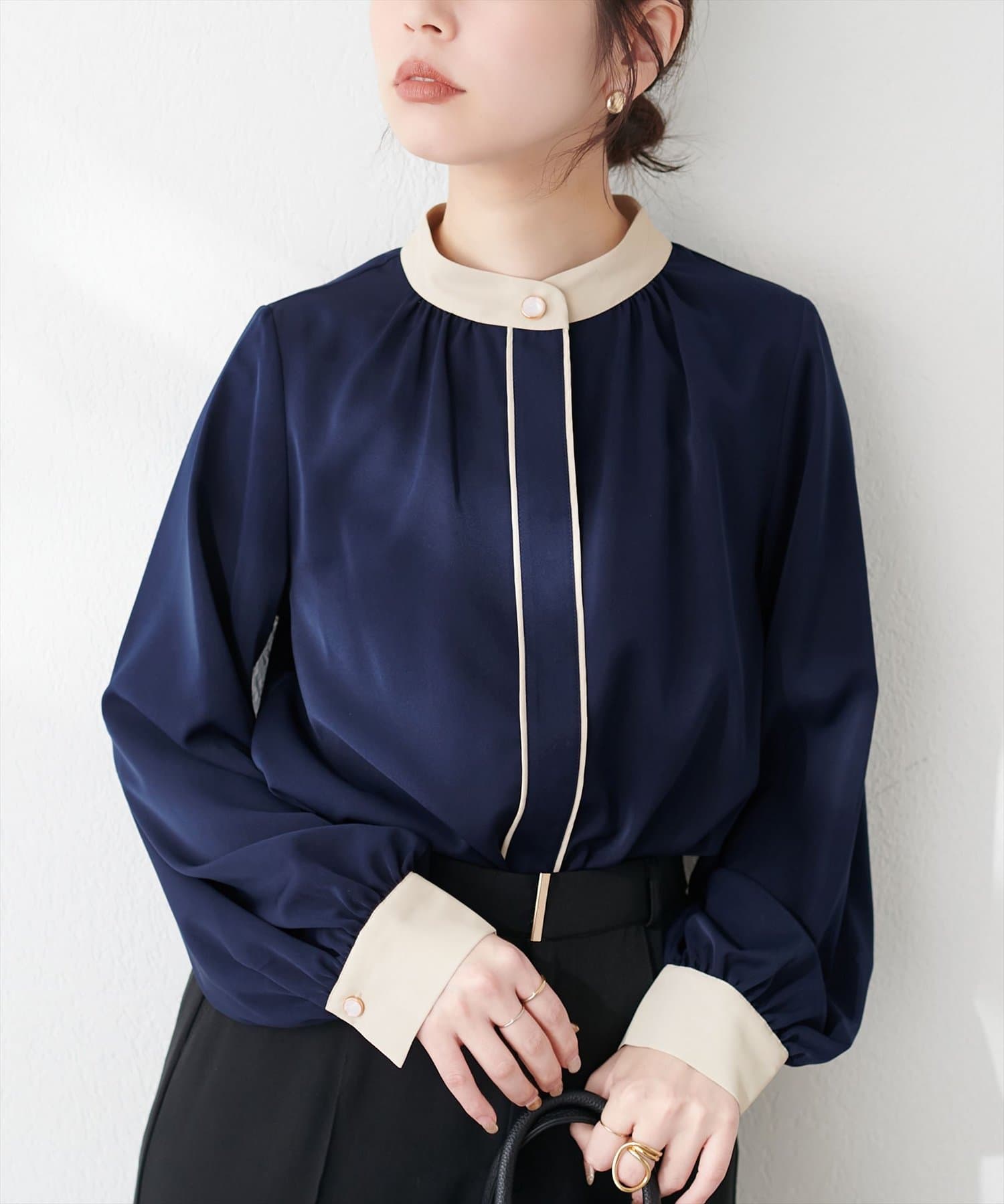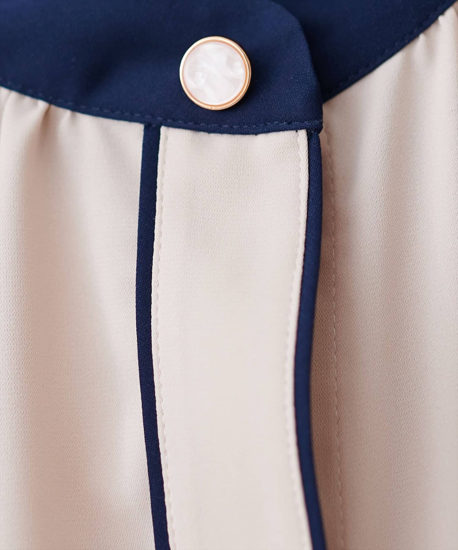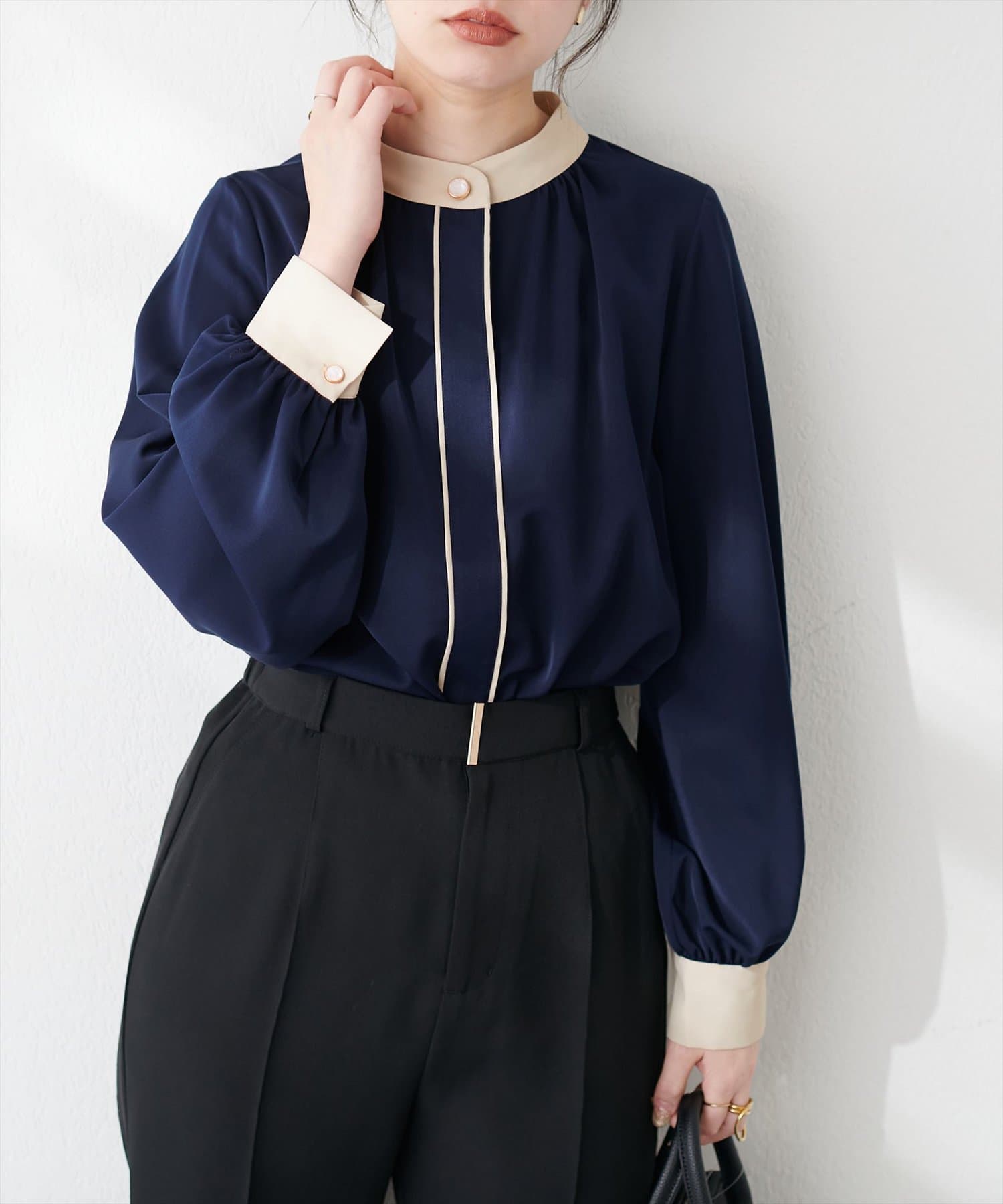 351310400:【WEB限定】バイカラーデザイン釦ブラウス