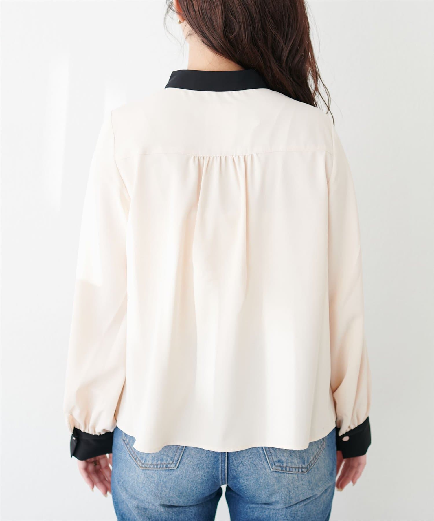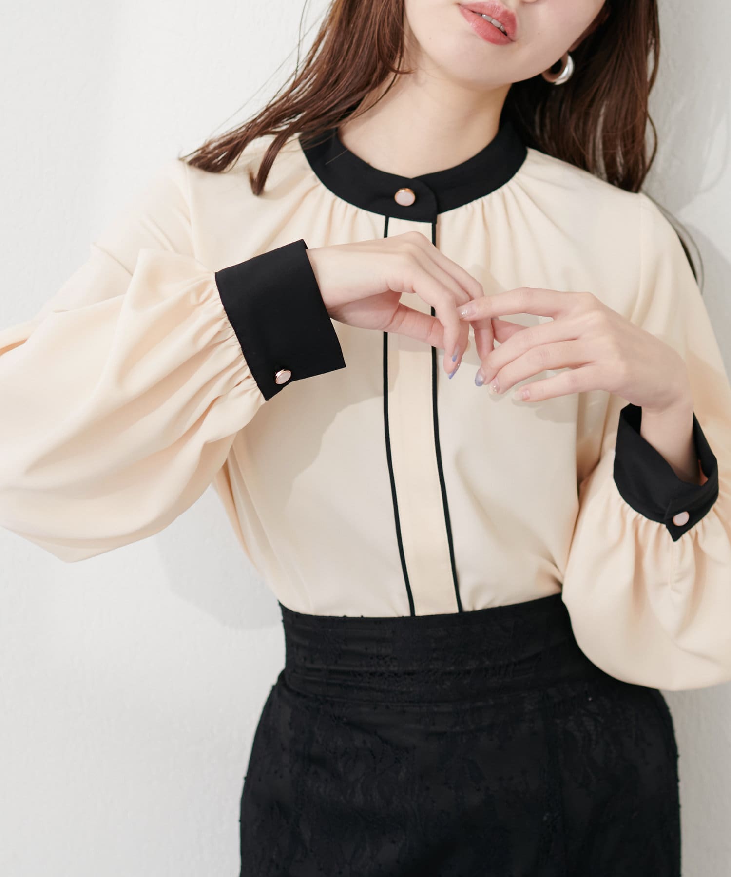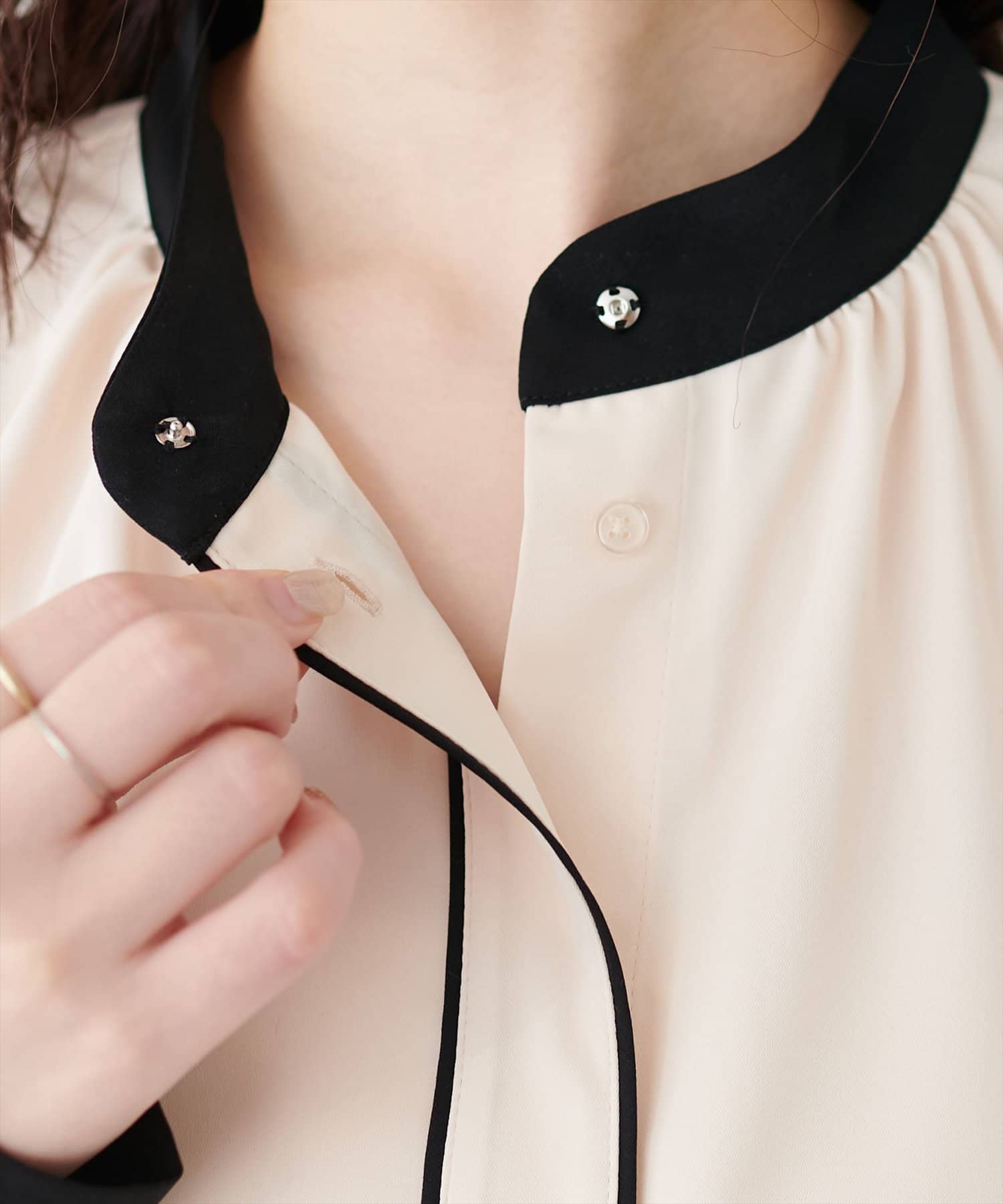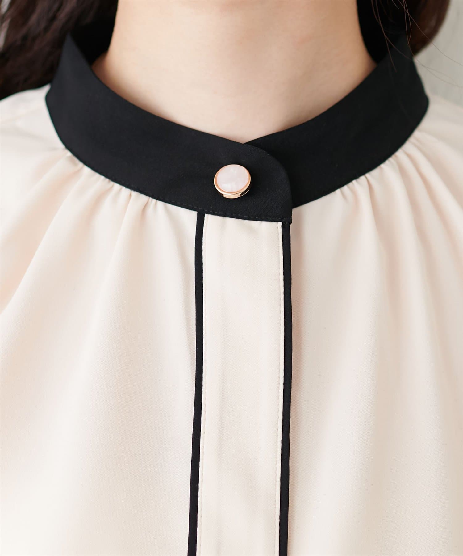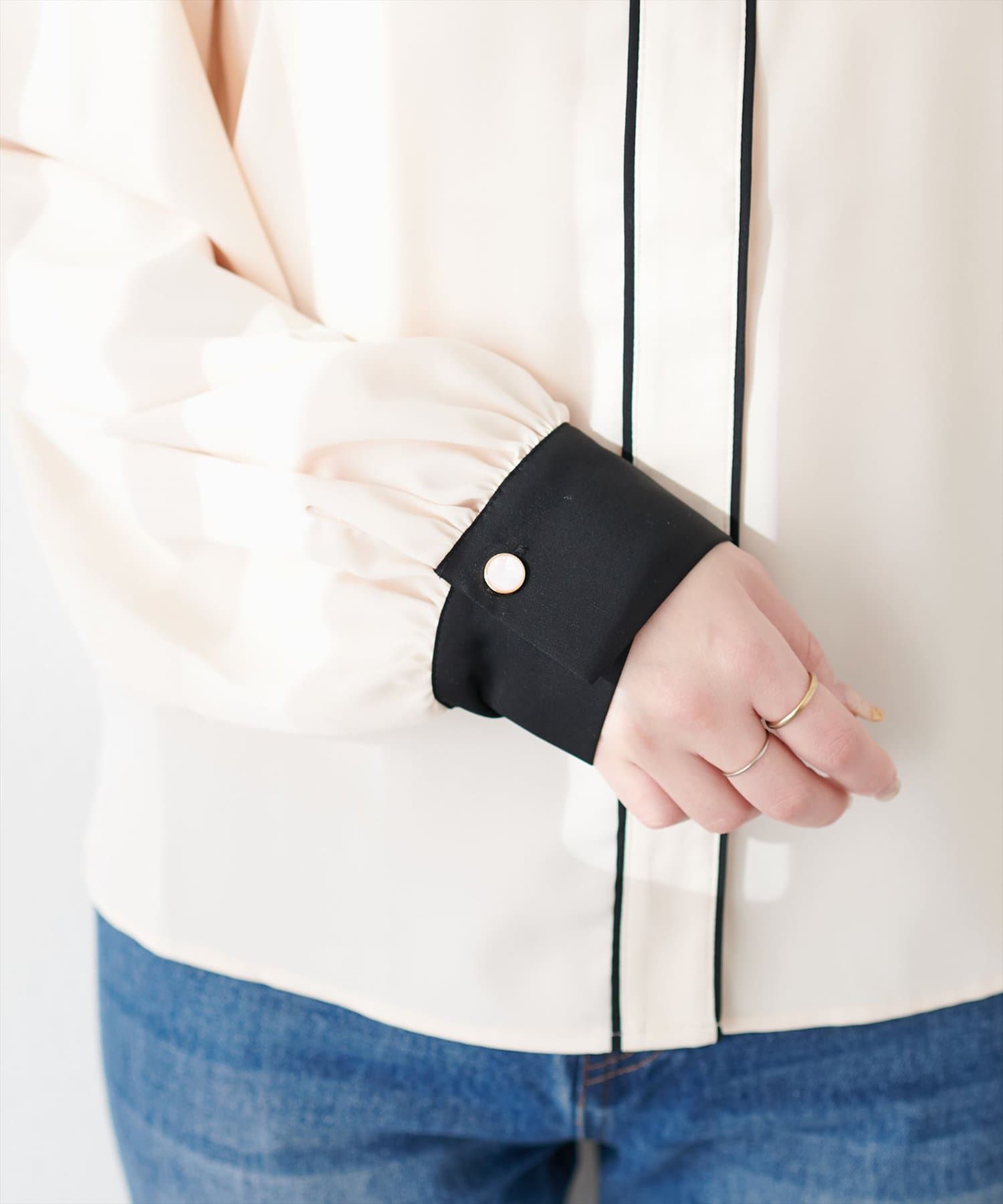 341310490:【WEB限定】バイカラーデザイン釦ブラウス