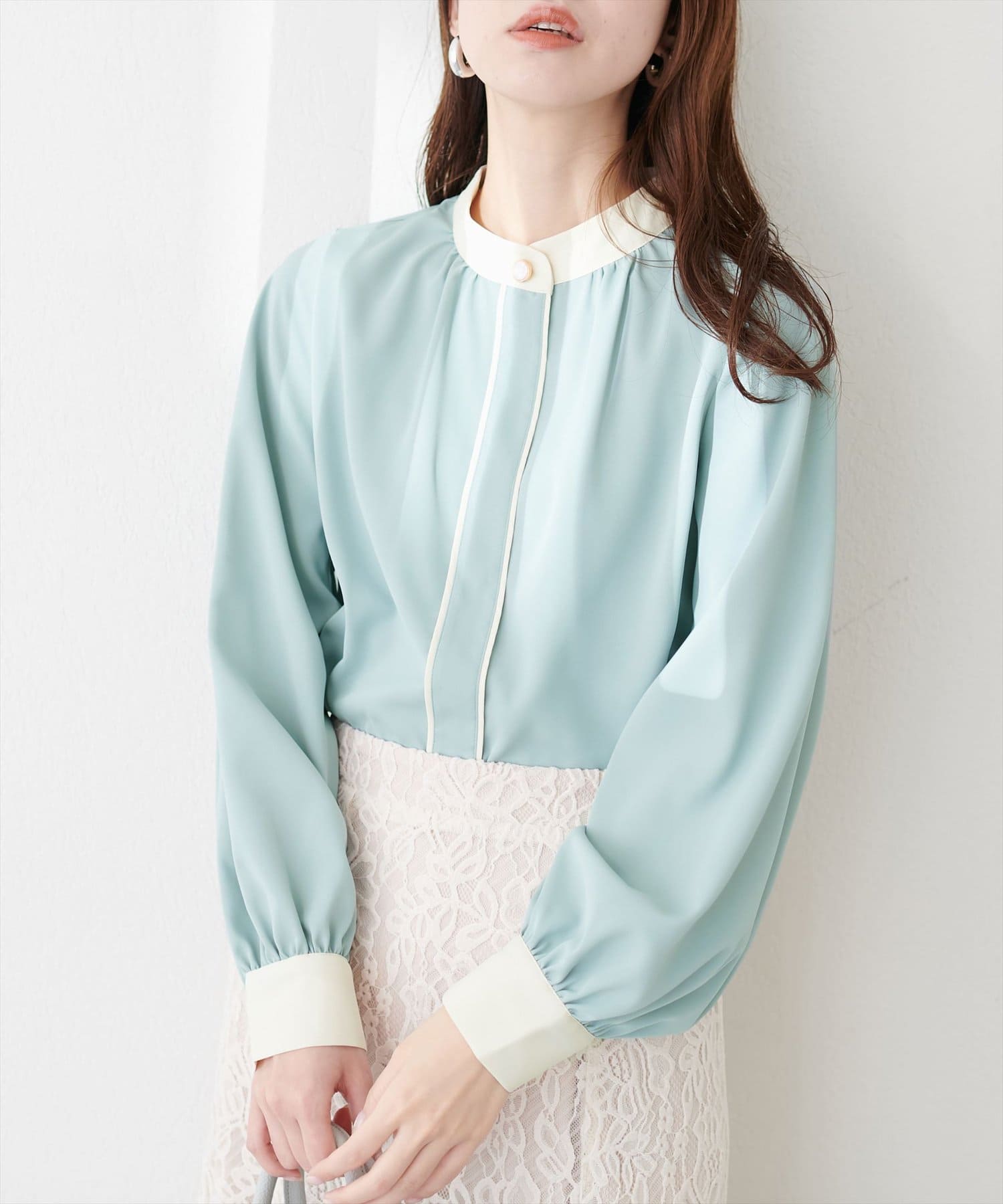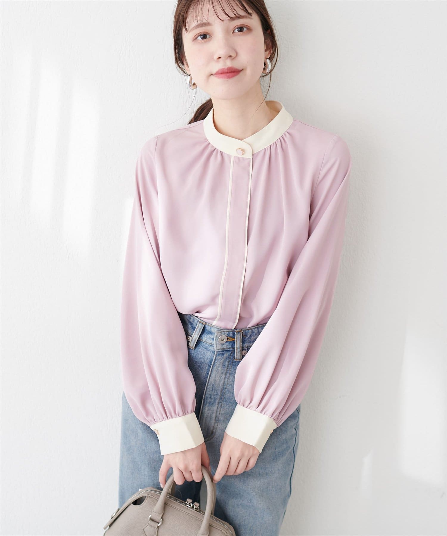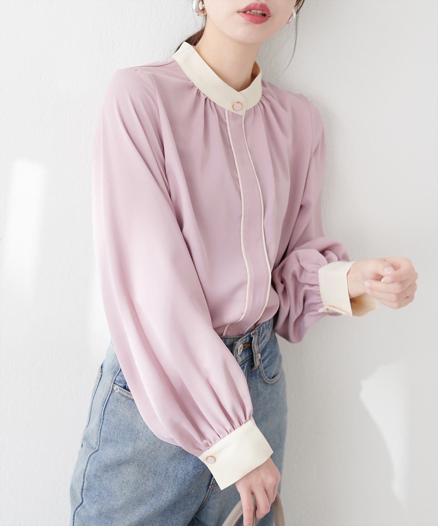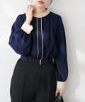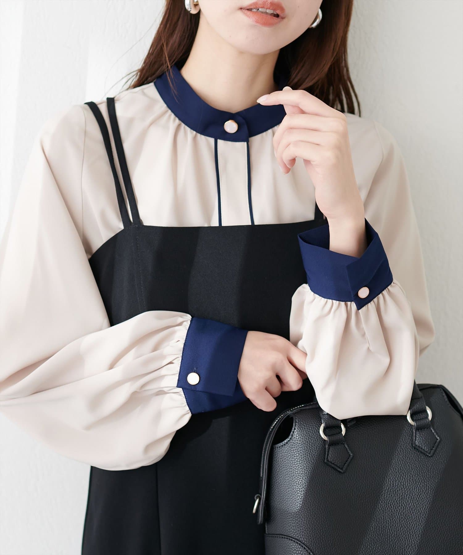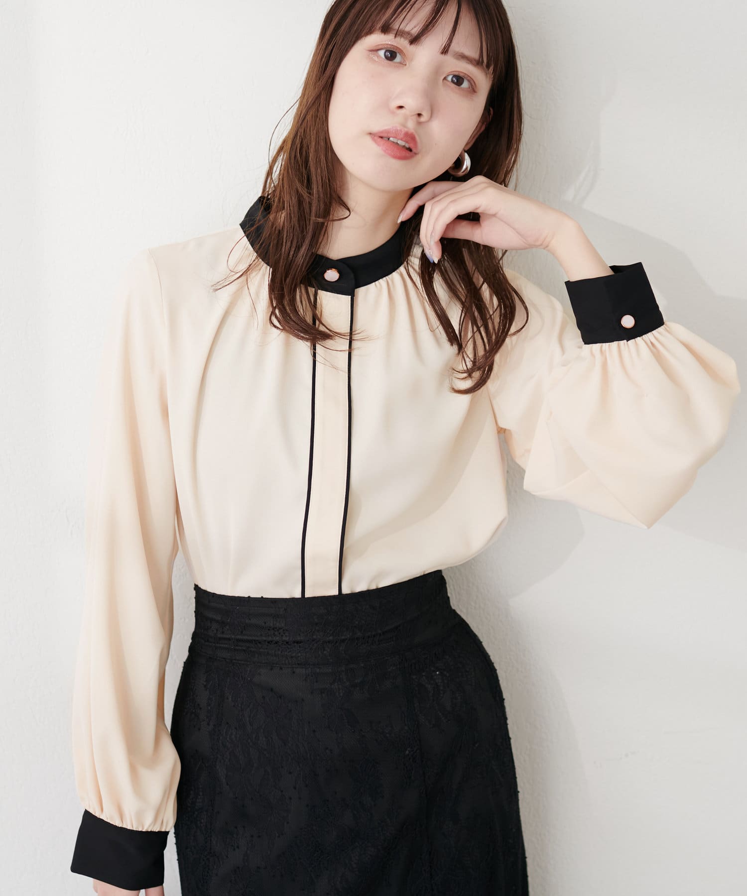341310490:【WEB限定】バイカラーデザイン釦ブラウス