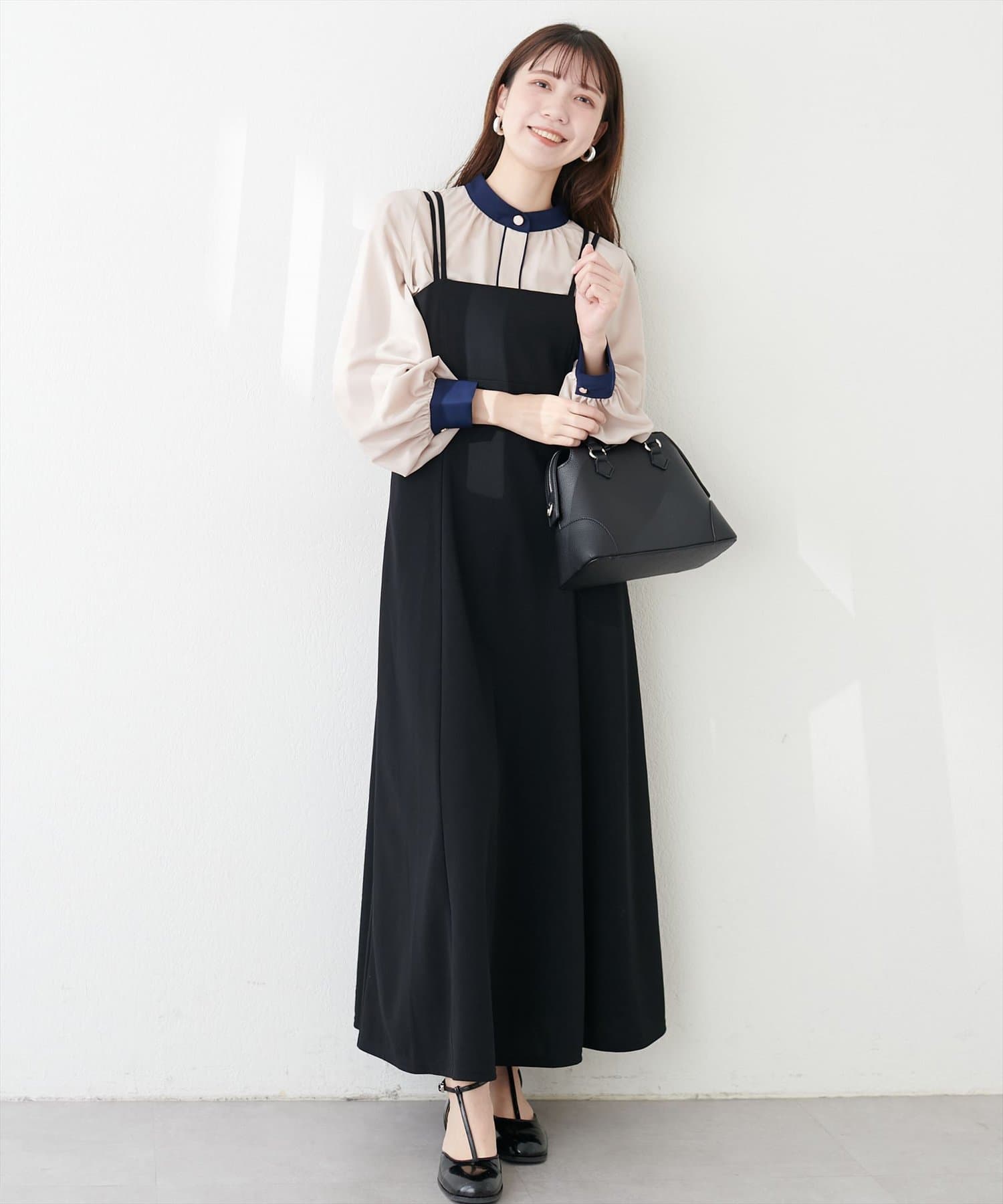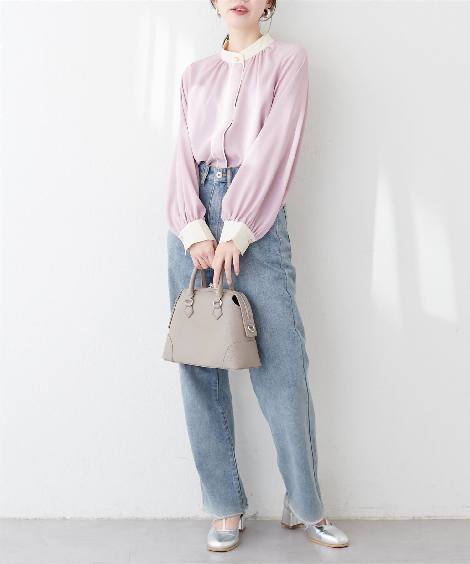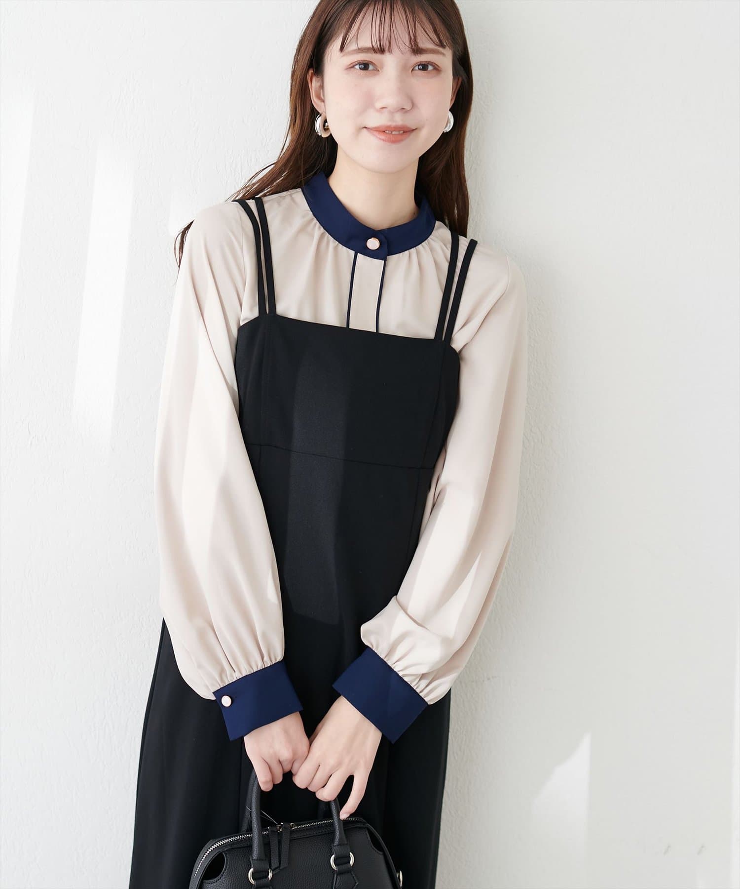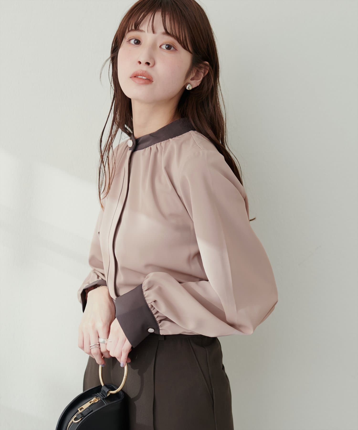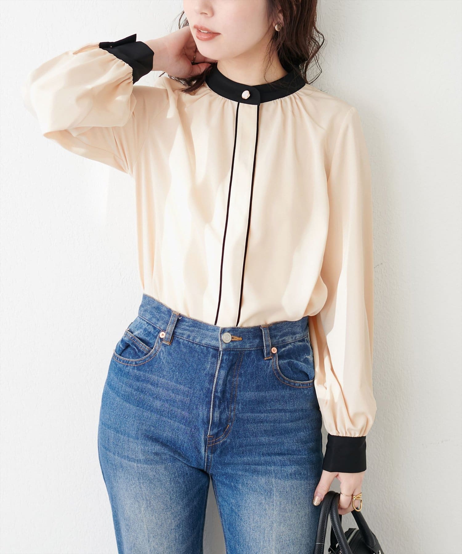 341310490:【WEB限定】バイカラーデザイン釦ブラウス
