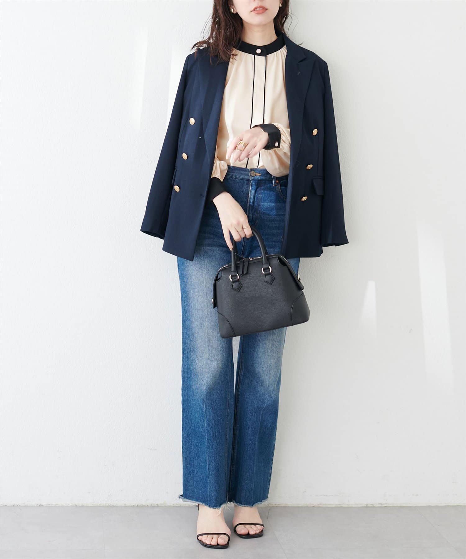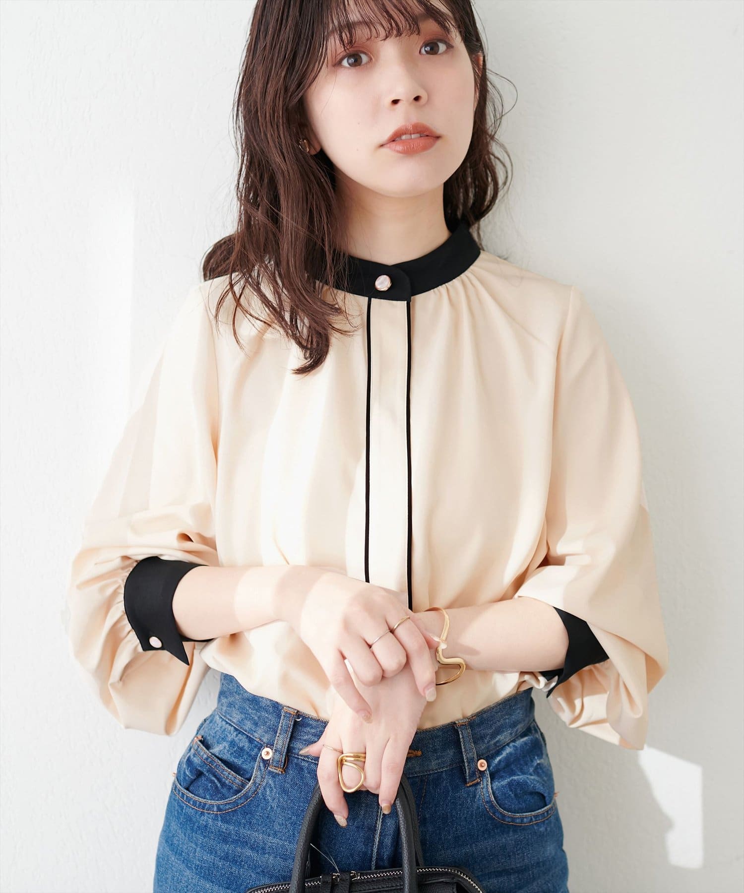バイカラーと上品な釦使いが目を惹くキレイめブラウス
