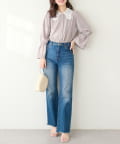 スカート合わせでフェミニンスタイルはもちろん、デニムを合わせてカジュアルダウンするのもおすすめ◎