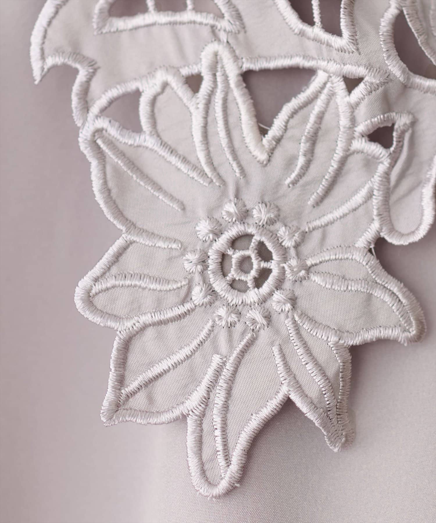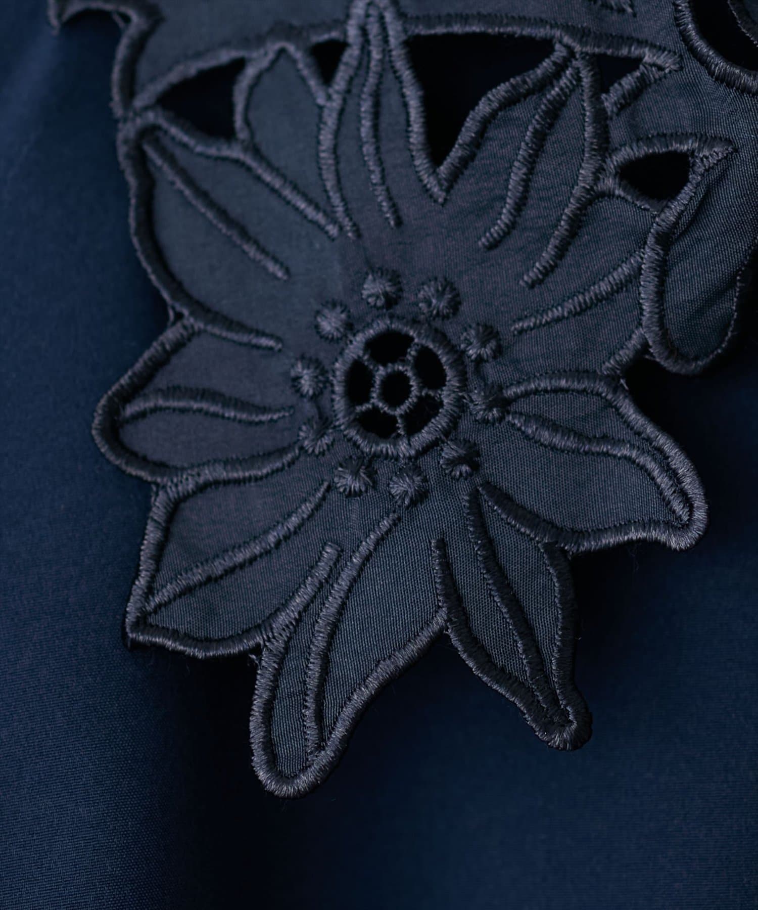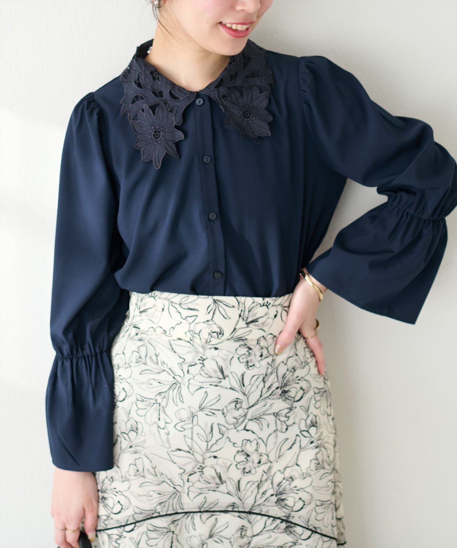 大き目の花柄レース生地の衿が大人上品なブラウス。