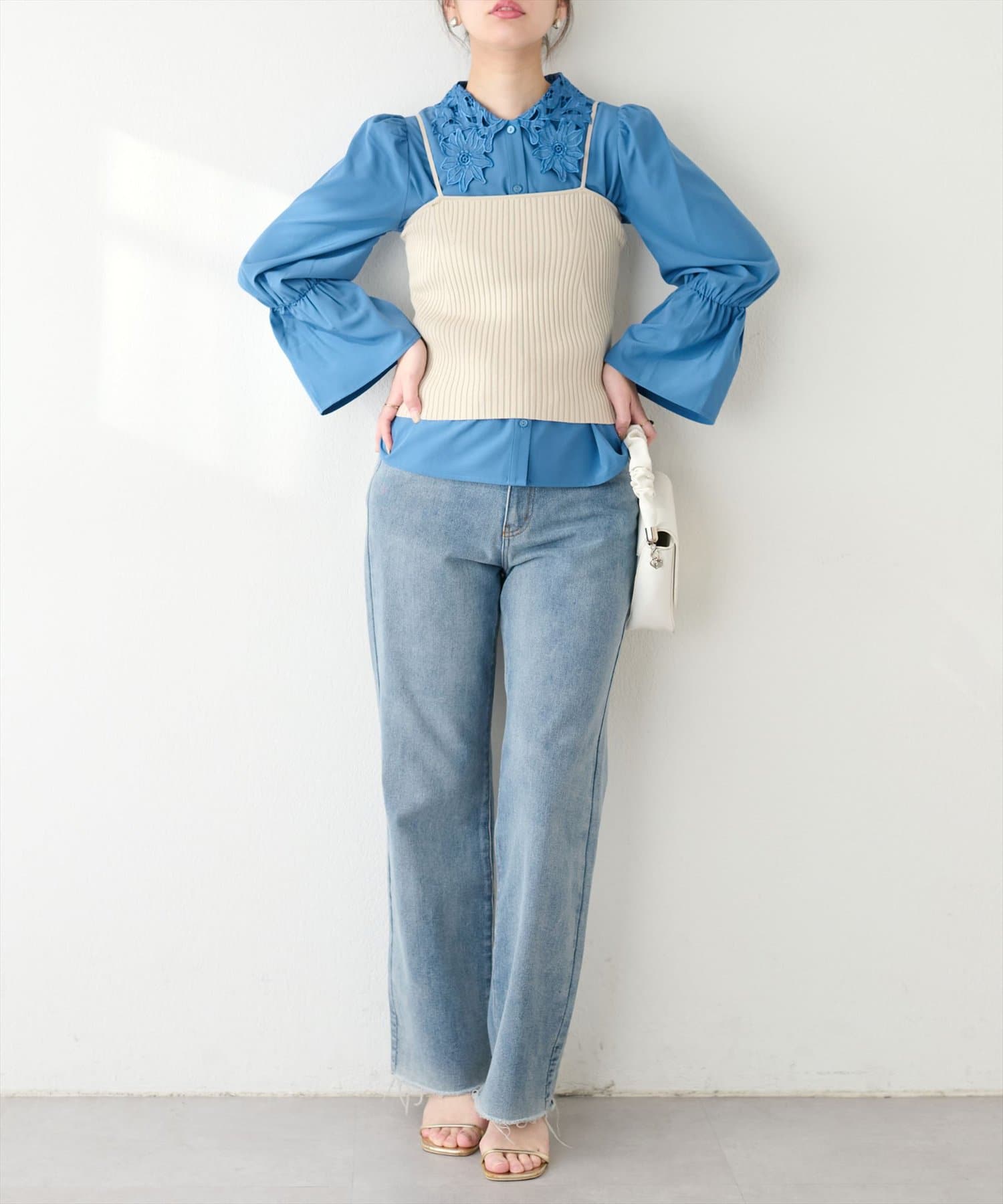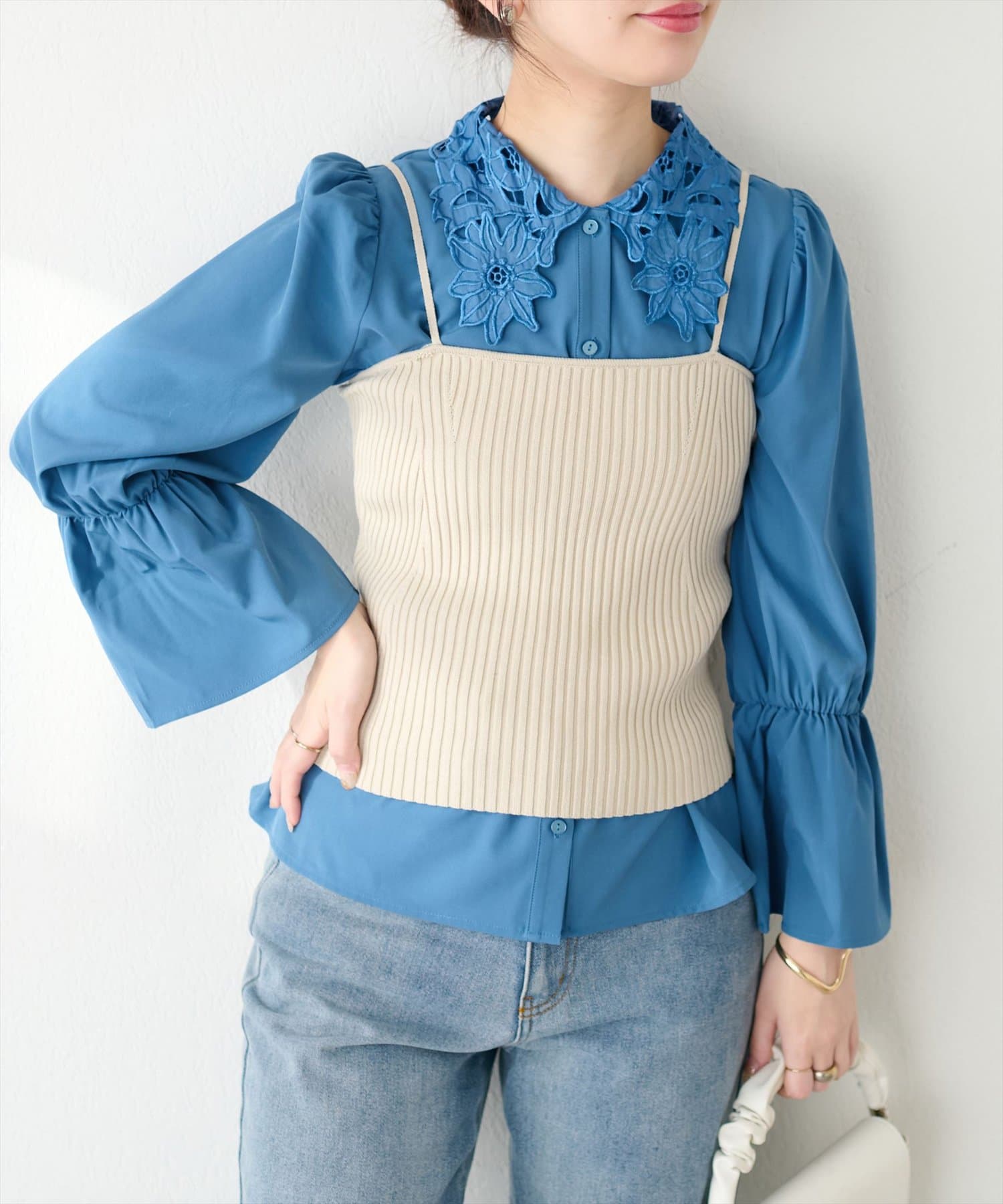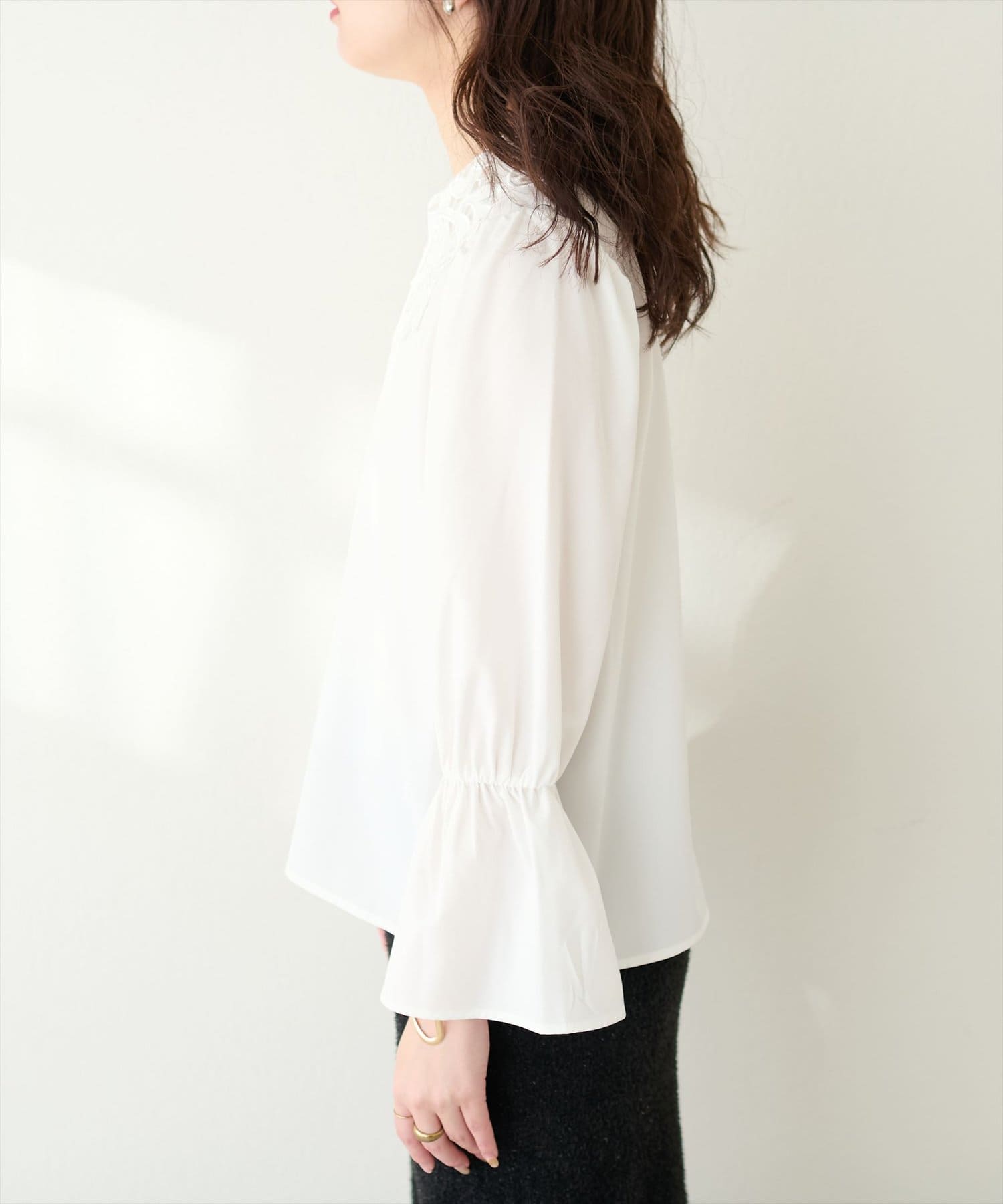 レース衿とキャンディスリーブが大人フェミニンなブラウスが登場!