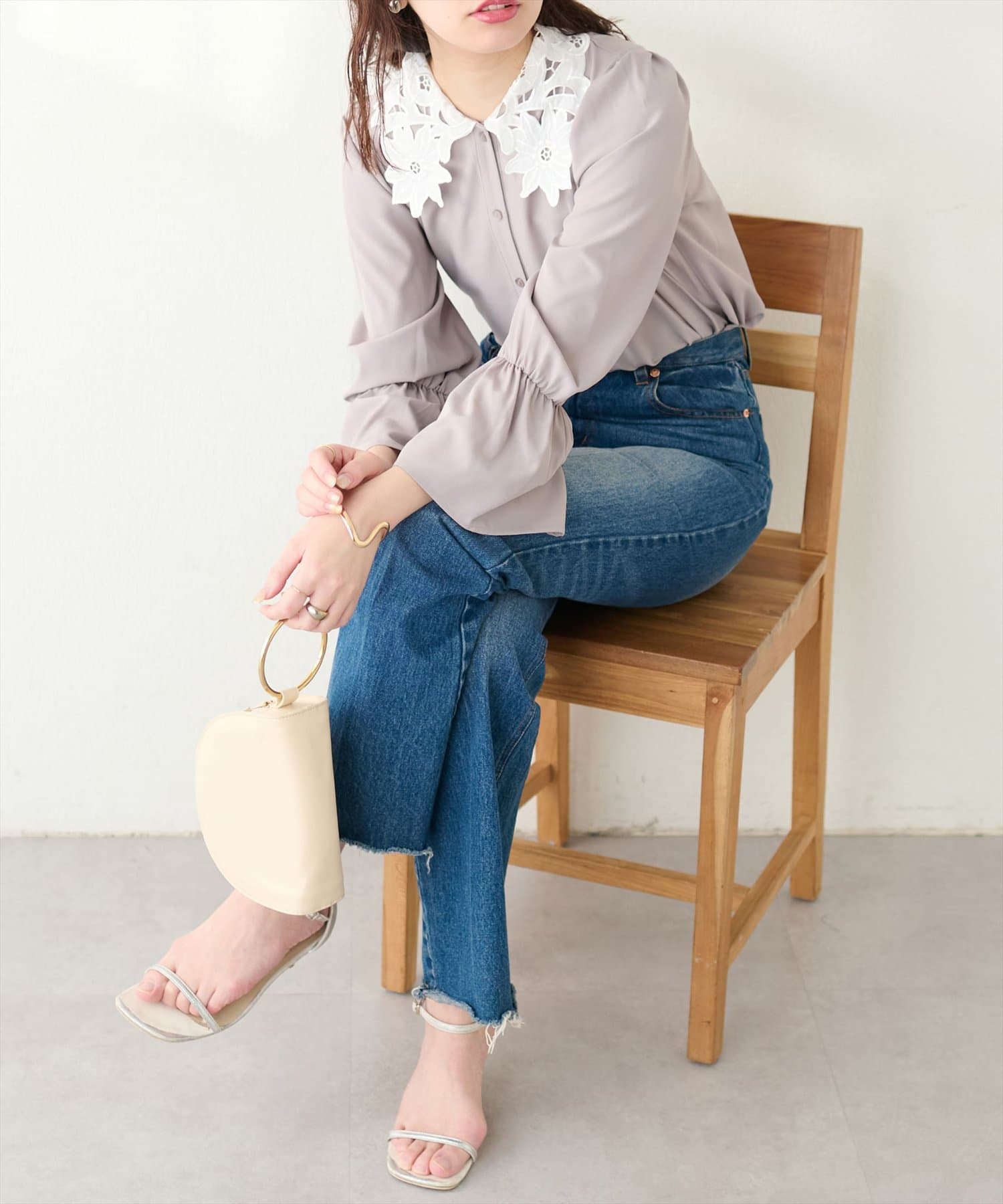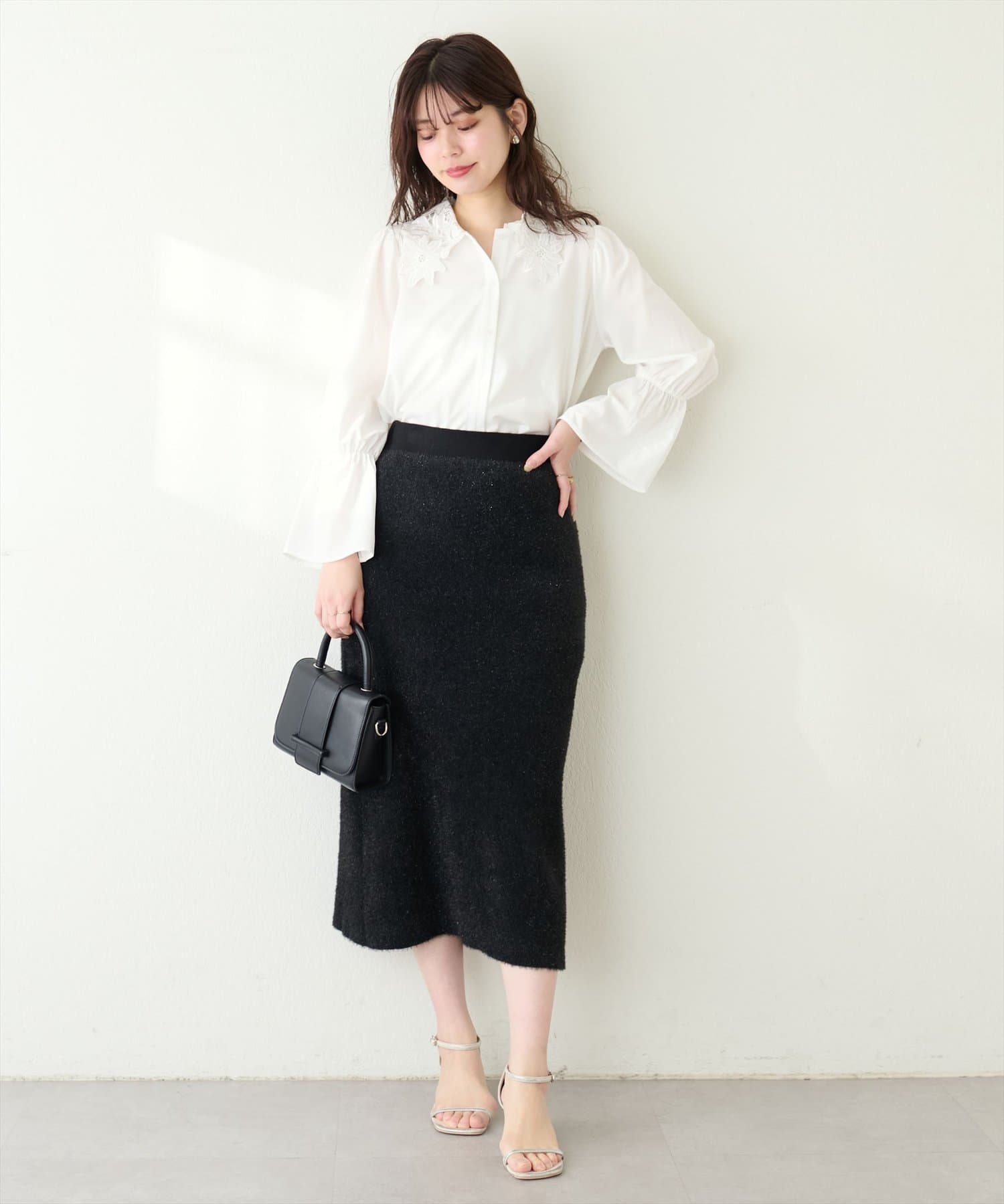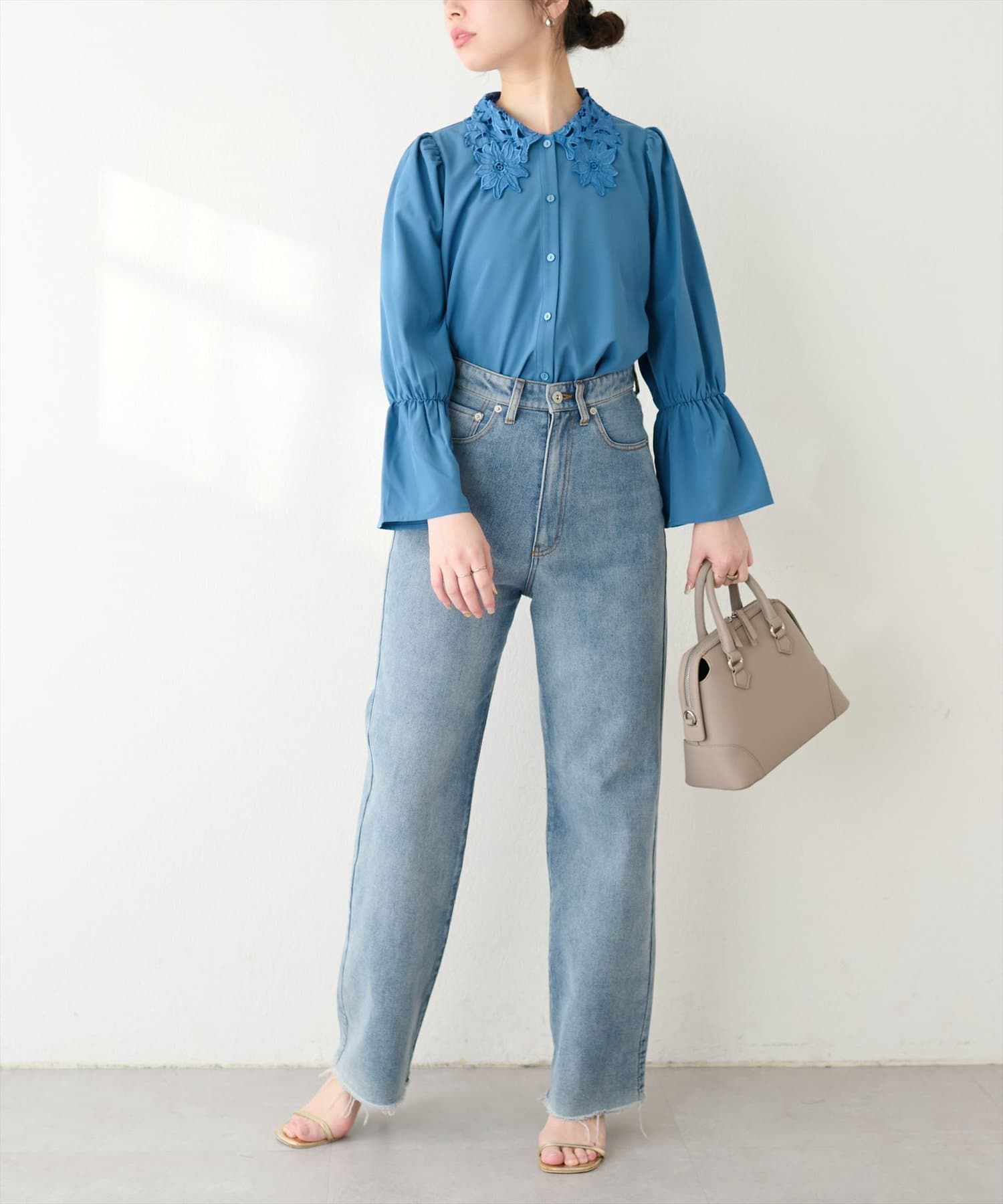 1枚で主役級のブラウスなので、シンプルなボトムスと合わせるだけでコーディネートが完成します。