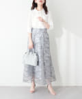お休みの日は、カラーや柄のボトムスを持ってきて華やかなスタイルに。