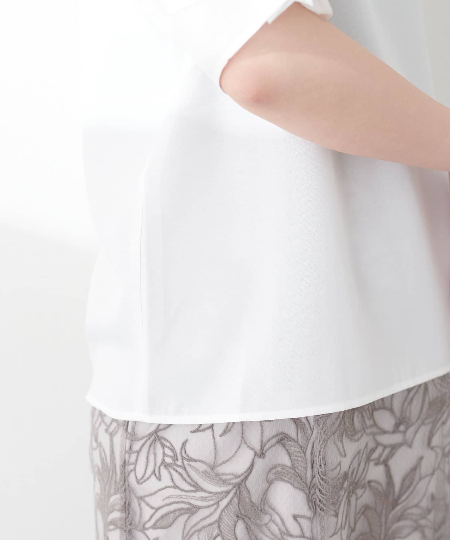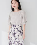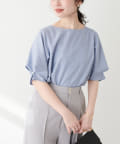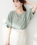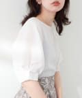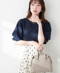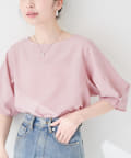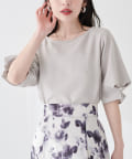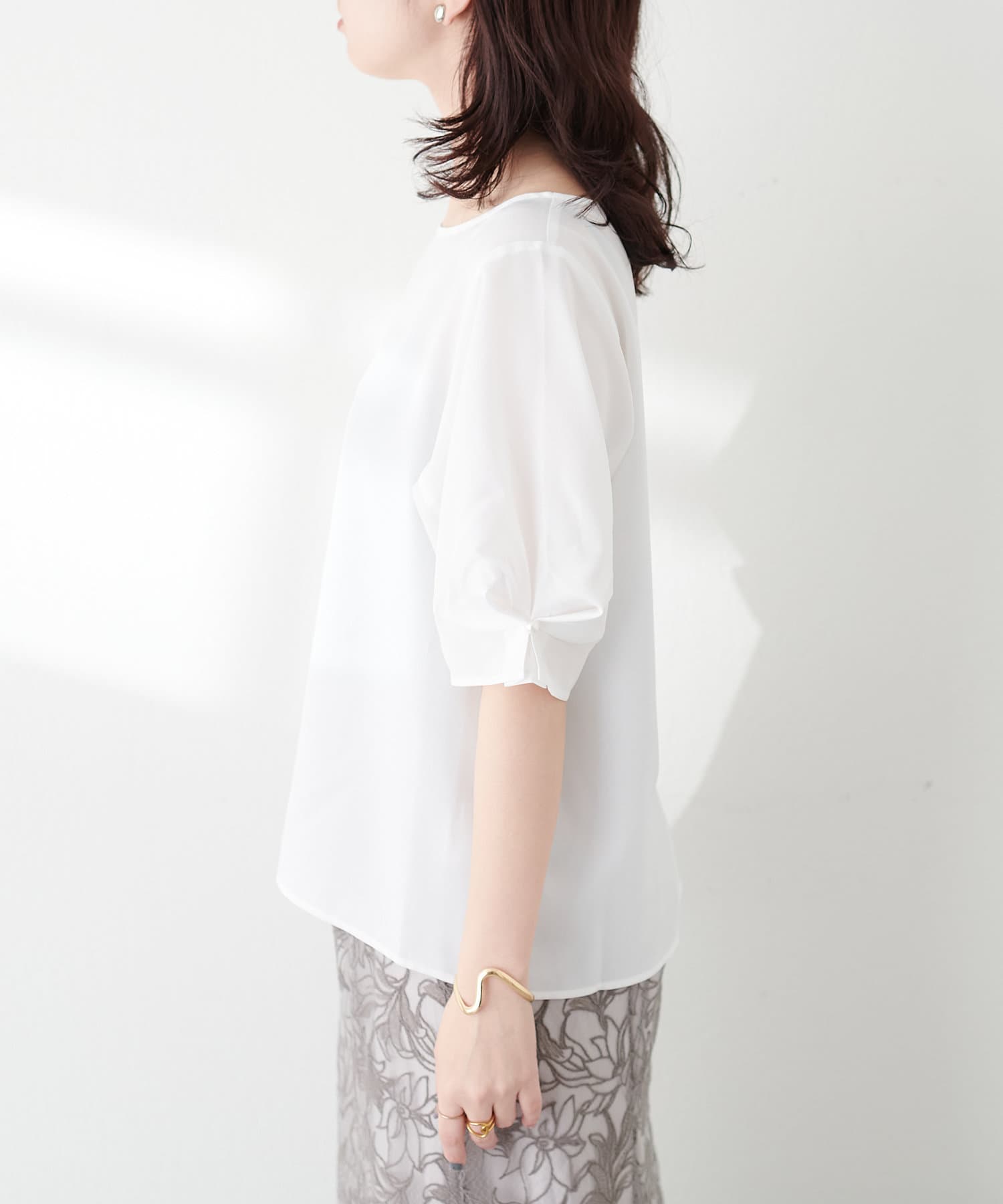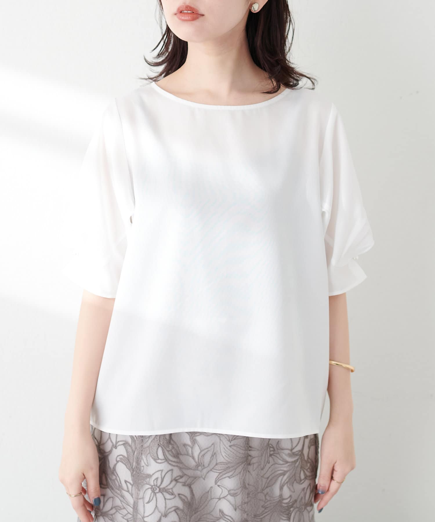 袖口のタックにさり気なくパールを施した上品な半袖ブラウス。