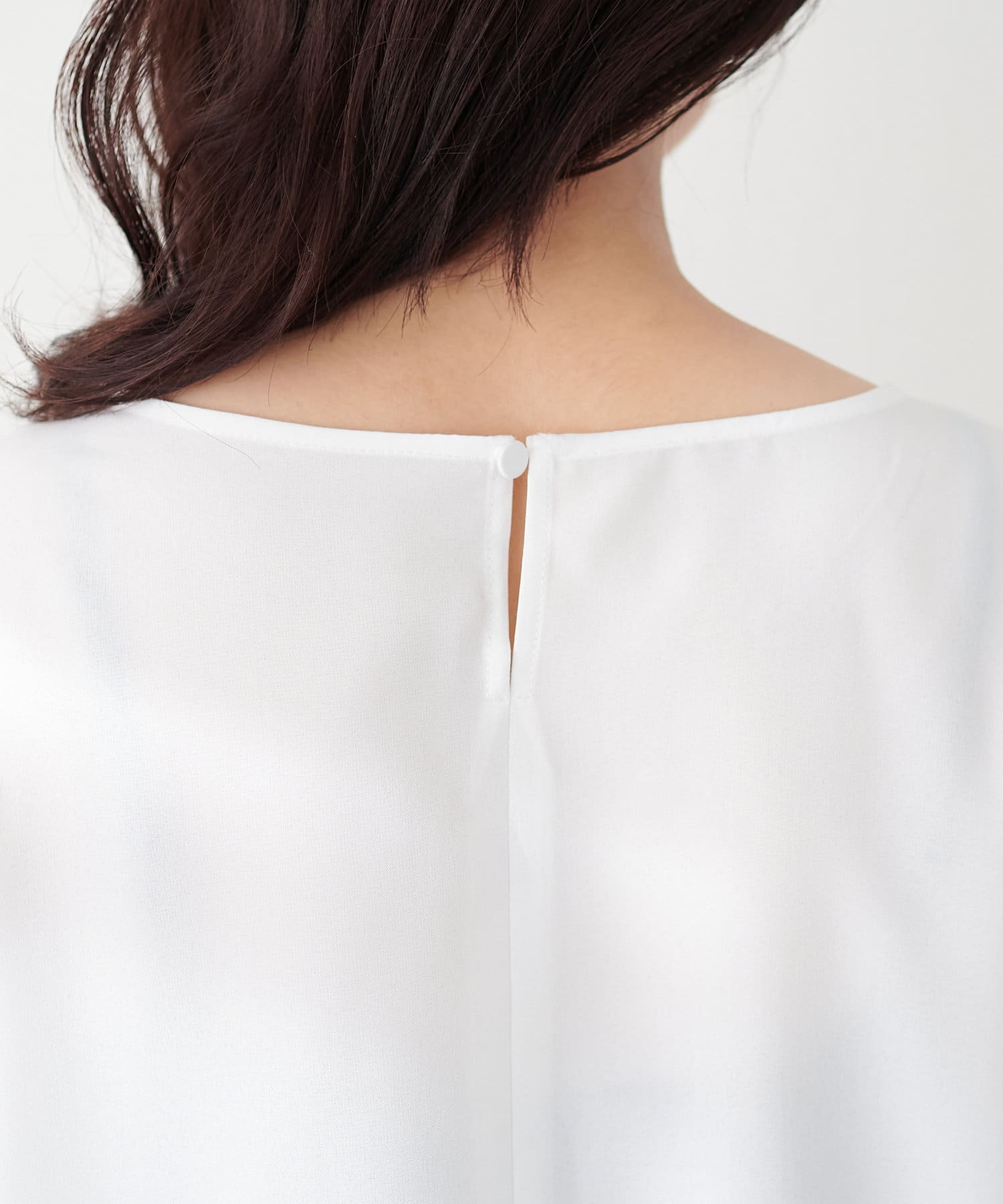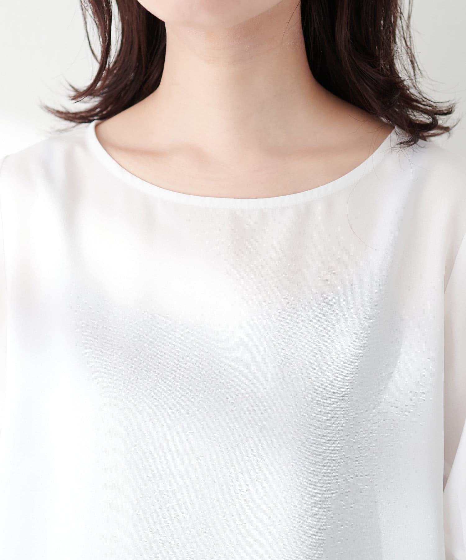 やや広めのネックラインは、お顔周りをすっきりと見せてくれます。