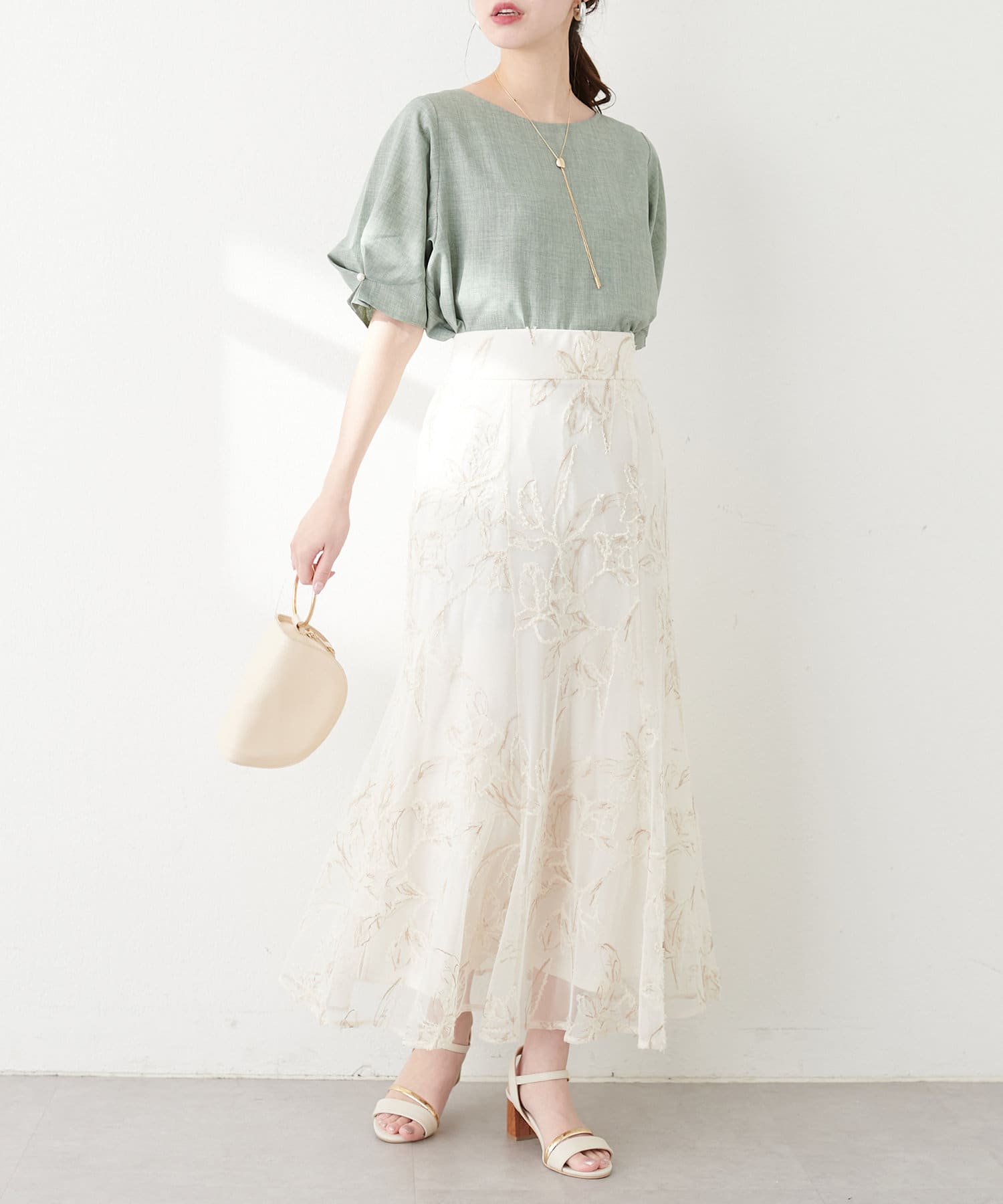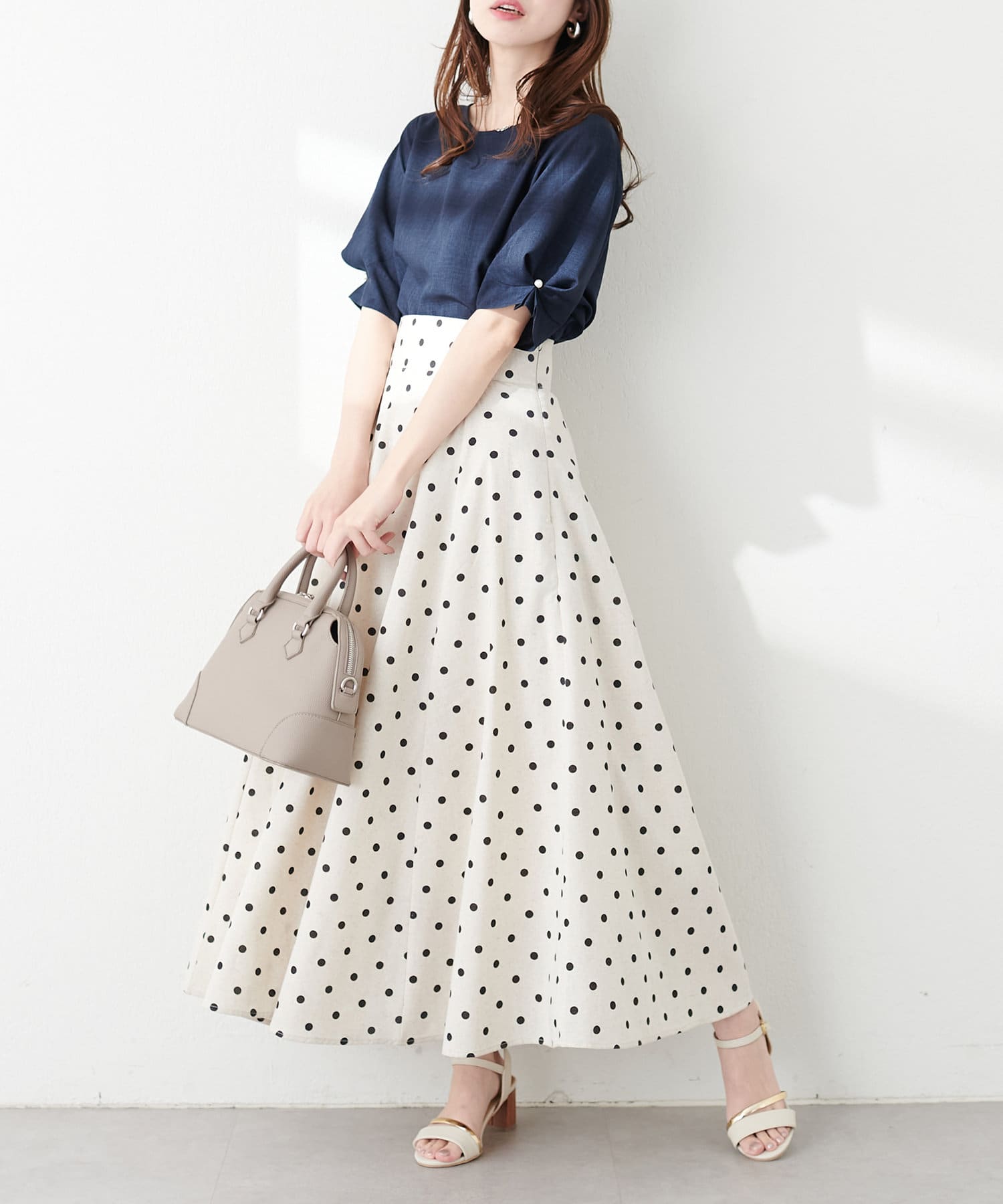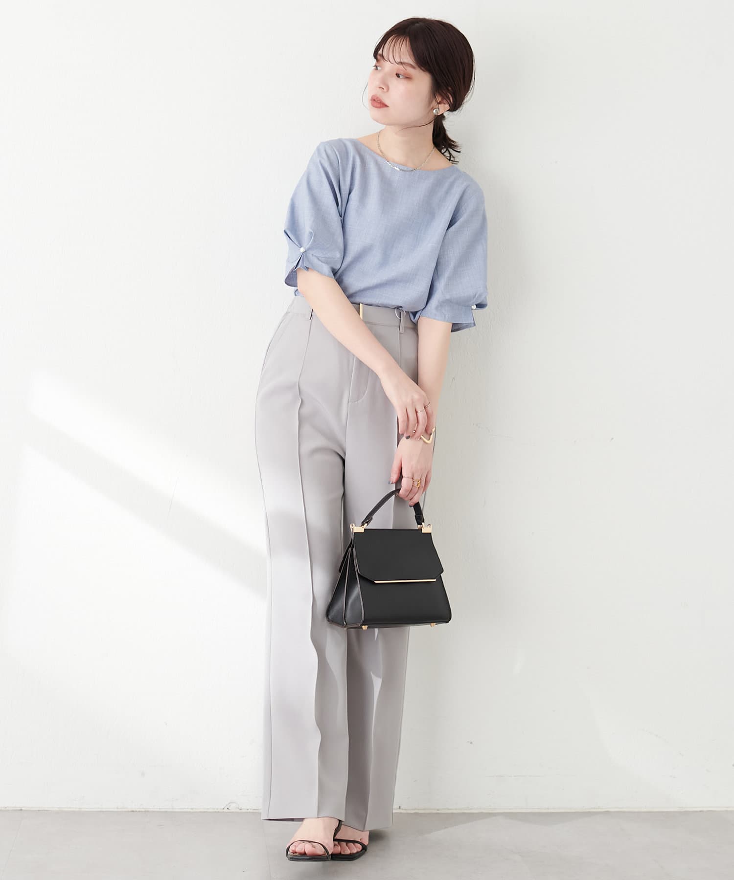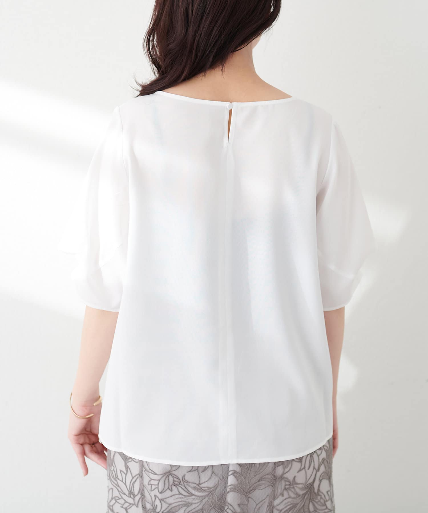 袖のタックとパール使いがフェミニンな1枚