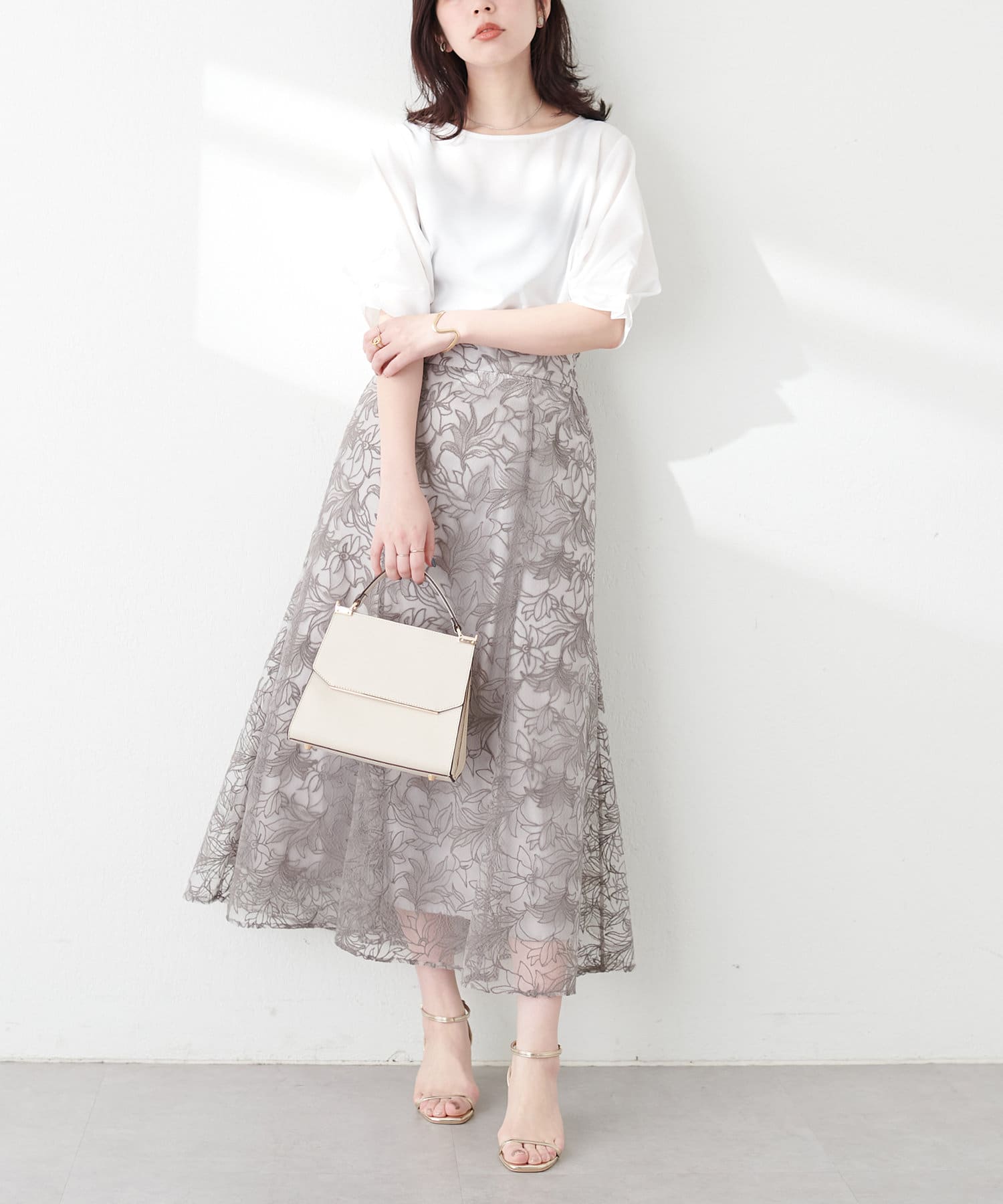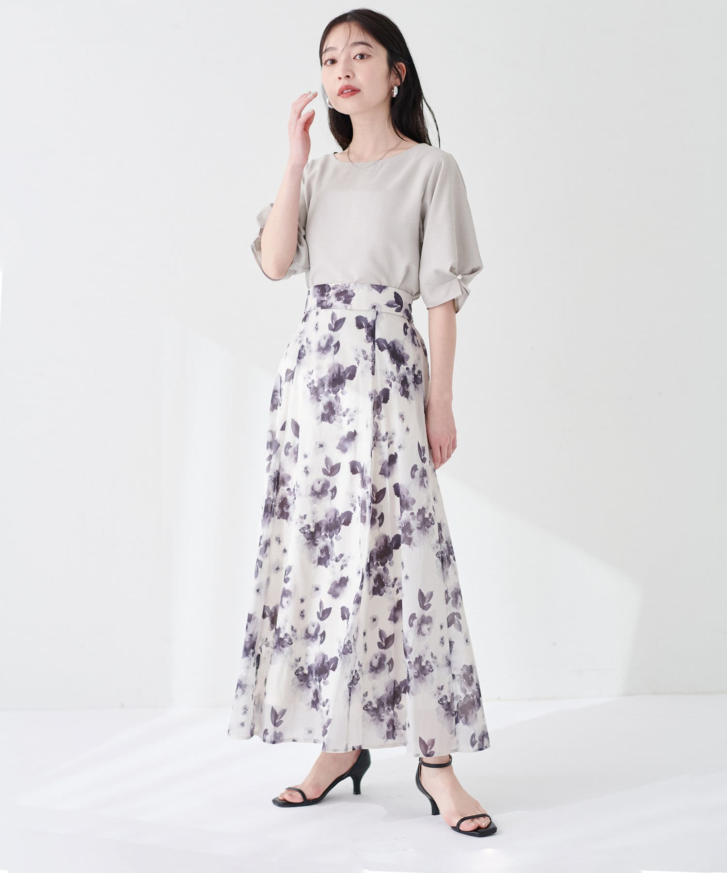 Aラインシルエットのスカートや、ナロースカートにウエストインしてすっきり上品に合わせて頂くのはもちろん、