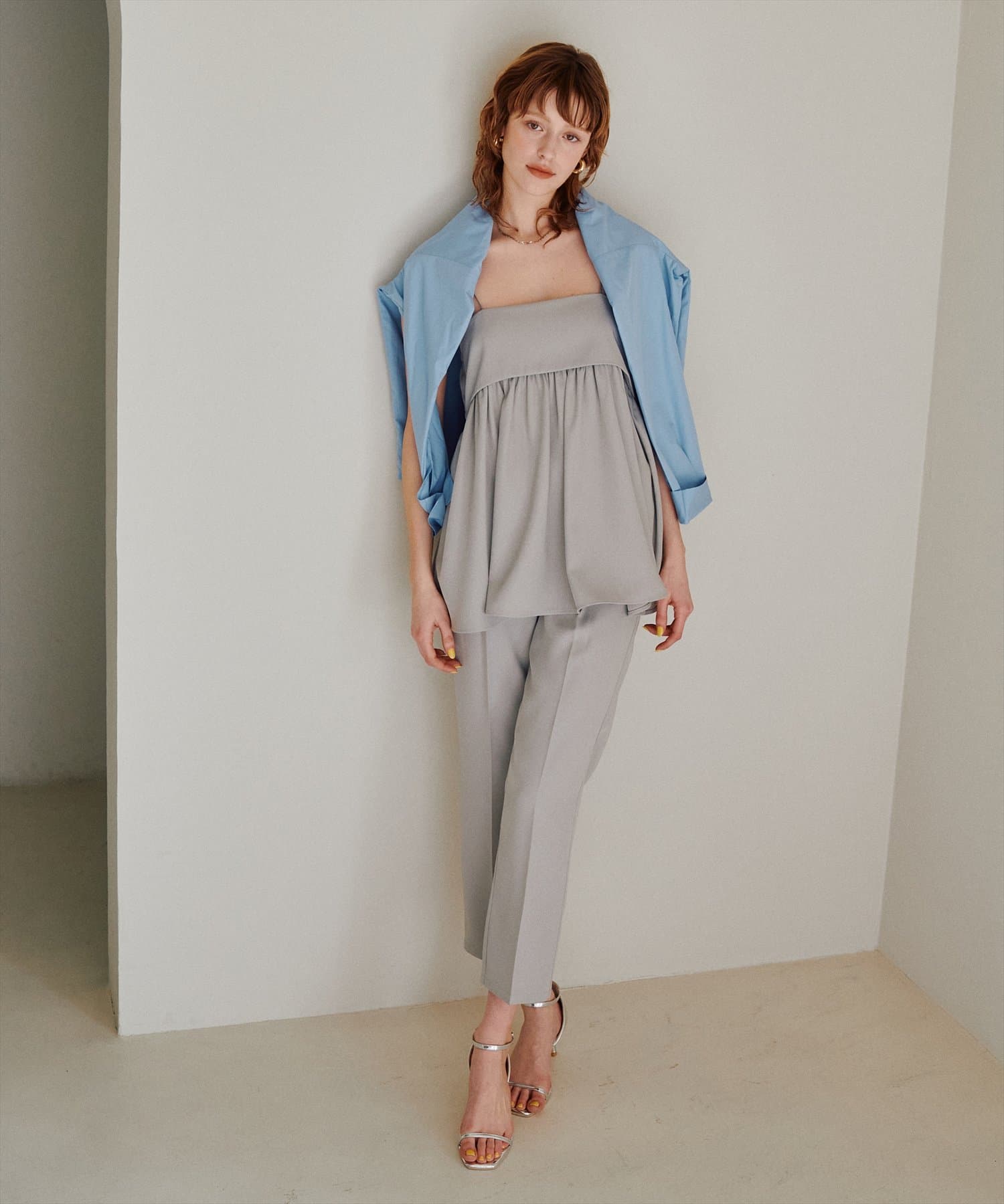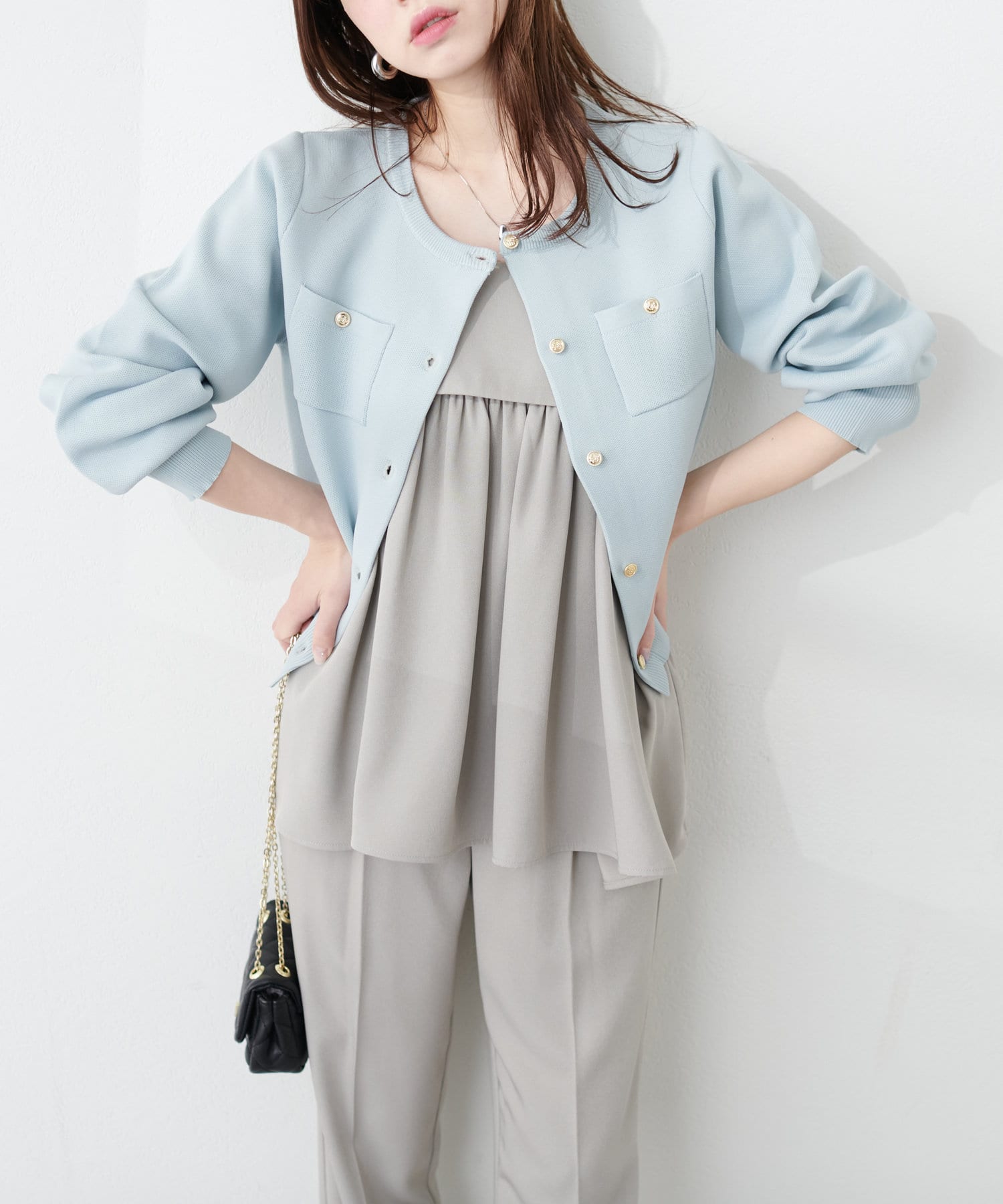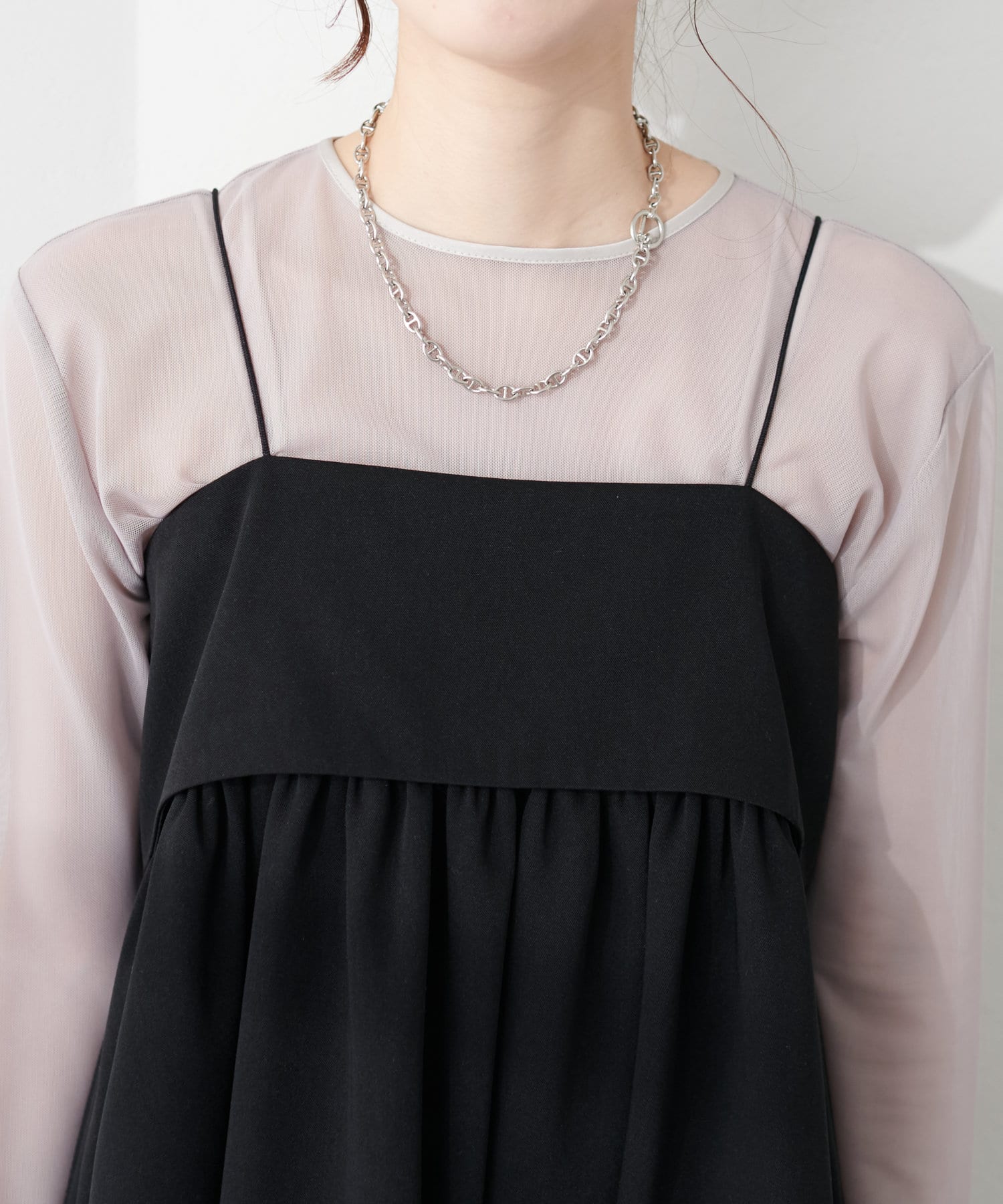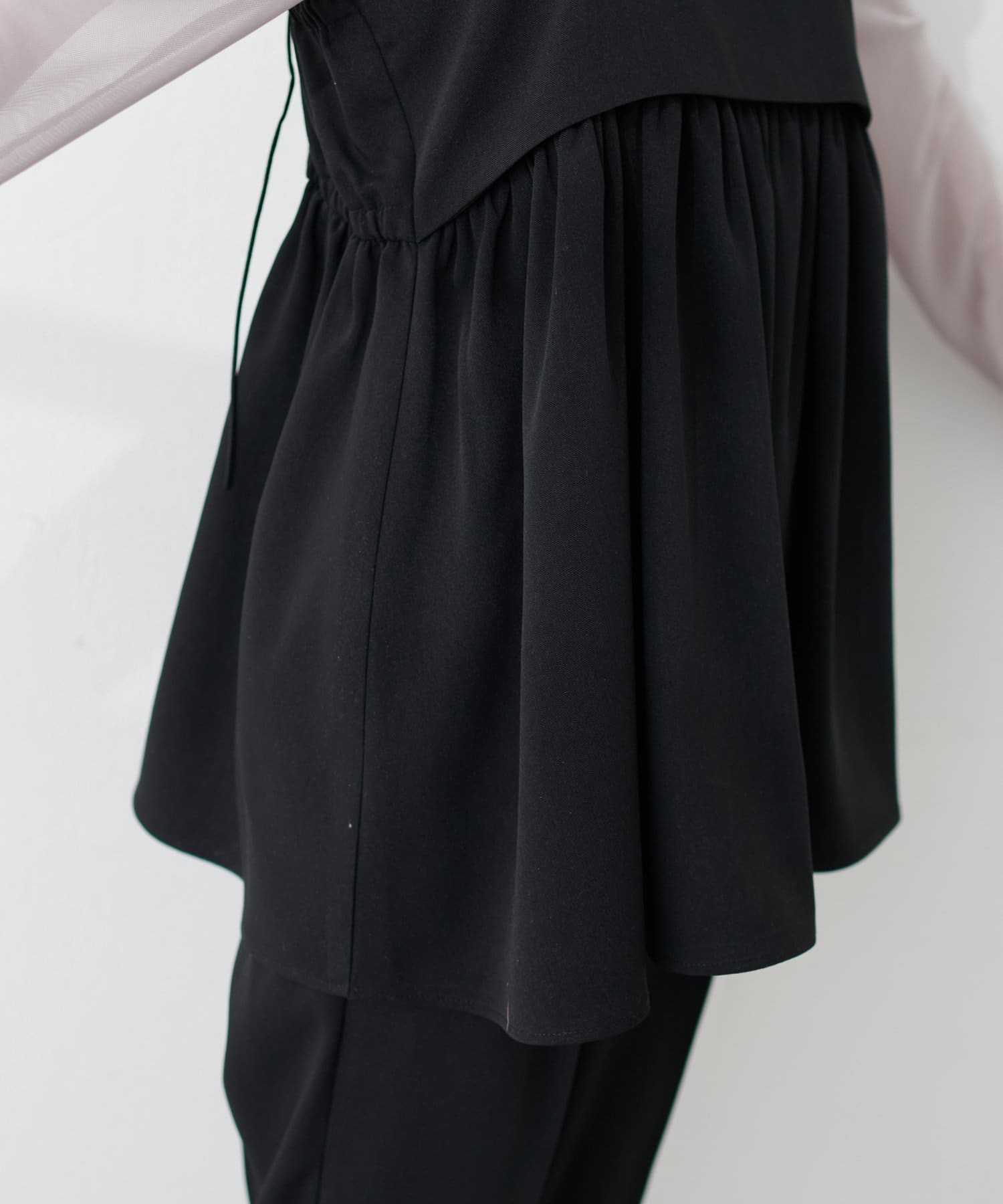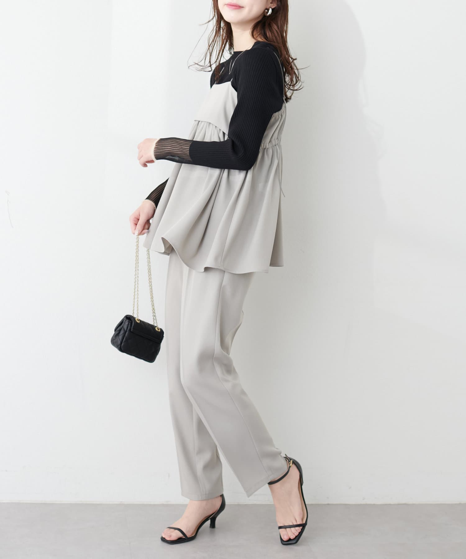 Tシャツやカットソーをインしてビスチェとしてお召し頂くのはもちろん、寒い時季にはニットカーディガンを、暖かくなってきたらトレンドのシアーシャツを羽織っても品良くきまります。