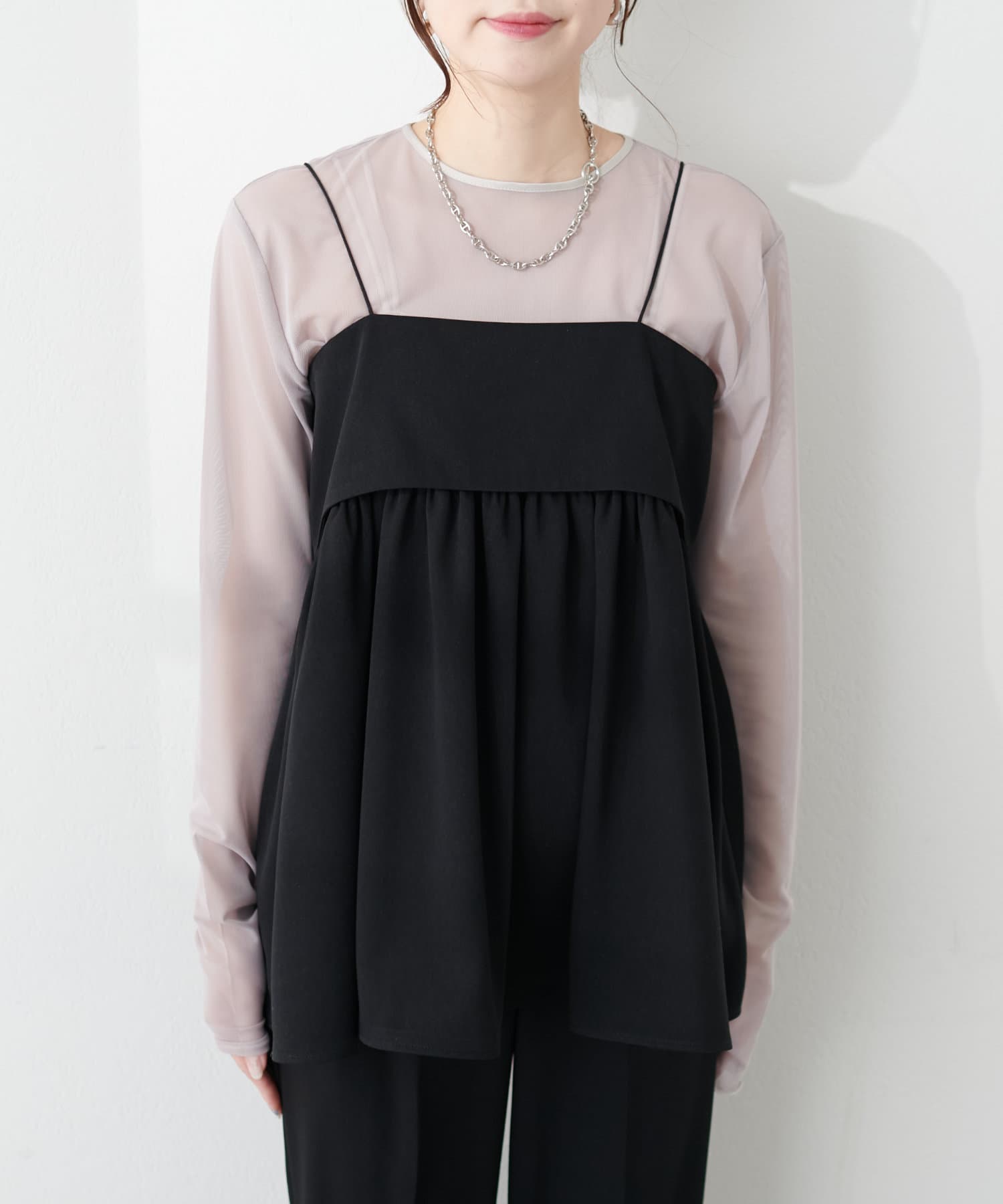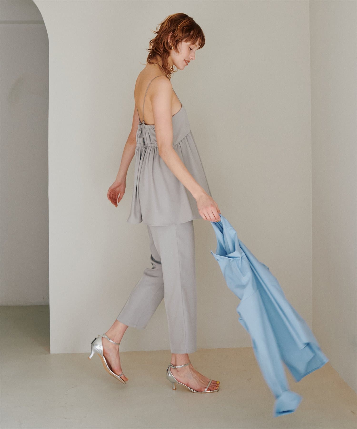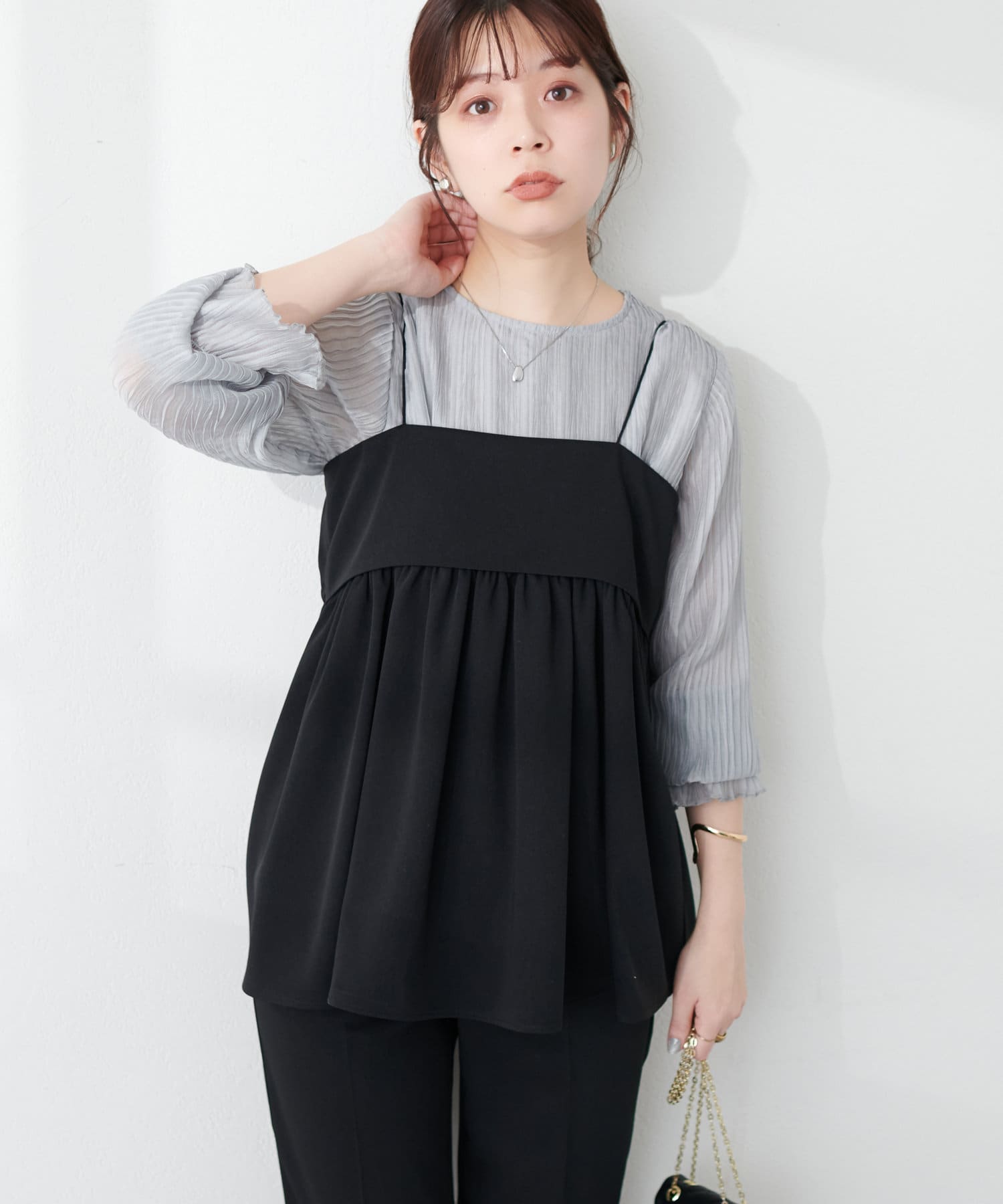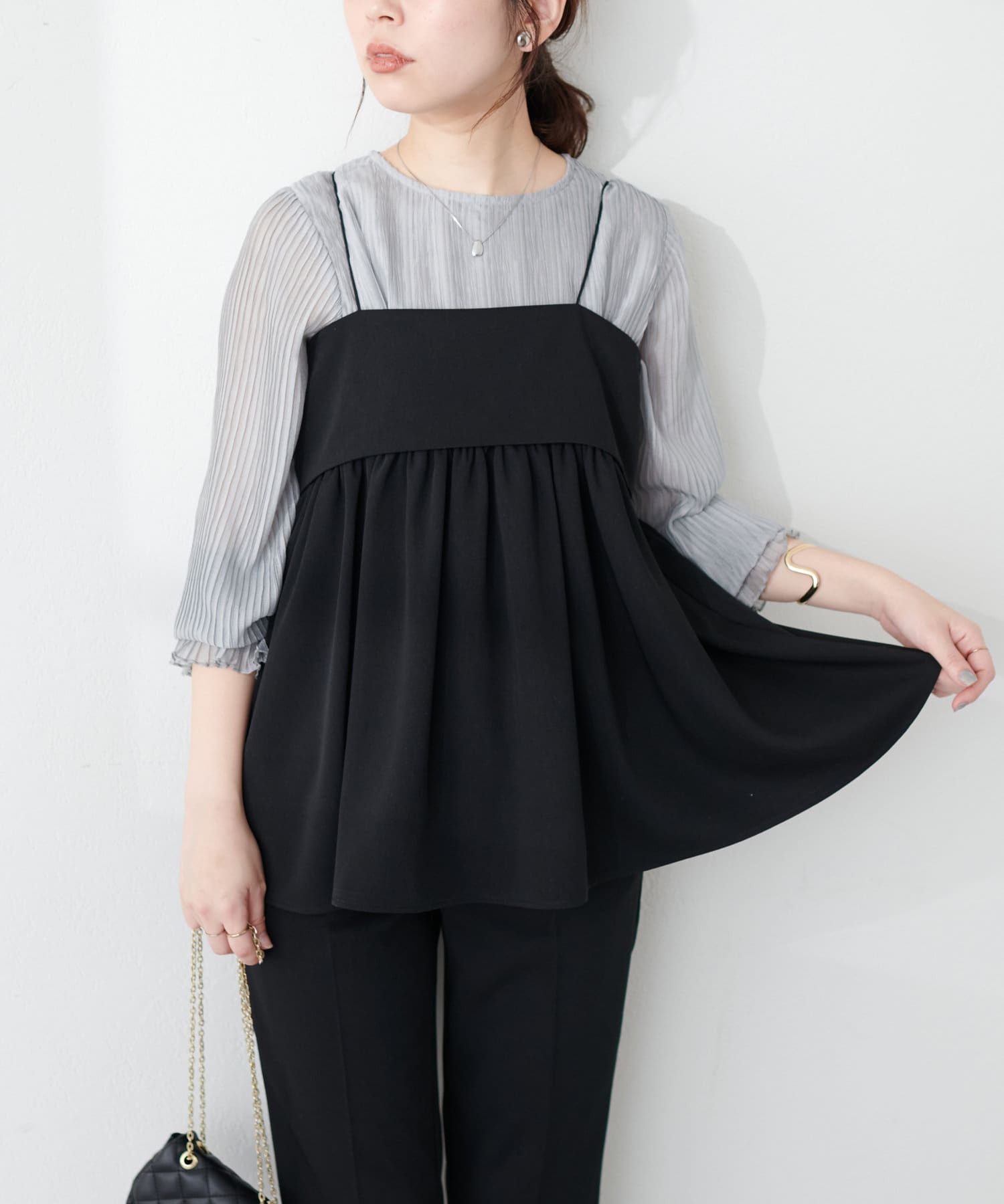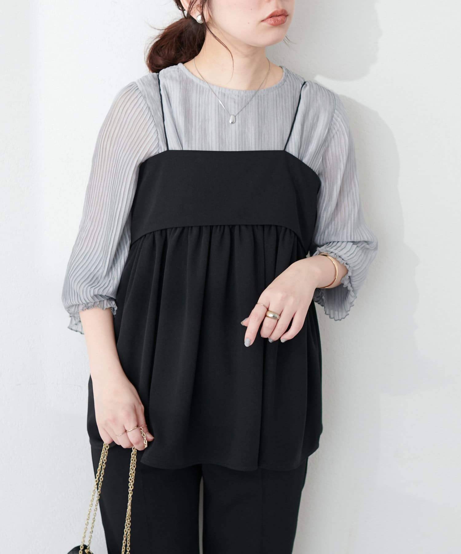 たっぷりのギャザーが生み出すふんわりシルエットが大人可愛いキャミトップス。