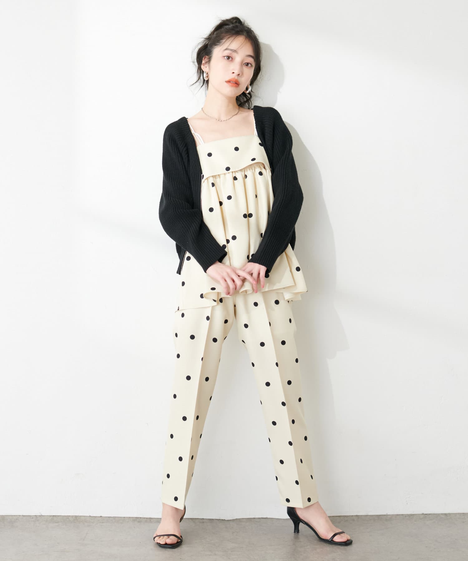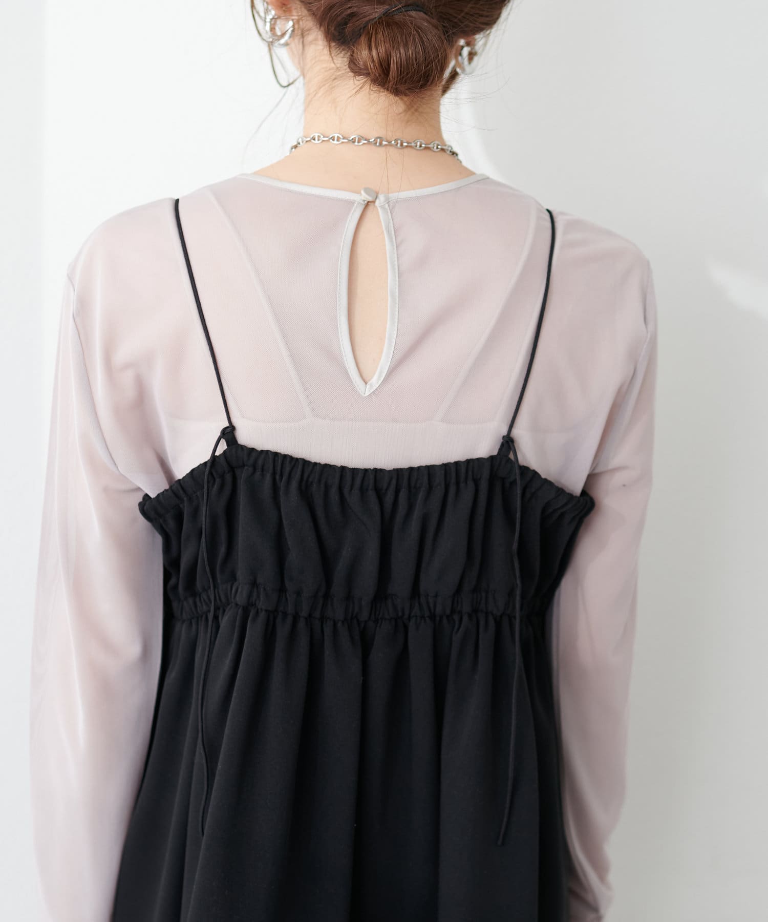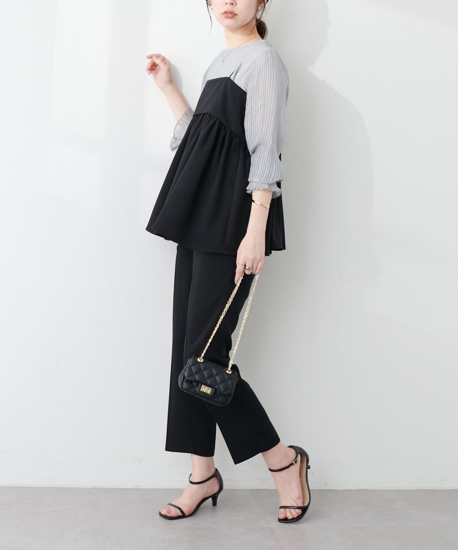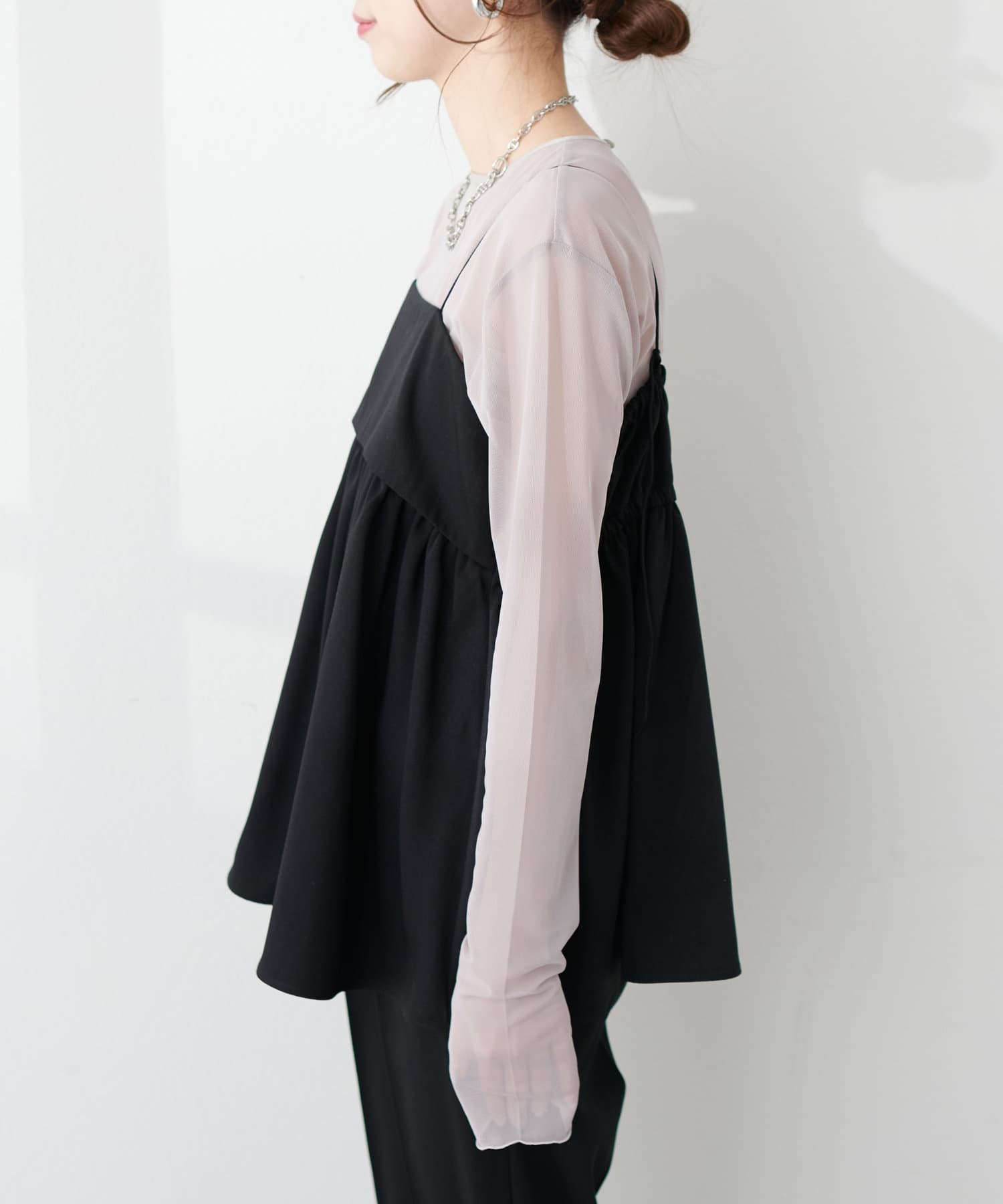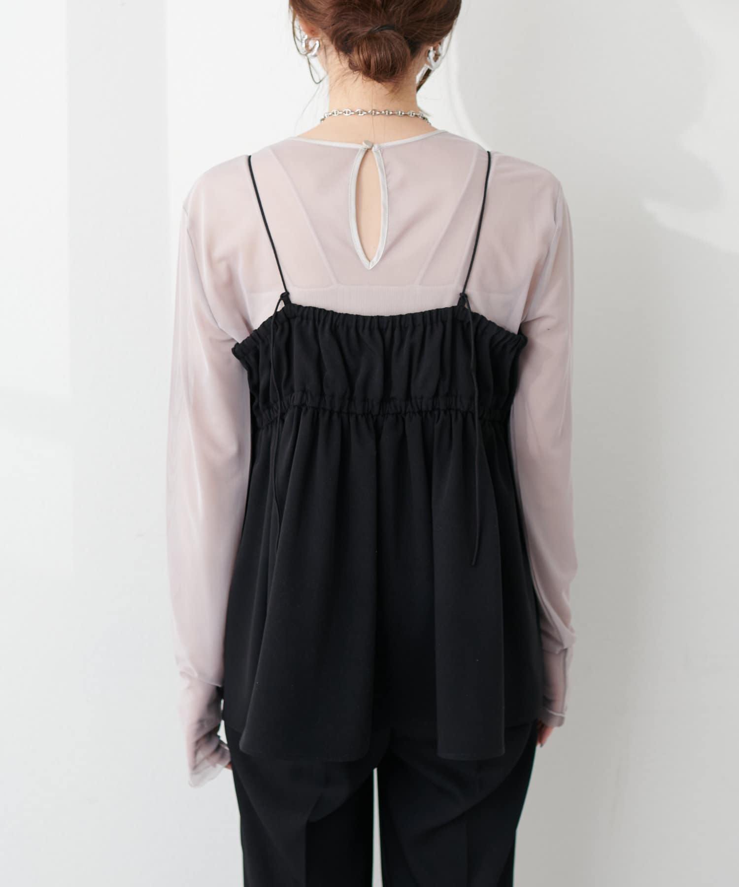 たっぷりのギャザーが生み出すふんわりシルエットが大人可愛いキャミトップス。