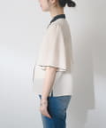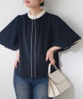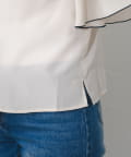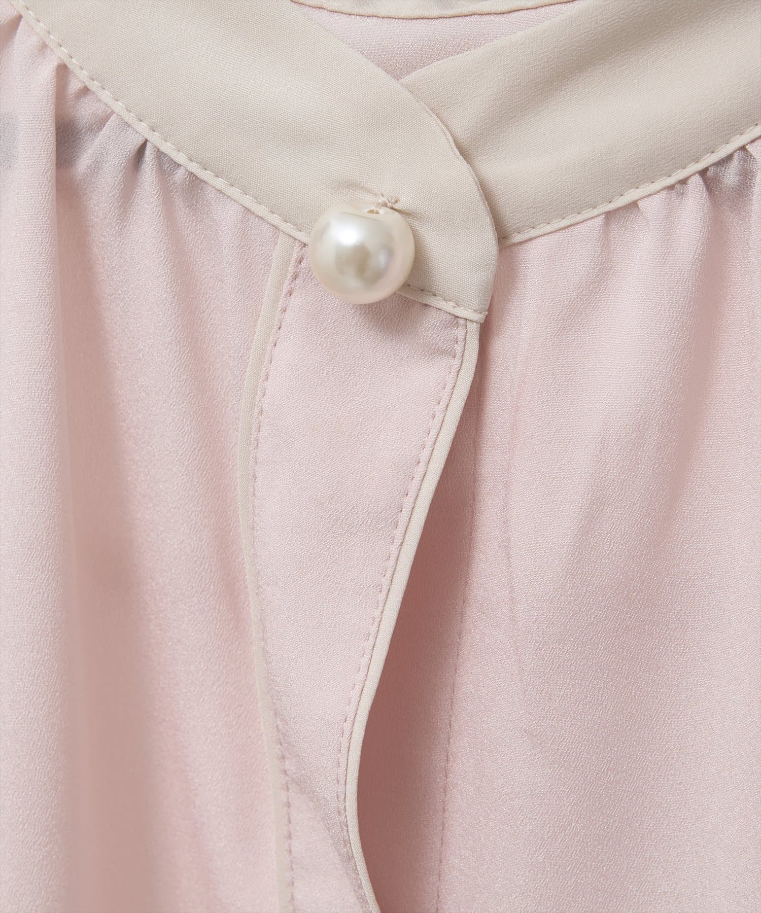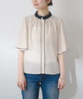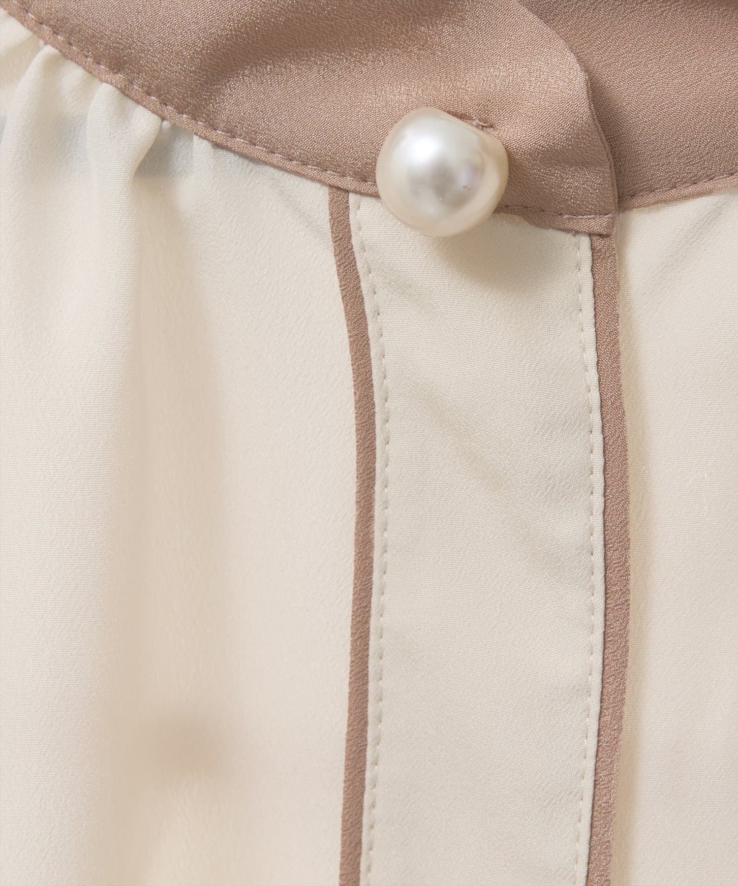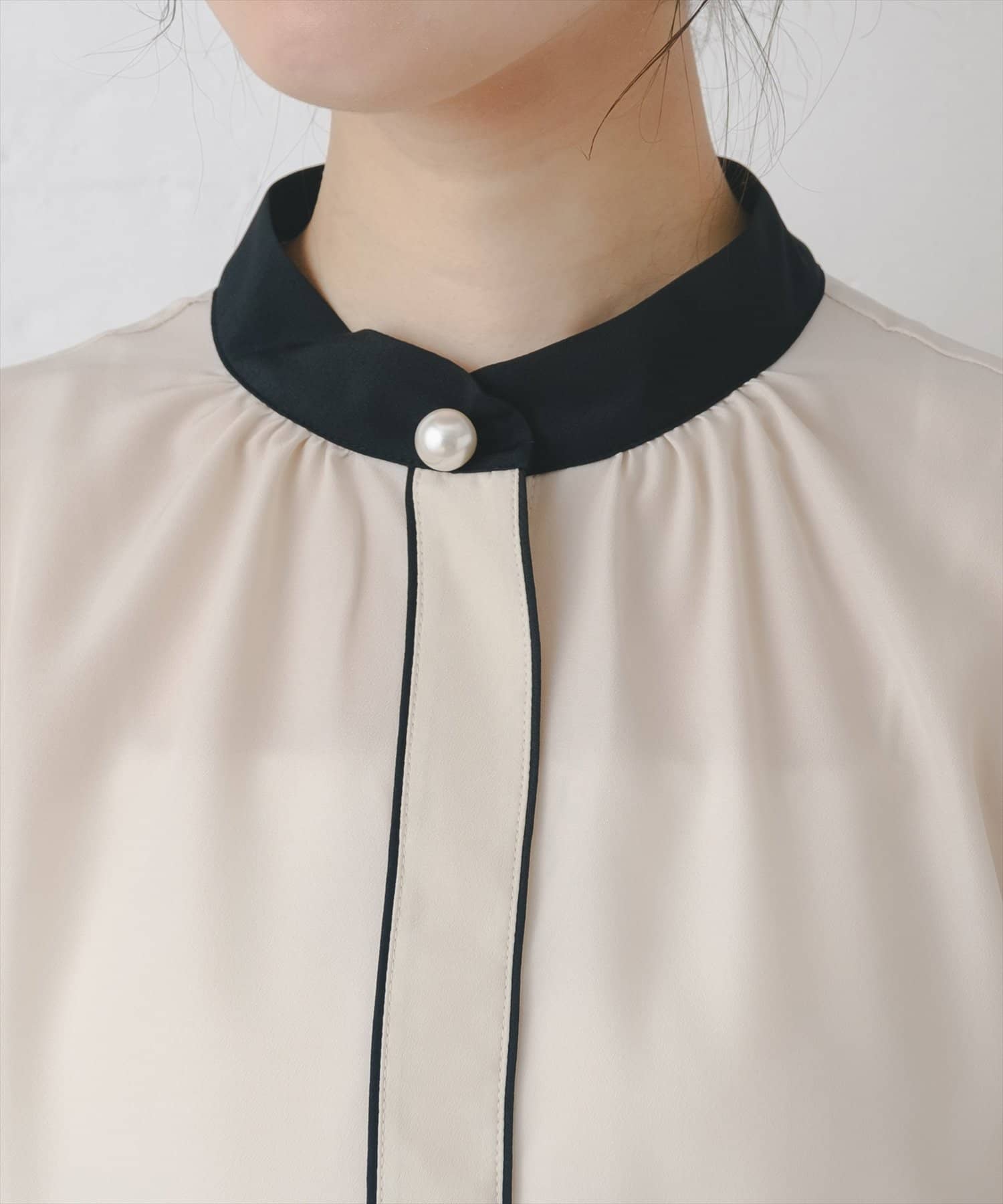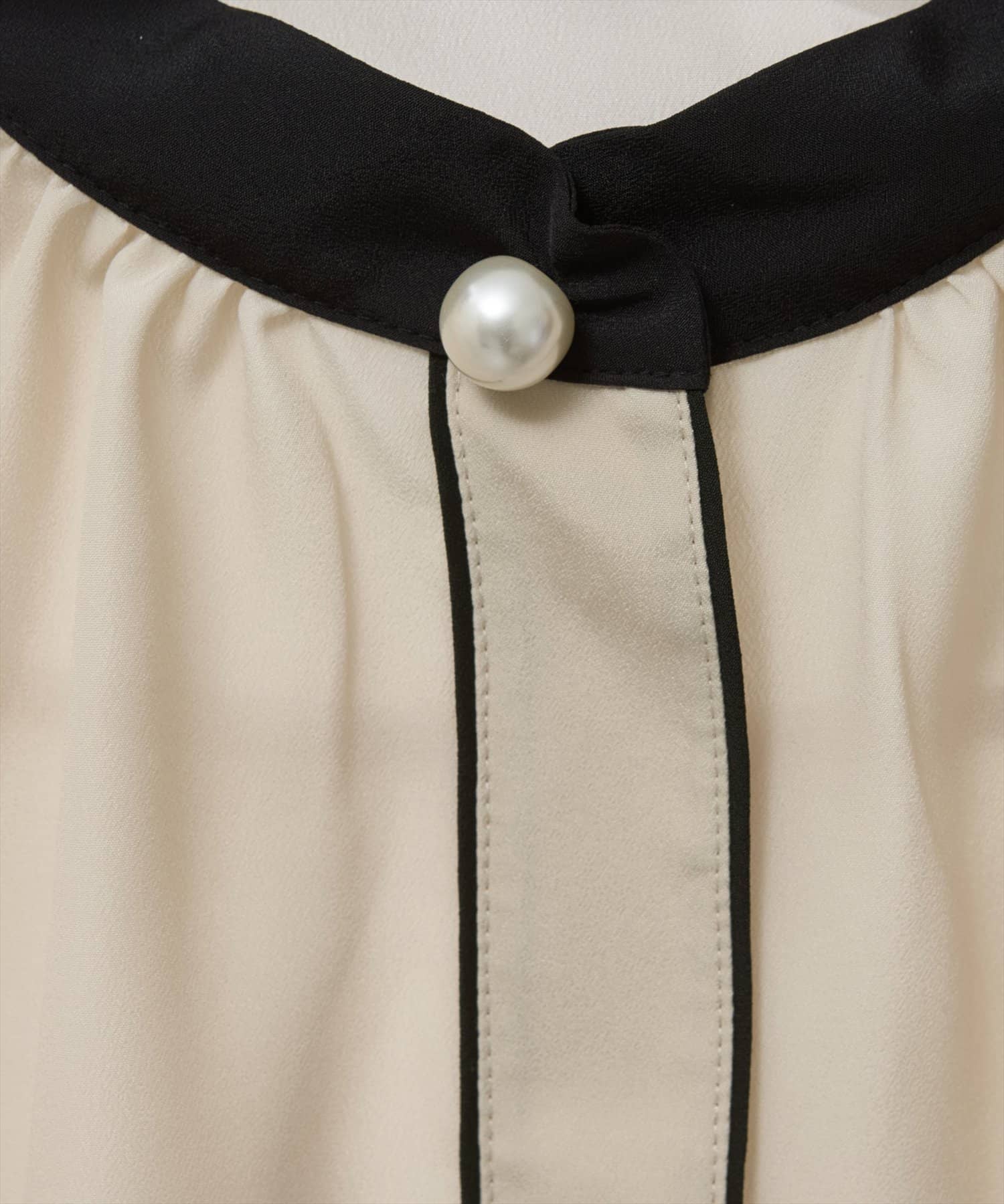 0322040060 パール釦ポイントバイカラーフレア5分袖ブラウス