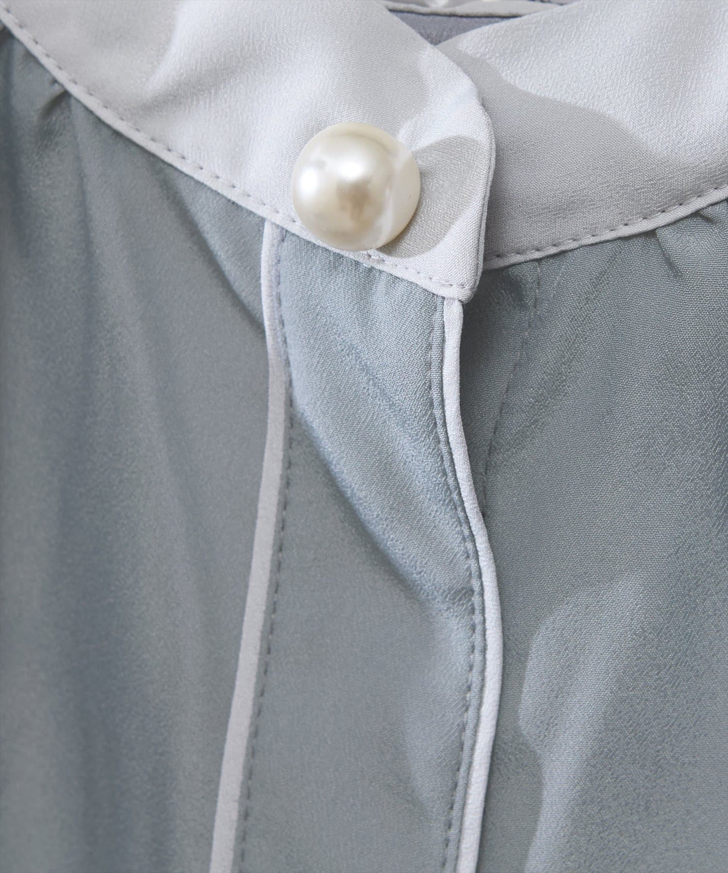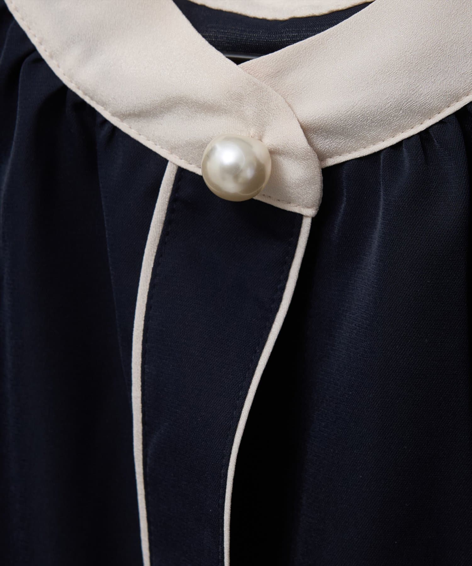 シンプルなバイカラーデザインに、ネックのパールボタンを