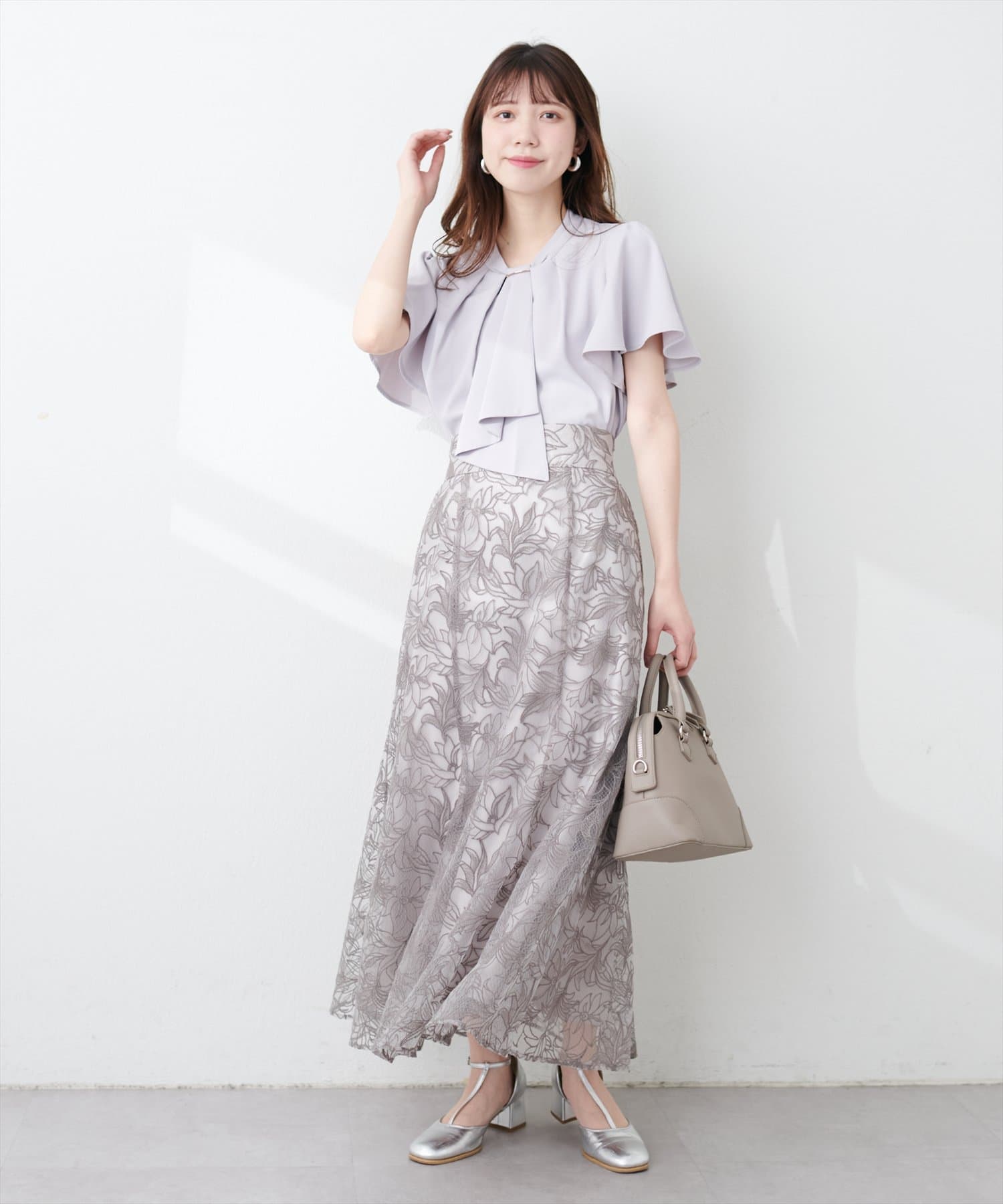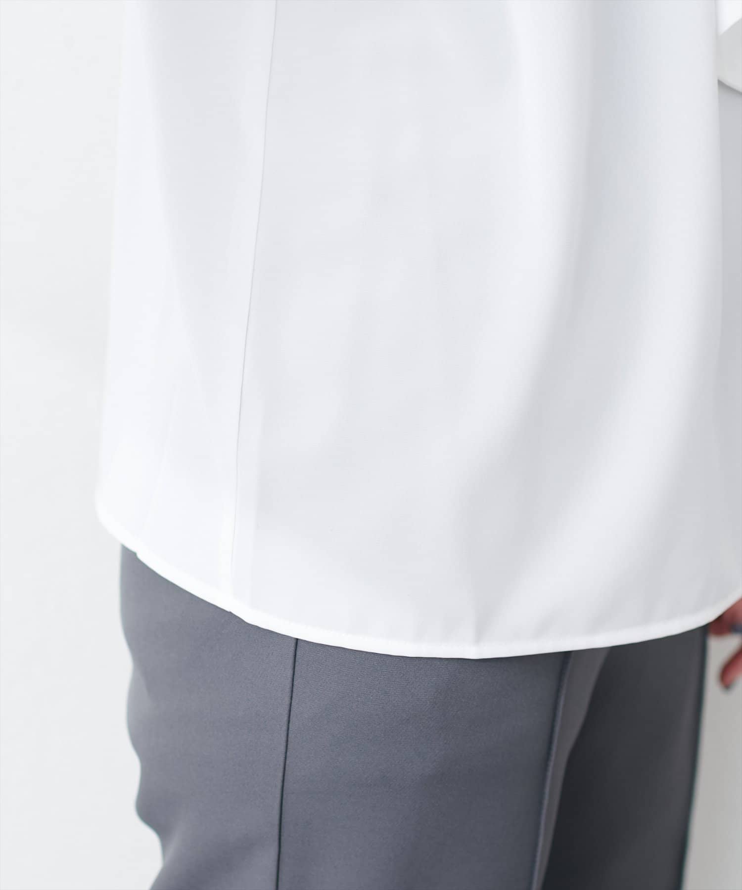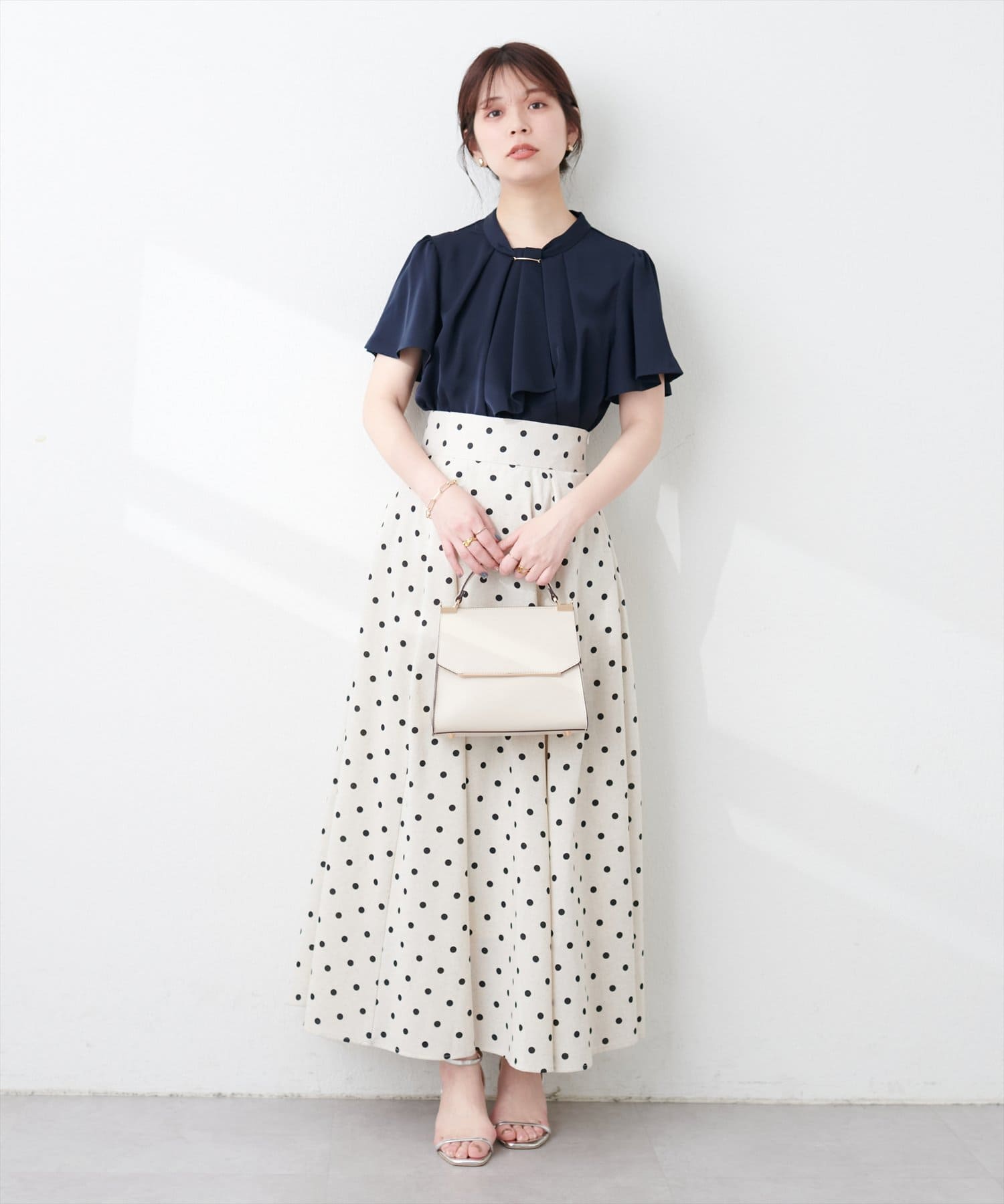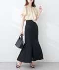 マーメイドスカートやトレンドのIラインのスカートにウエストインして頂くと、シンプルながら上品な印象のコーディネートに。