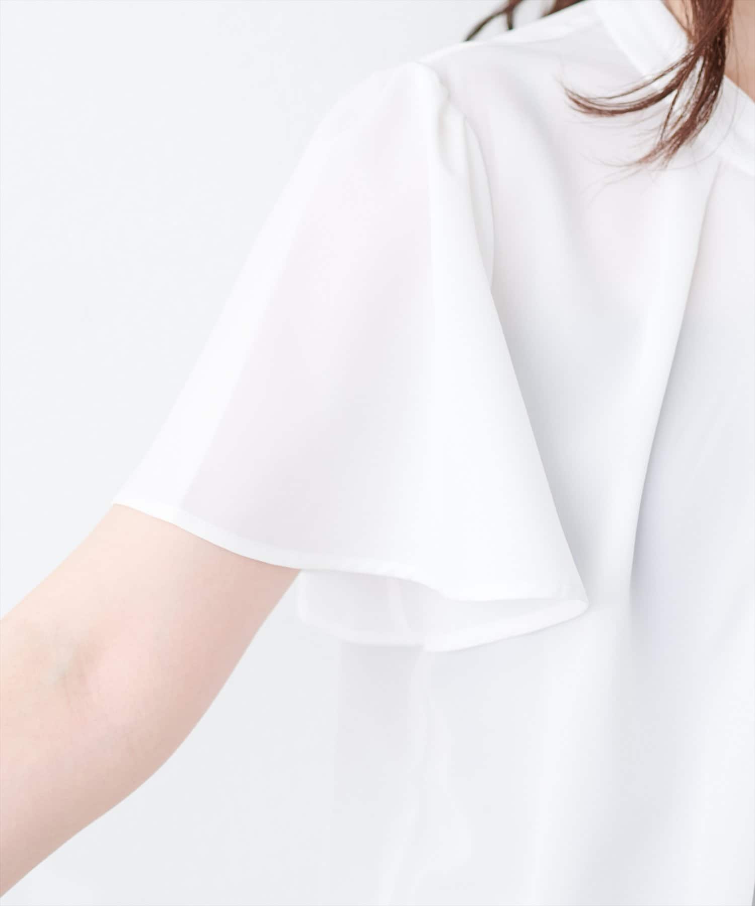 袖口がややフレアになっており、二の腕をさりげなくカバーしてくれるのが嬉しいポイント。
