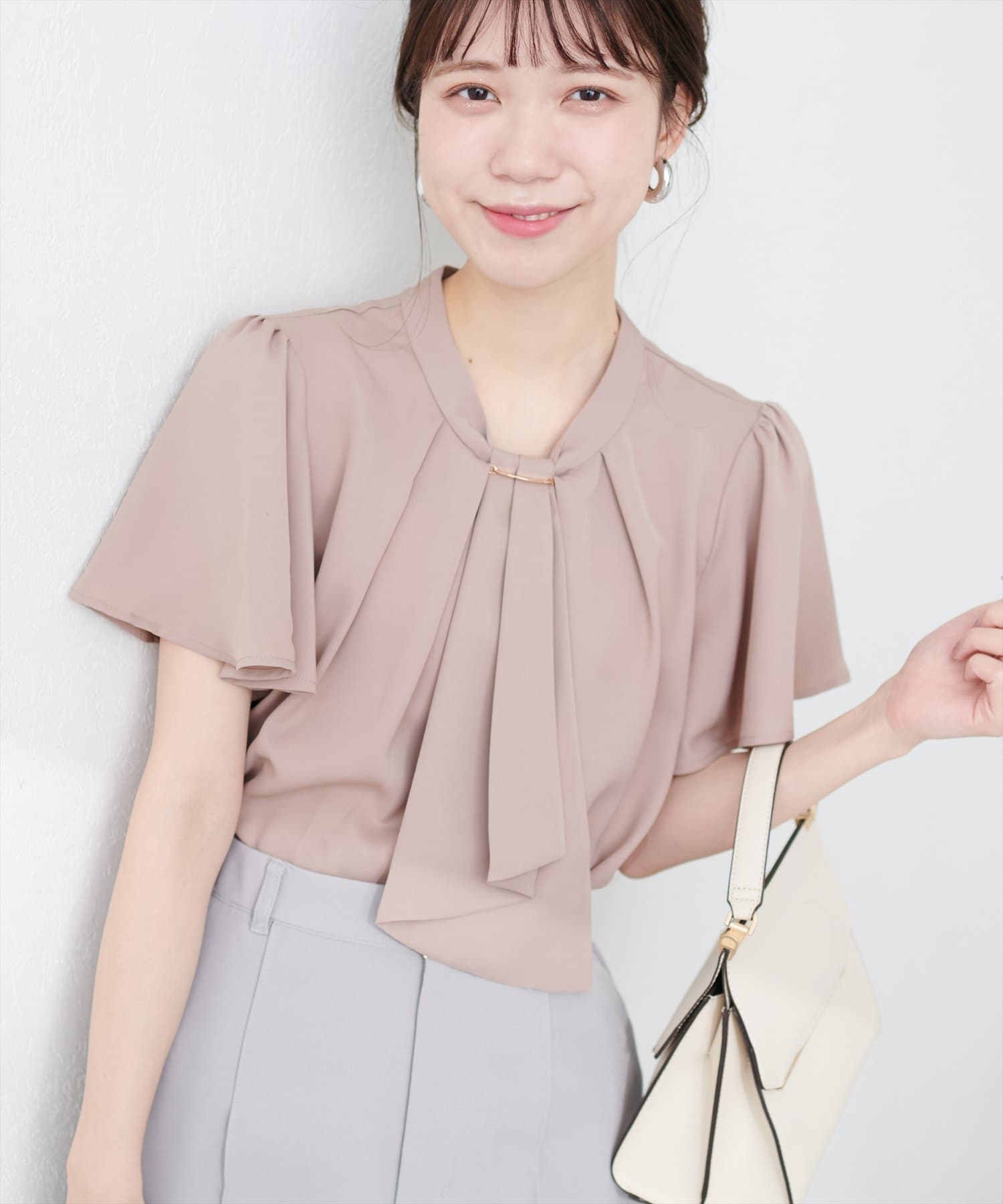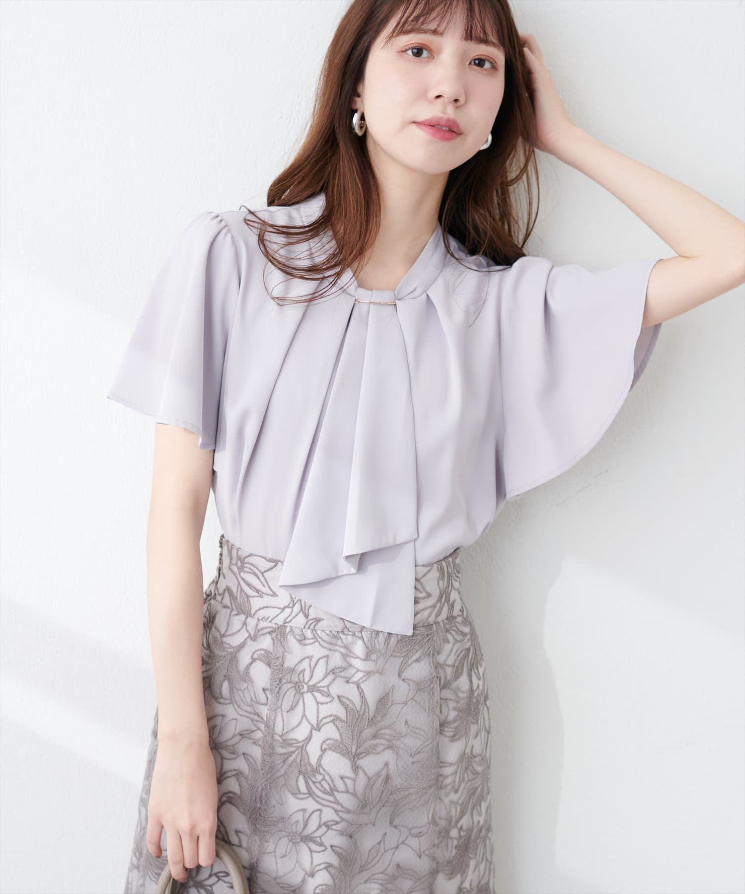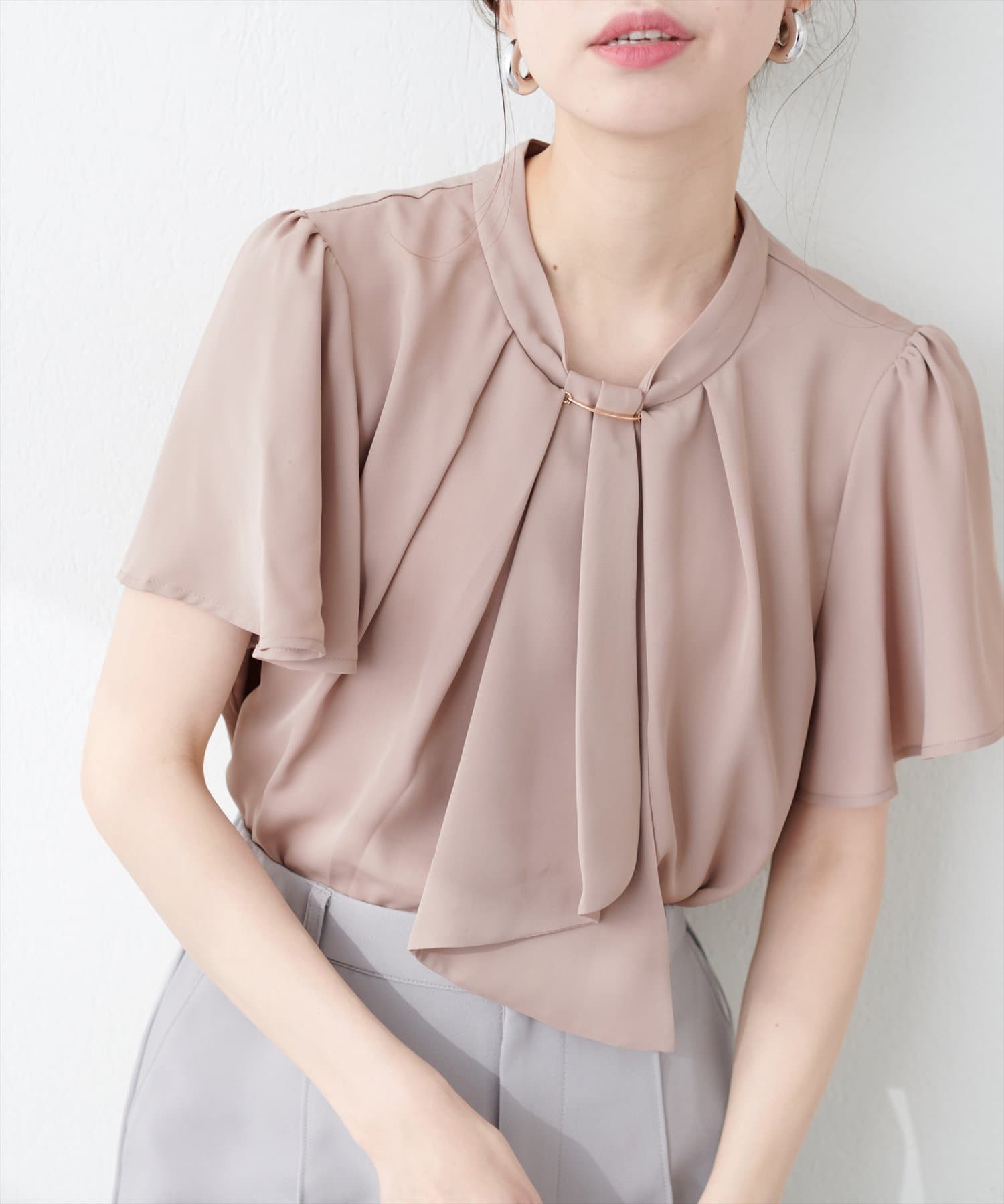 【WEB限定】ゴールドバー付ボウタイブラウス