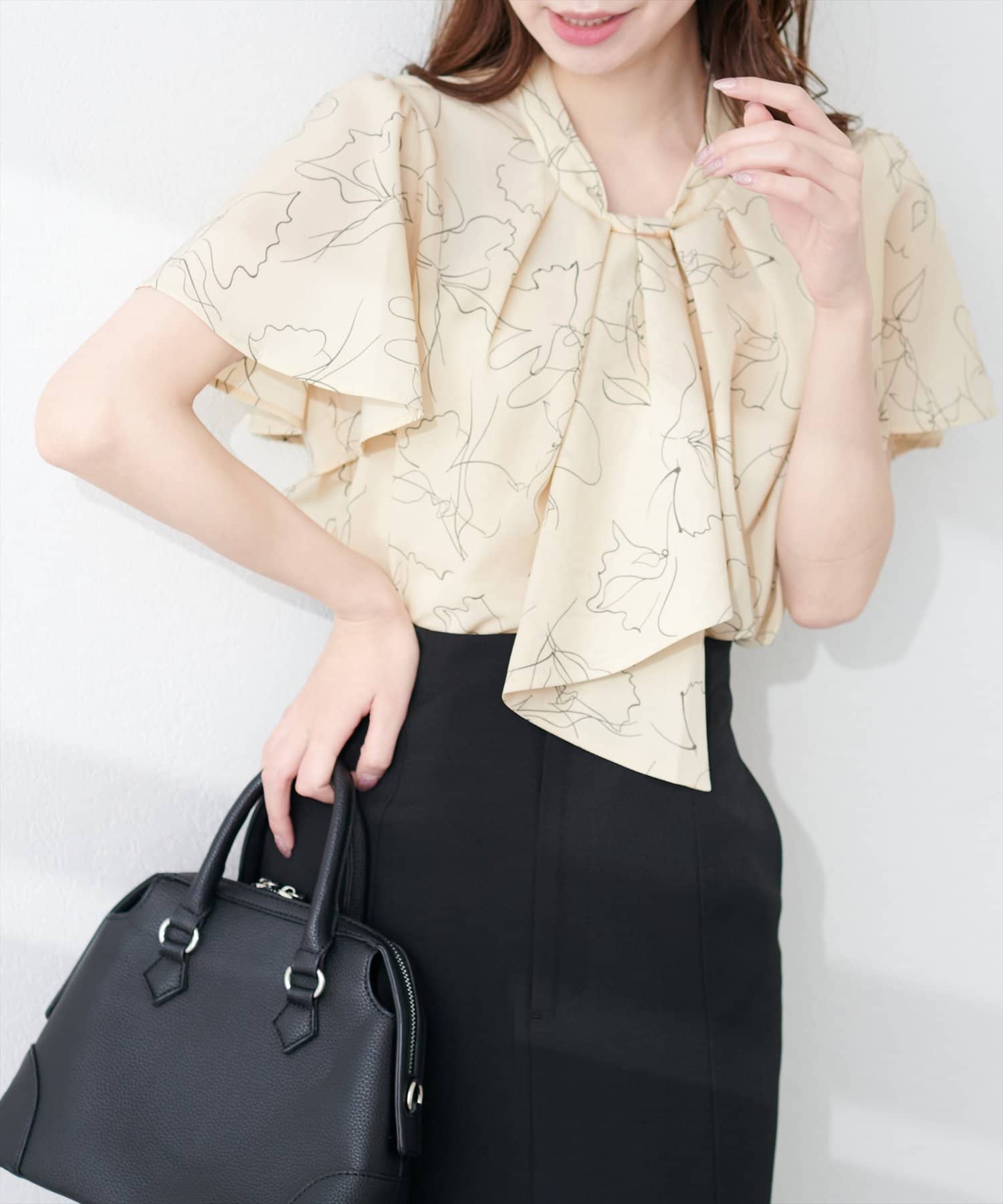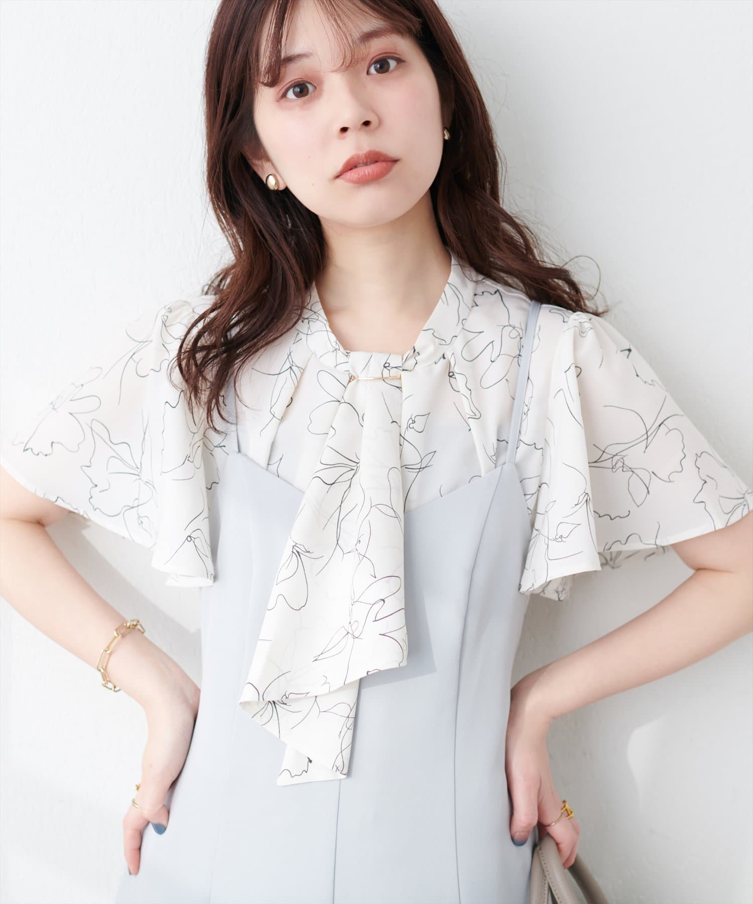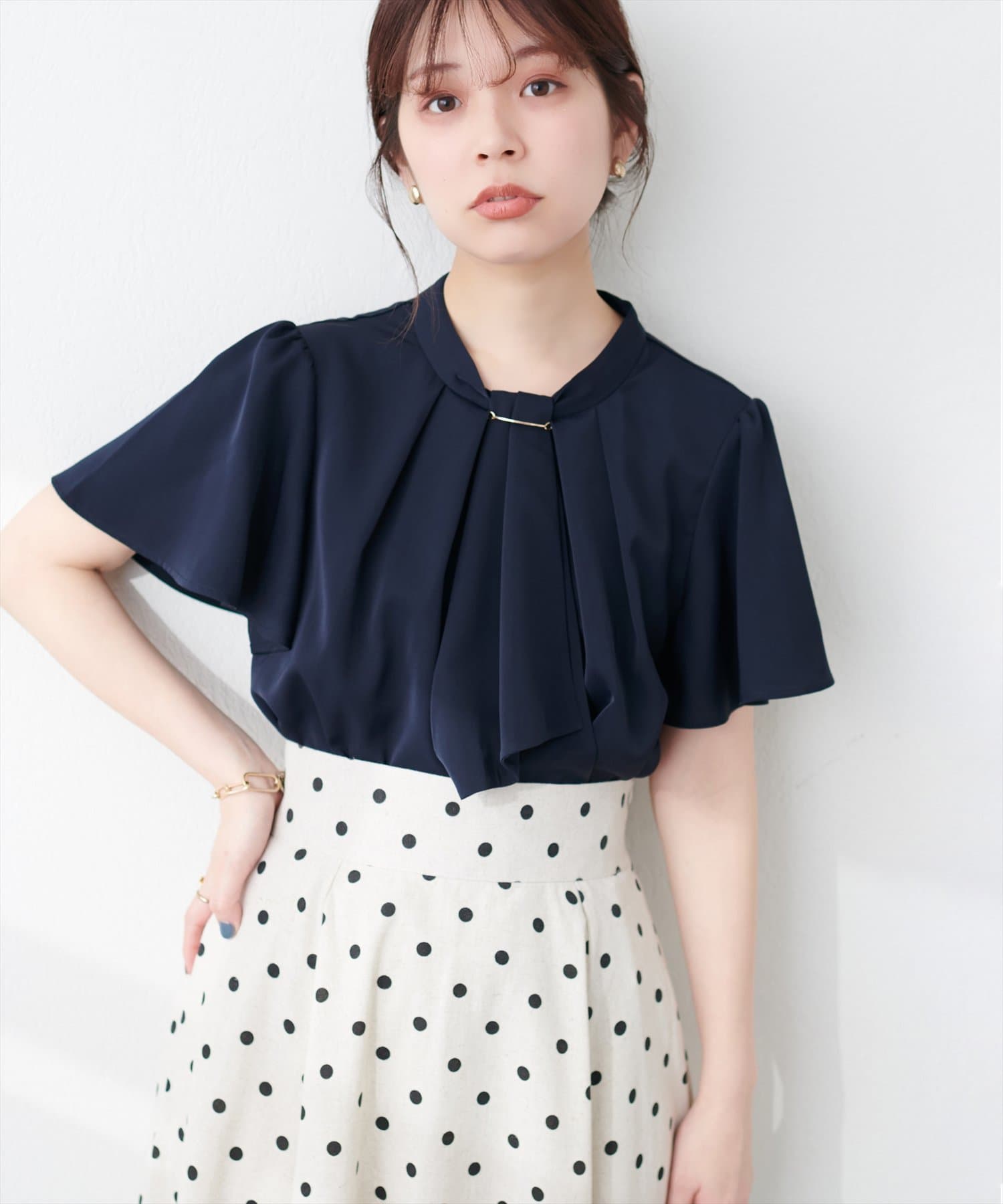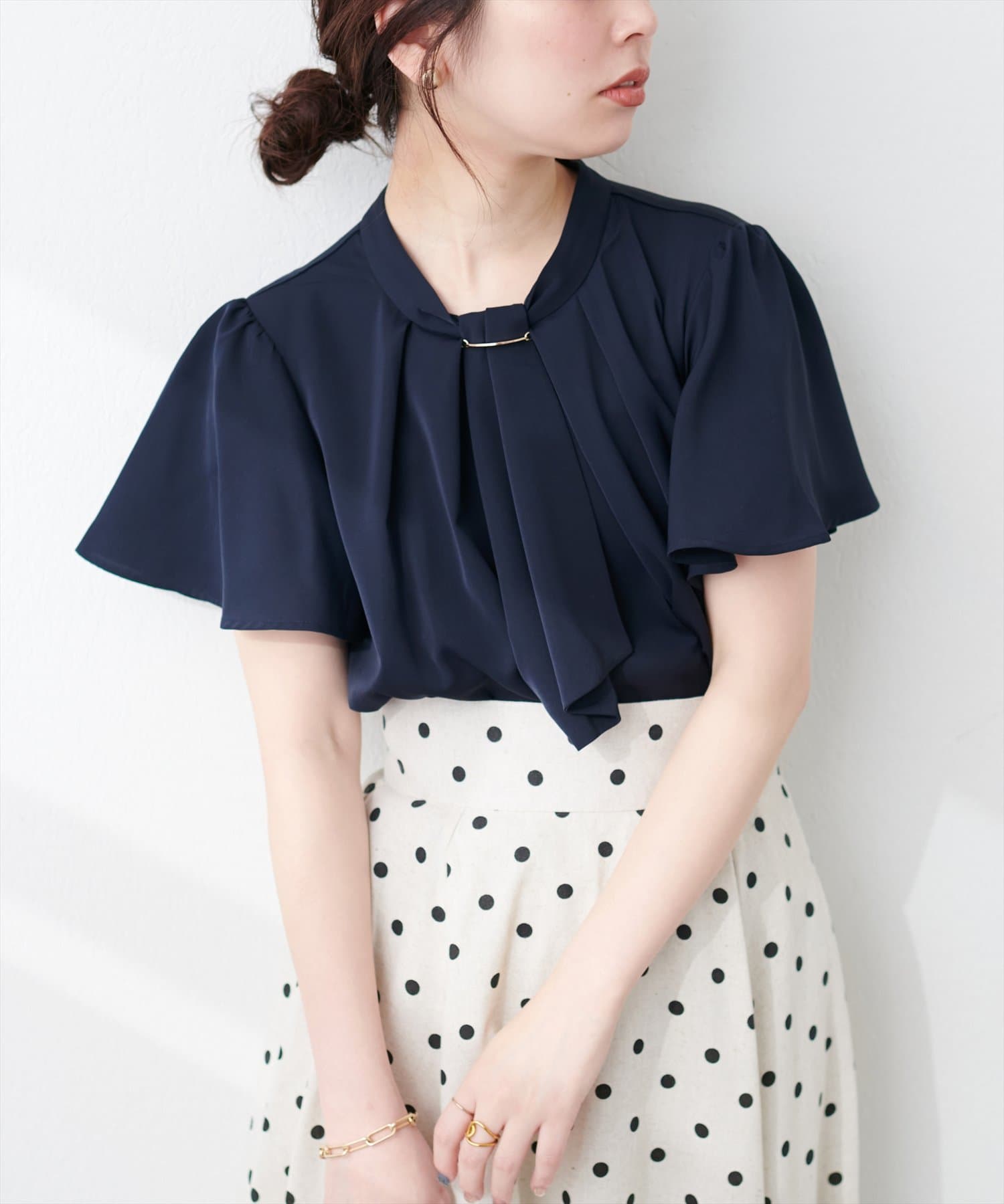 【WEB限定】ゴールドバー付ボウタイブラウス