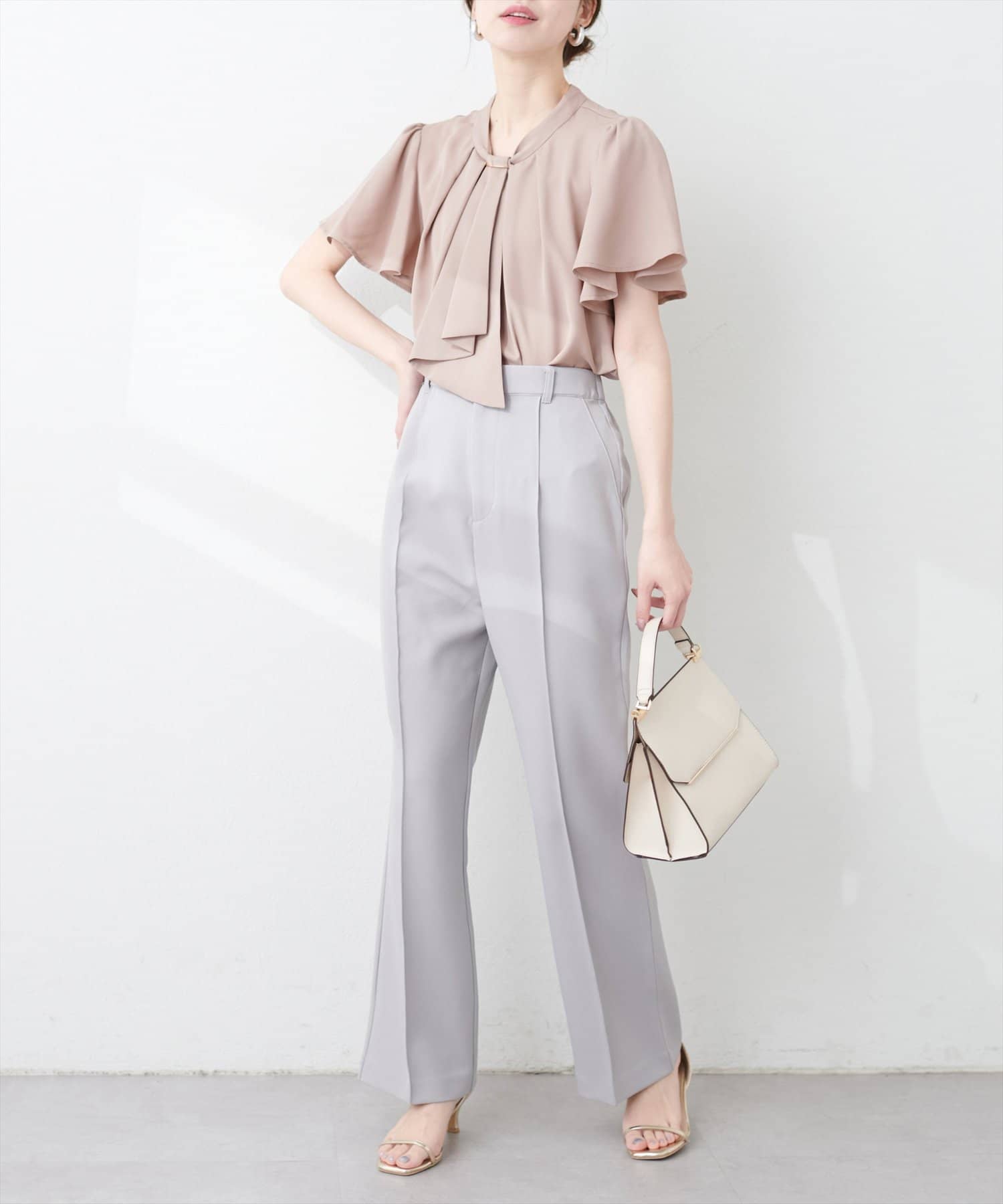 落ち感のある素材が上品さとフェミニンさを演出してくれます。