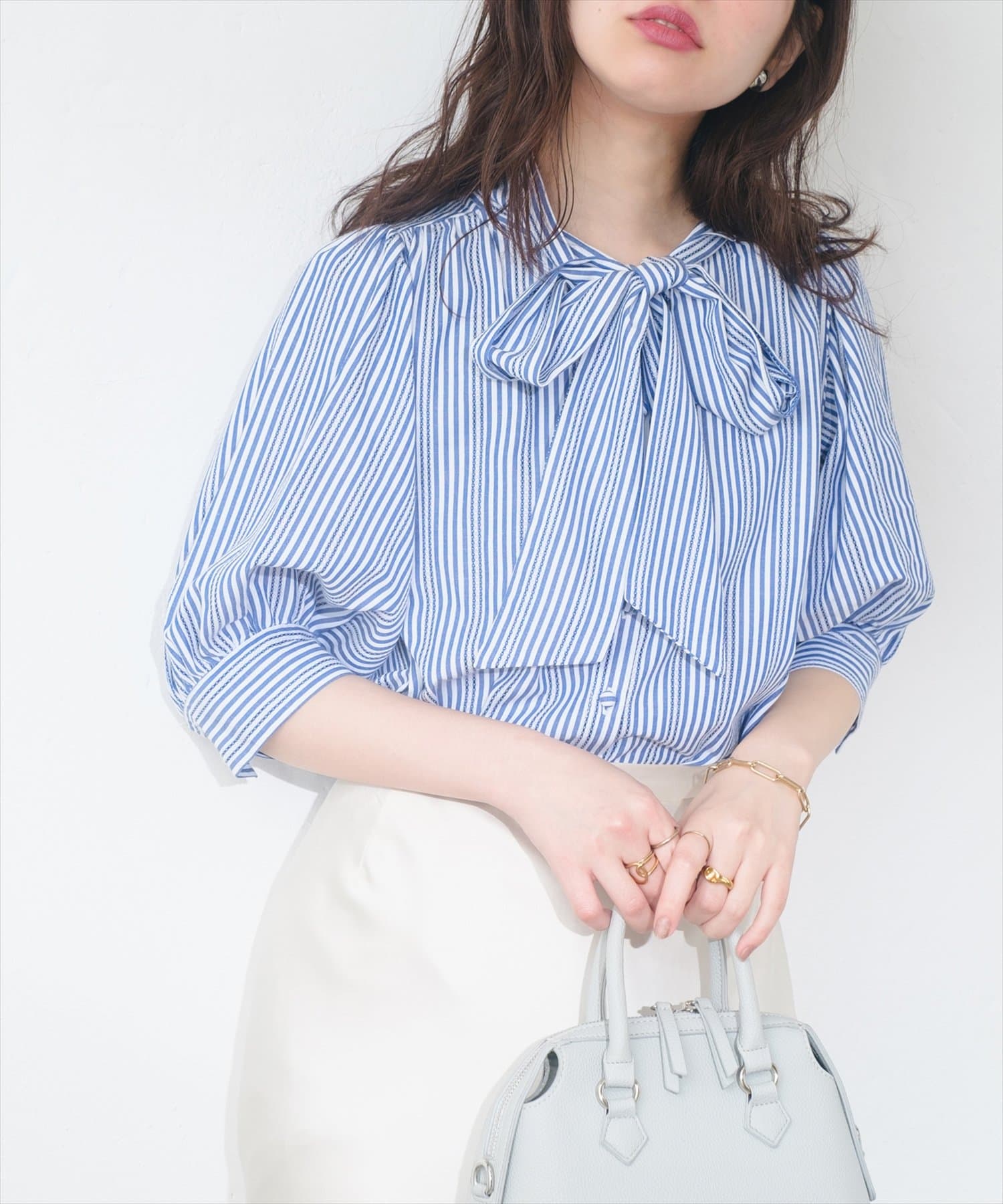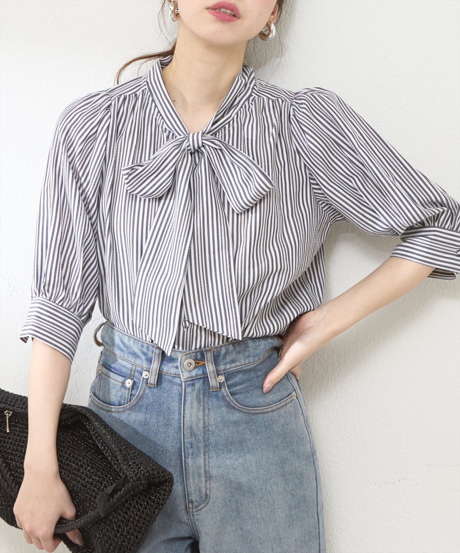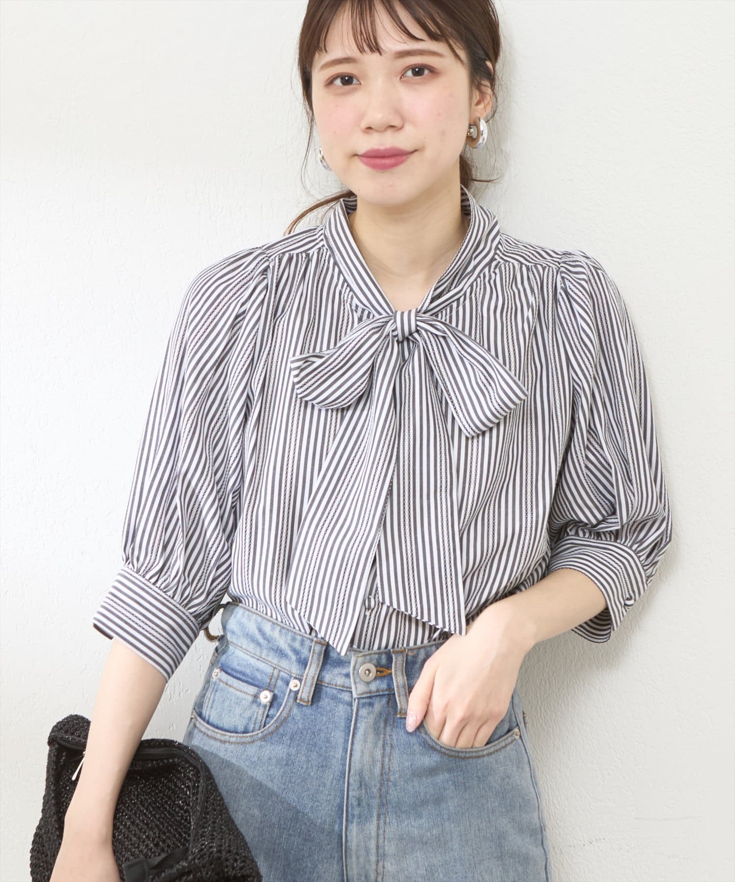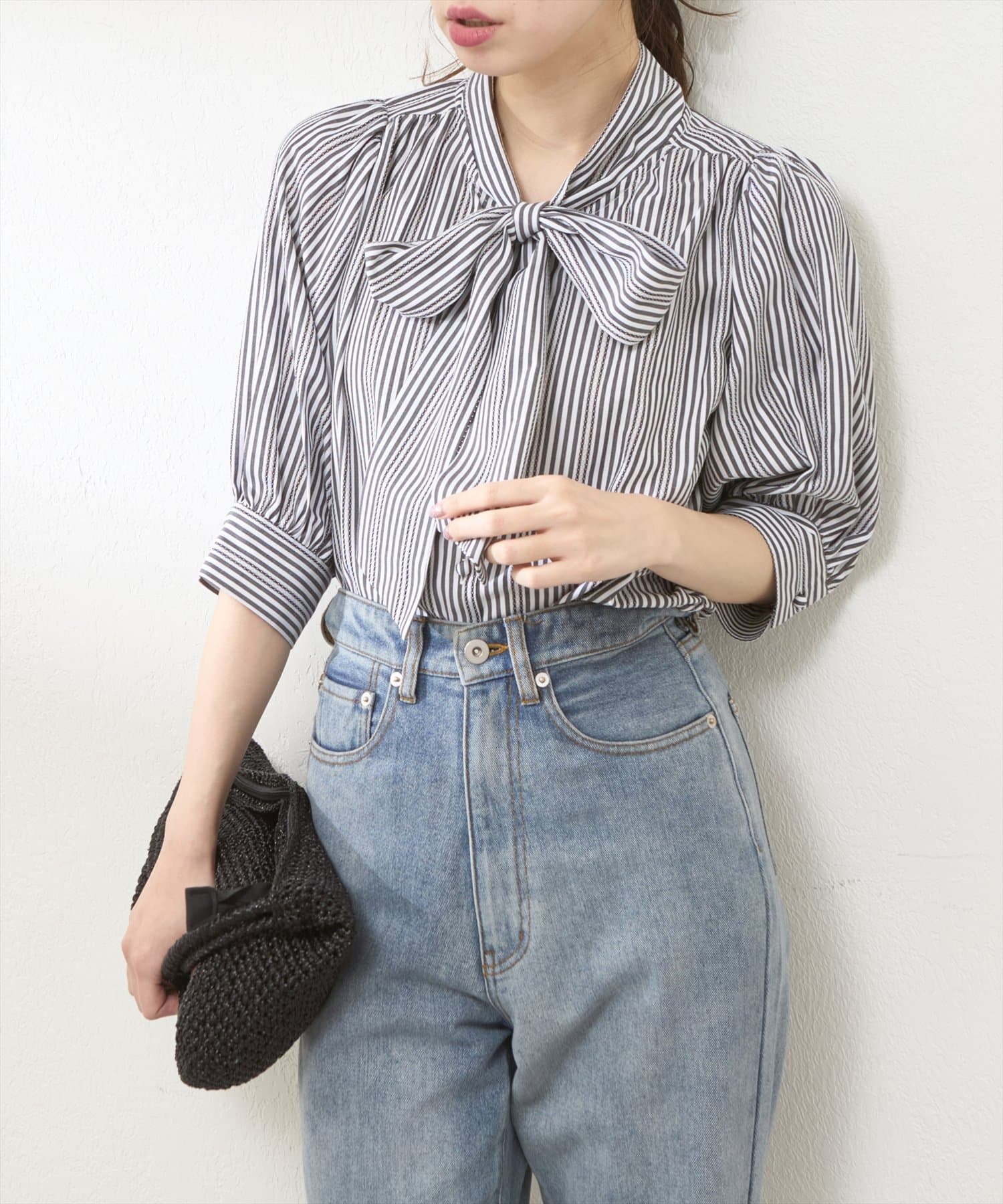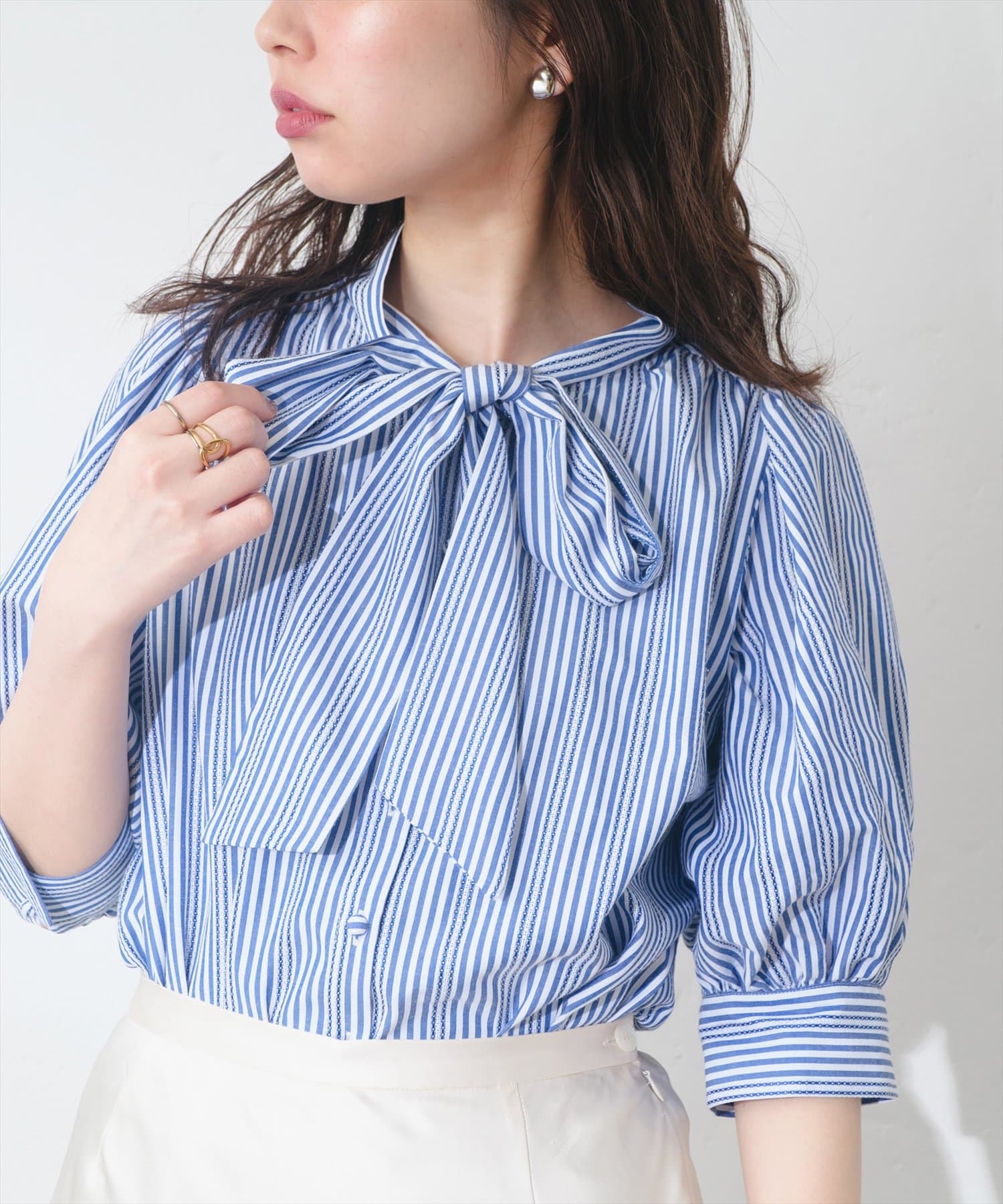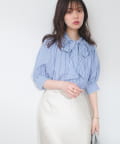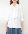 リバイバルアイテム!きれいめなストライプが程よい甘さのボータイブラウス