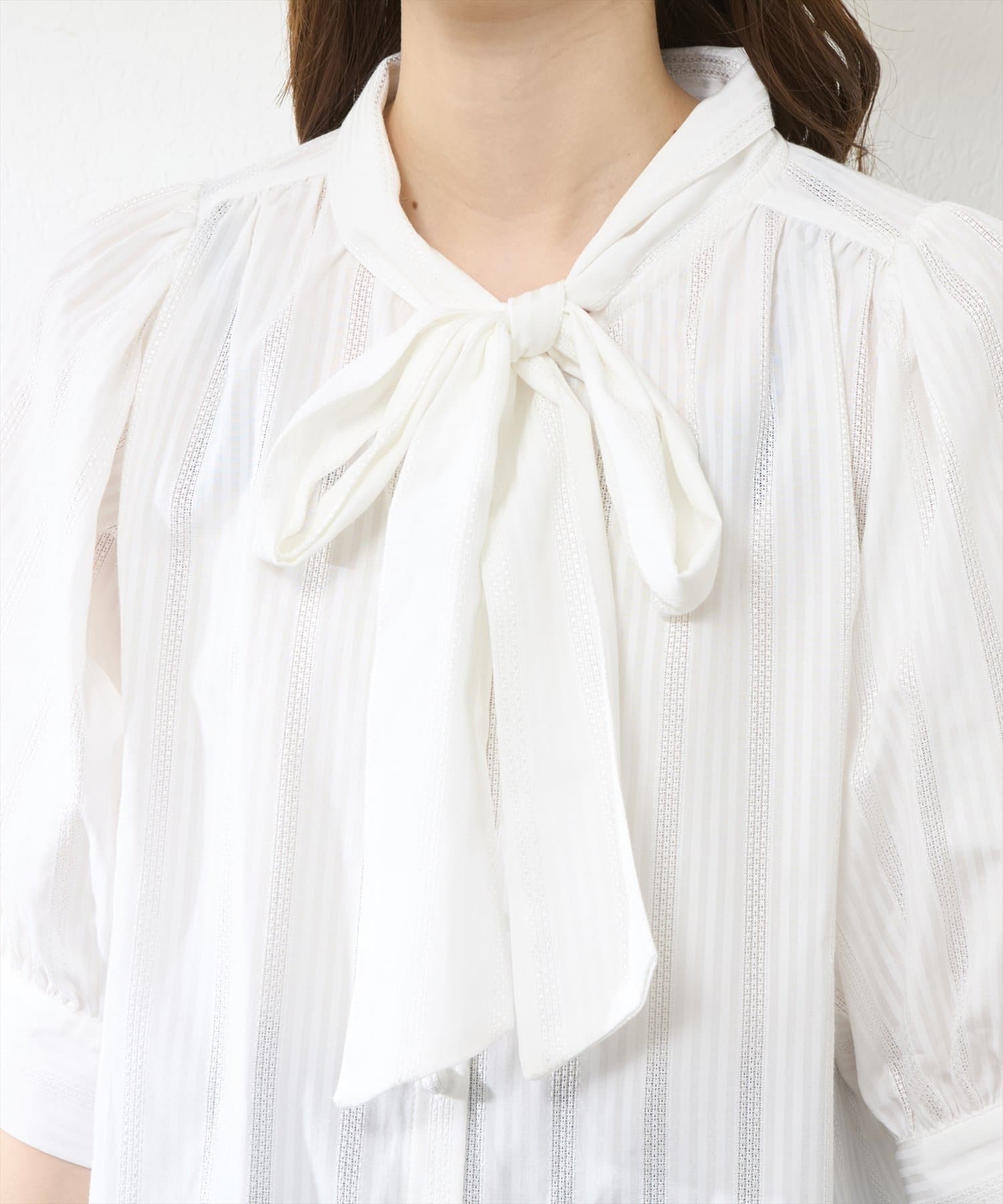 【WEB限定】ドビーストライプボータイブラウス