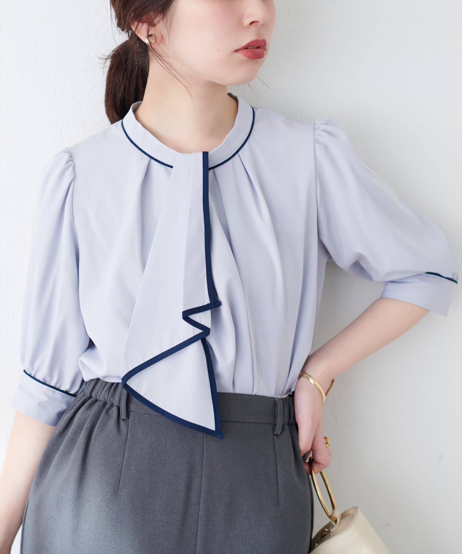 上品な華やかさをもたらしてくれるボウタイブラウス。