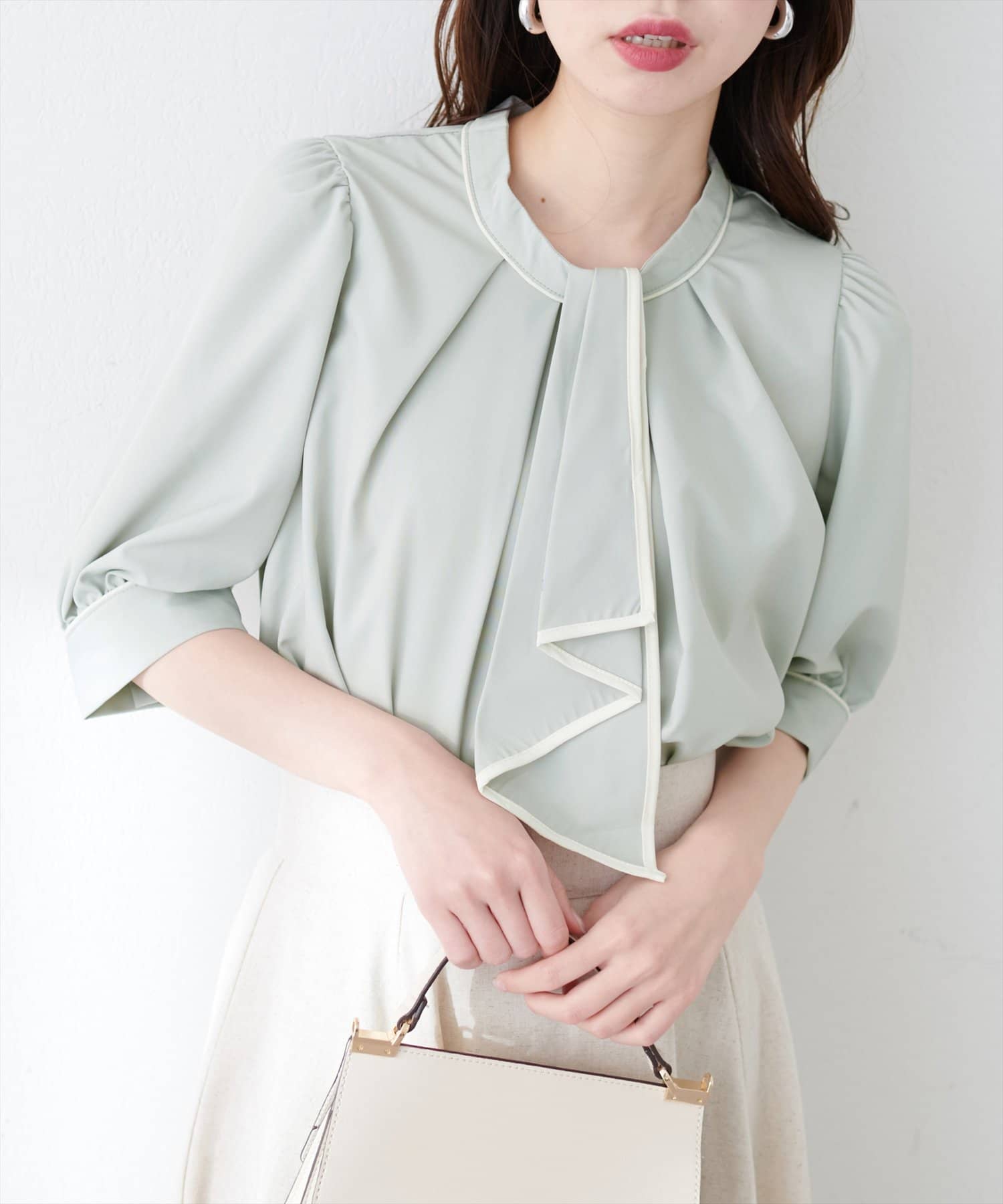 配色ボウタイ2WAYブラウスに5分袖が登場!