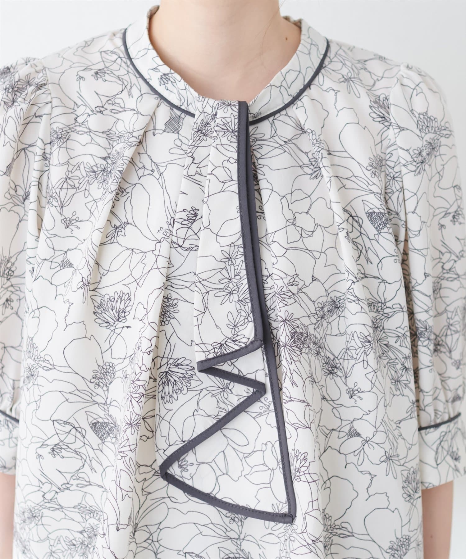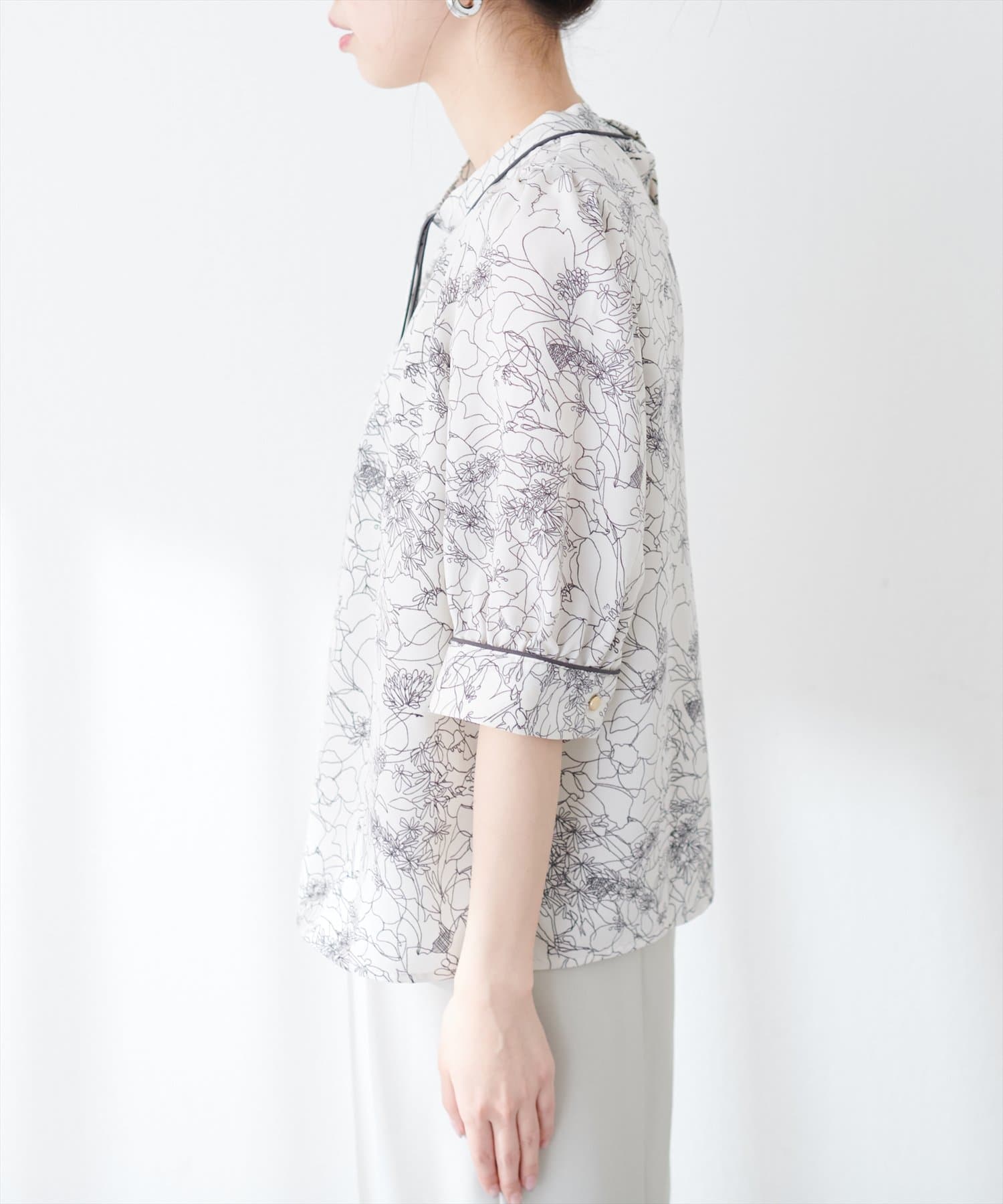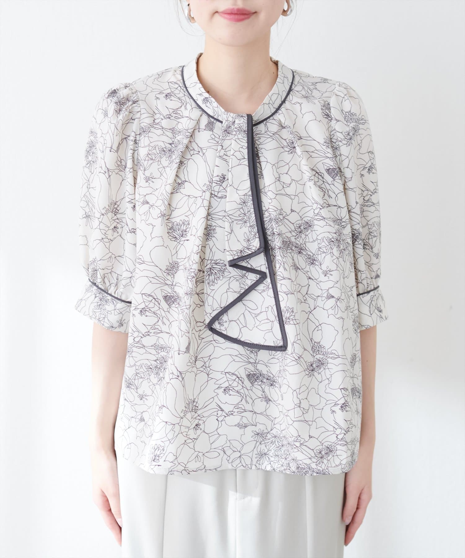 さらっとした薄手のブラウス地でカーディガンを羽織っても、もたつかず着用いただけます。