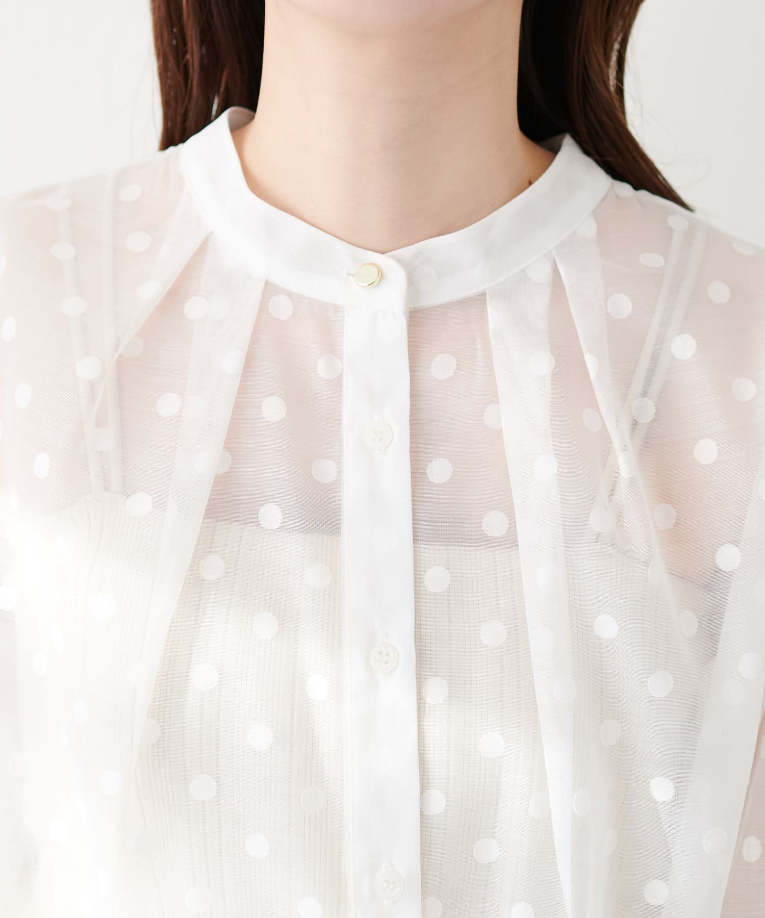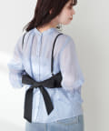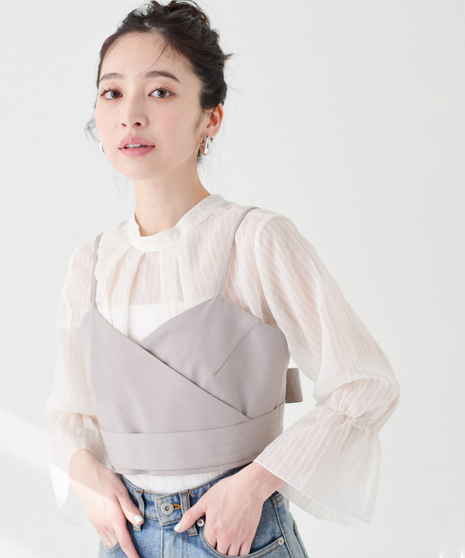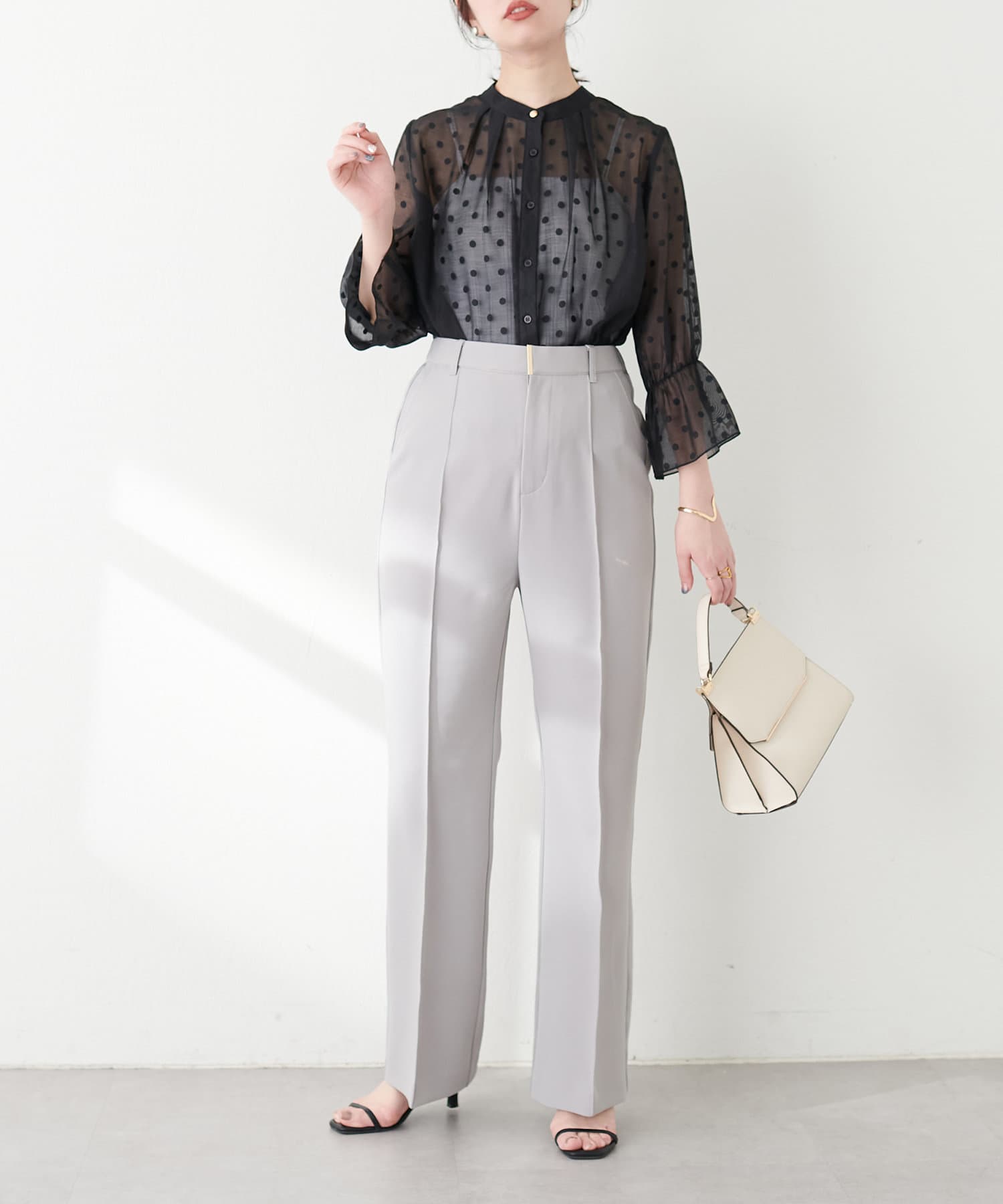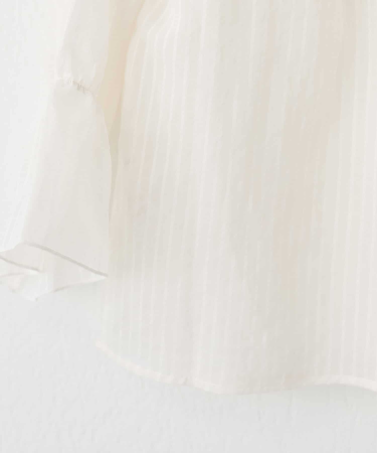 シアー素材からほんのり覗くヘルシーな肌見せが女性らしいブラウス。