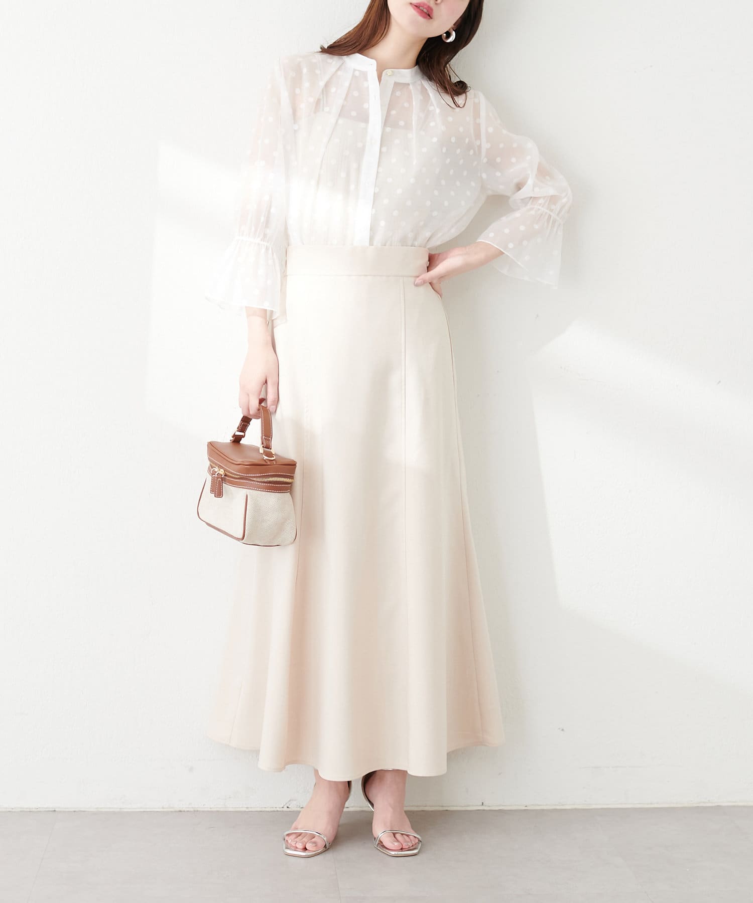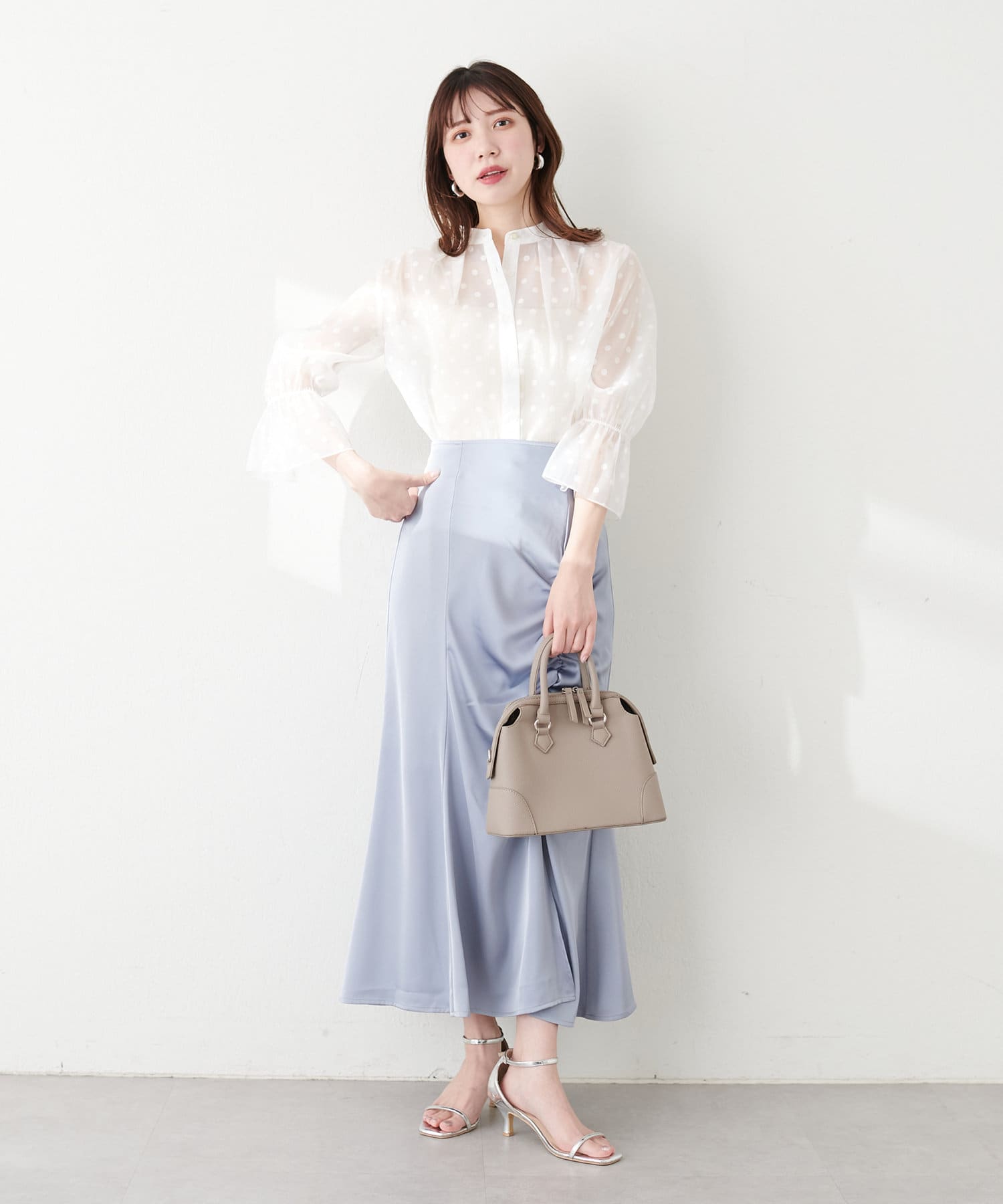 マーメイドシルエットやナローシルエットのスカートにウエストインでお召し頂くと、大人レディな印象に仕上がります。