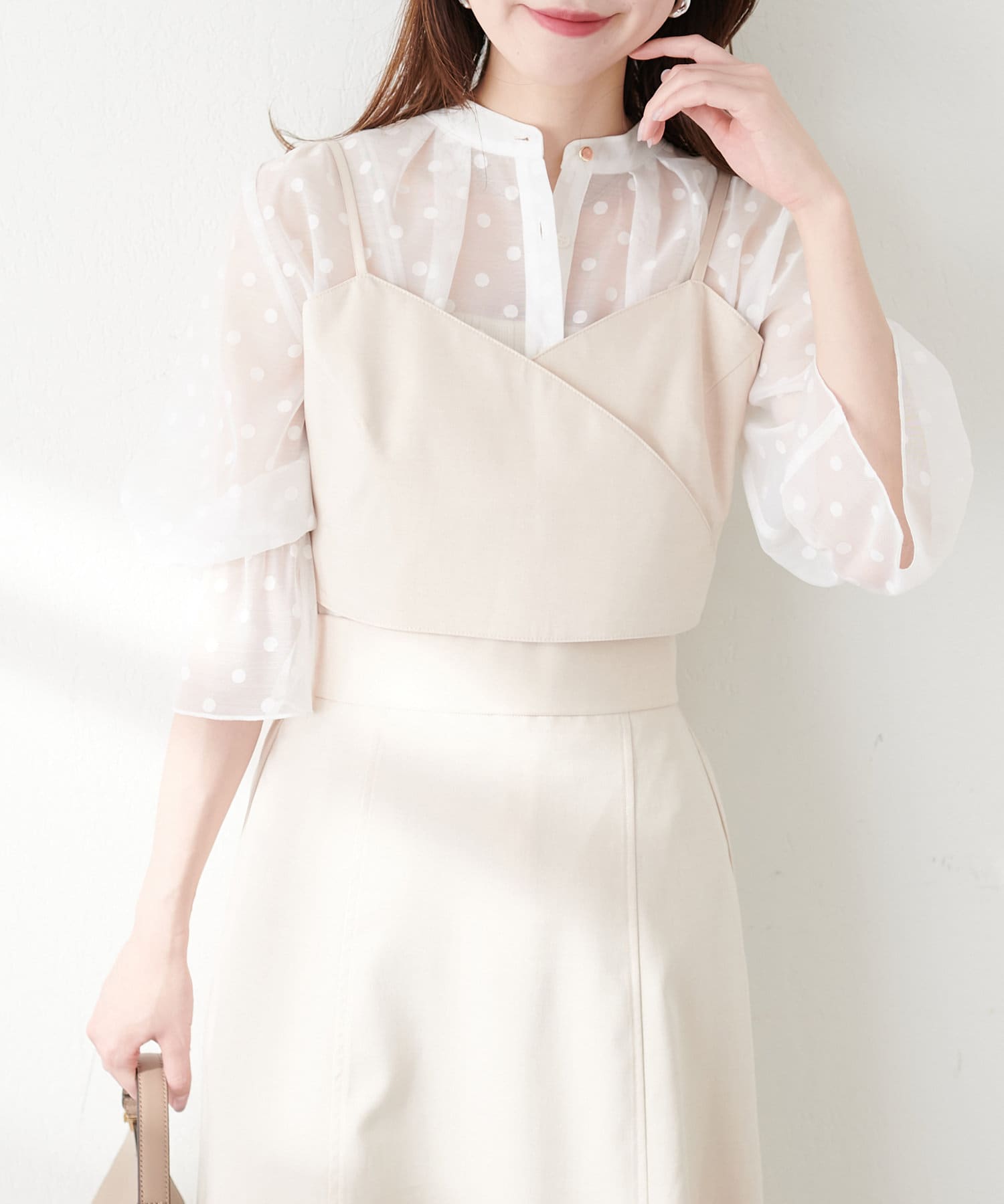 お袖はゴム入りのキャンディスリーブで、フェミニンさとエアリー感を表現しました。