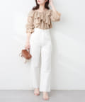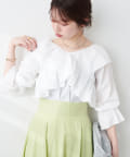 たっぷりのフリルとキャンディスリーブがアクセントになるので、シンプルなボトムスと合わせるだけでコーディネートがきまります。