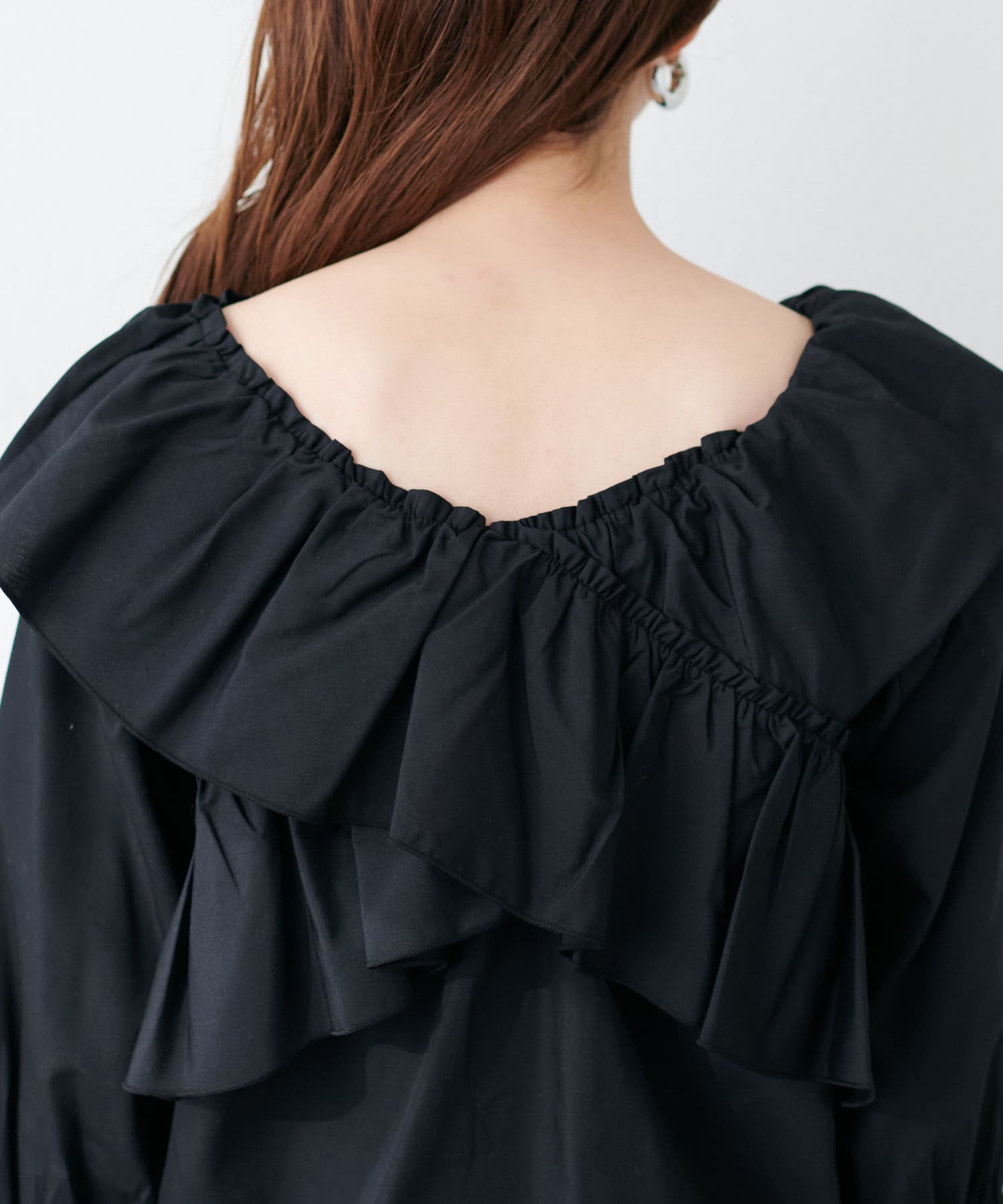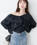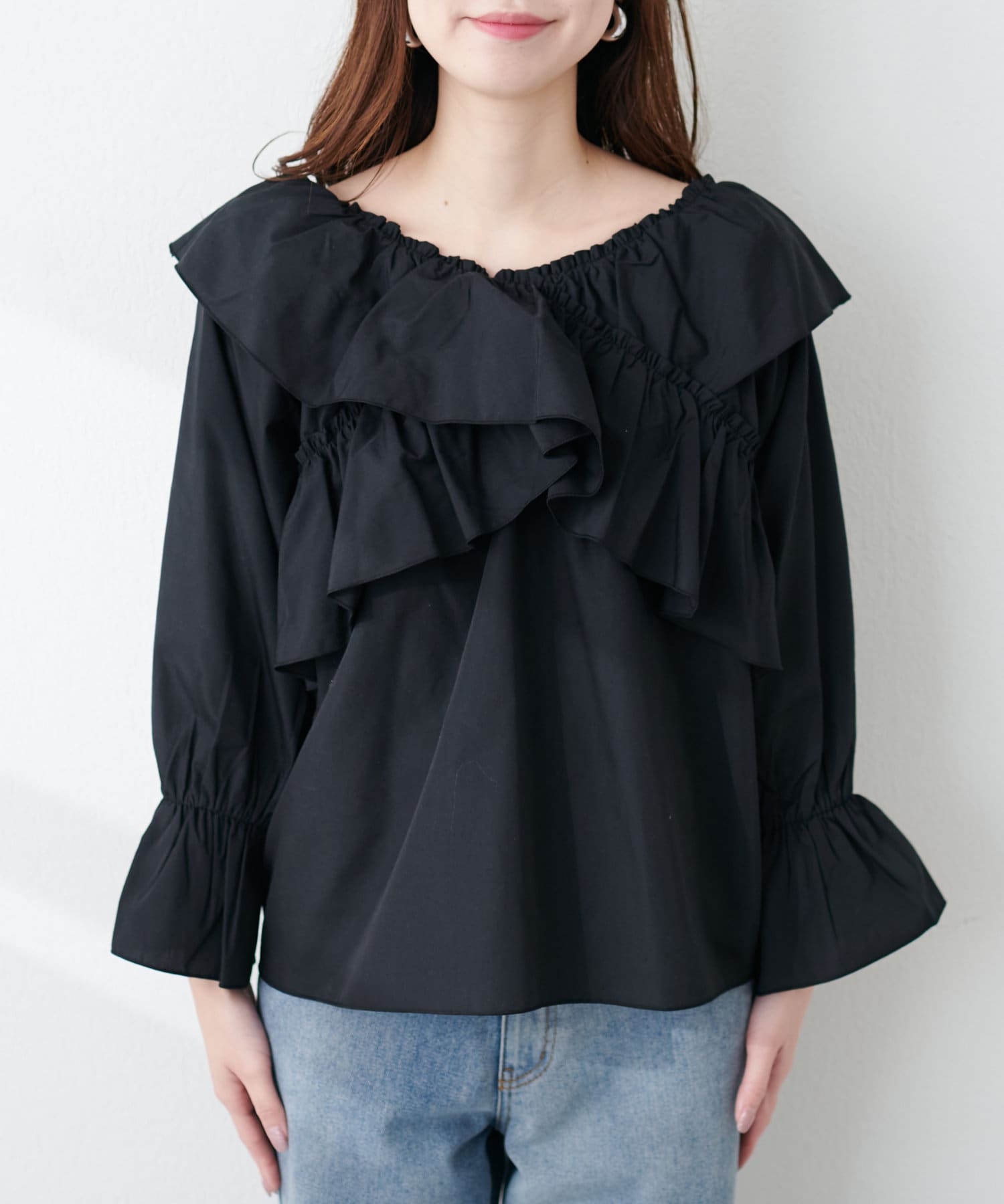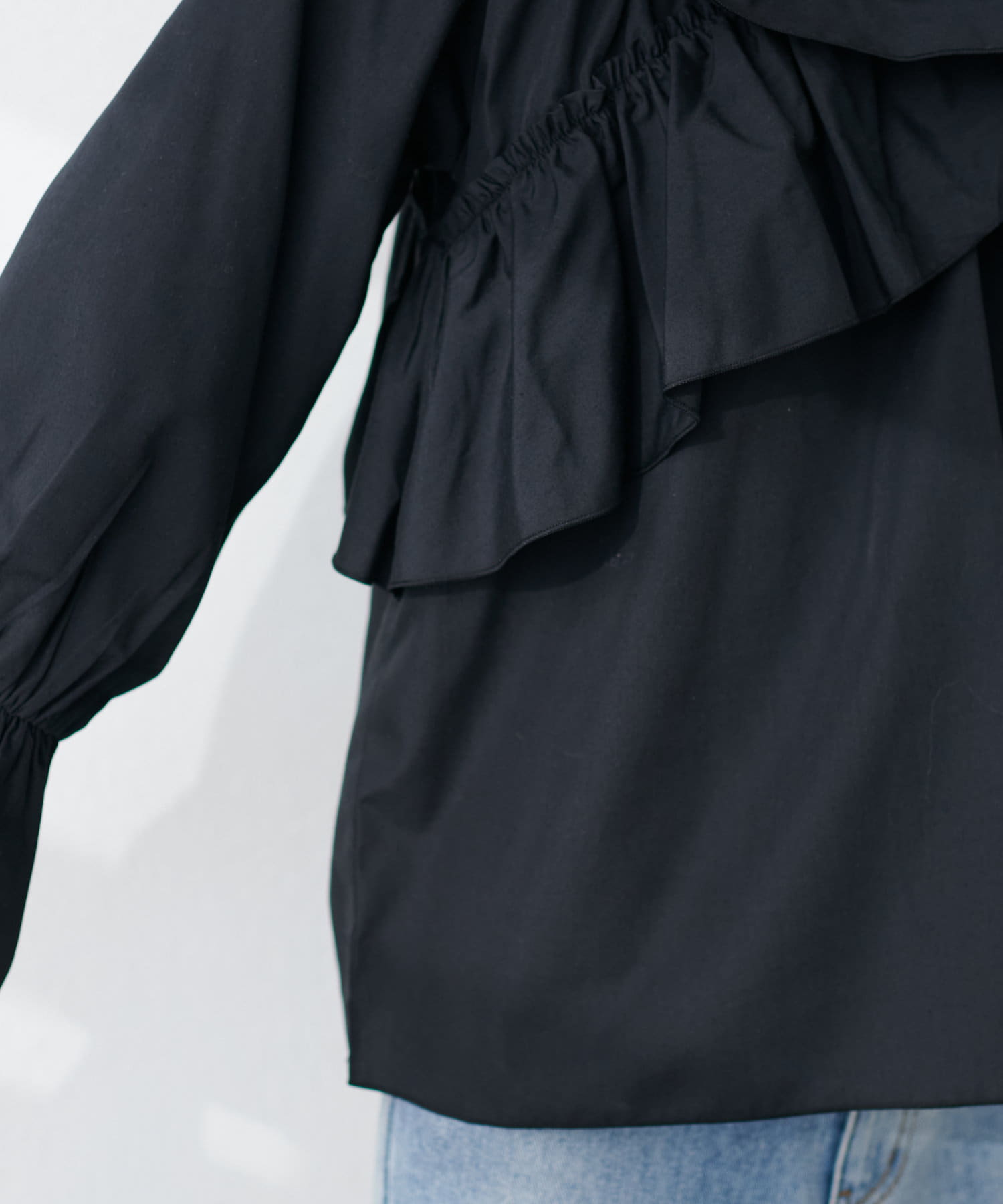 大胆なフリルデザインがコーディネートの主役になるブラウス