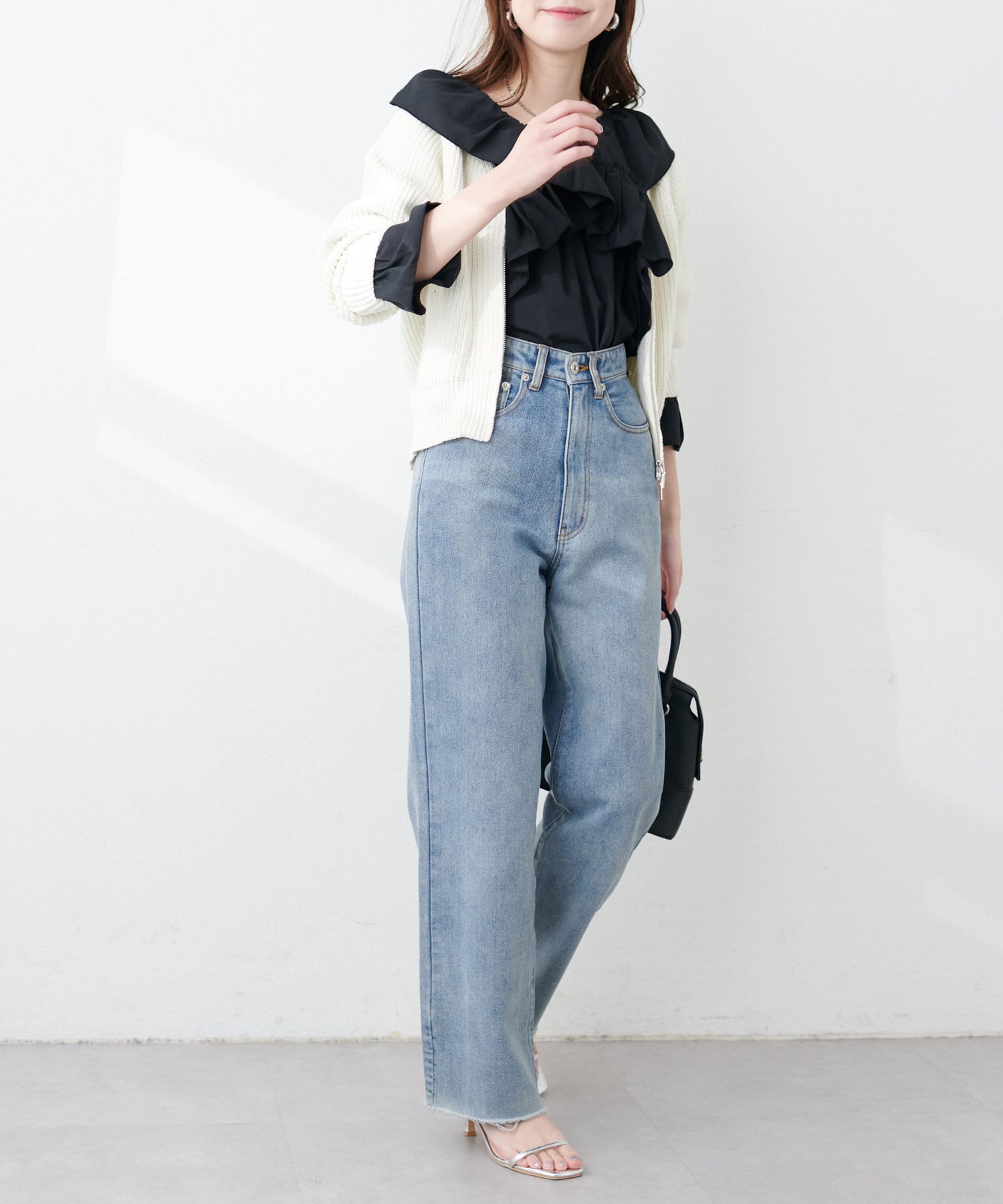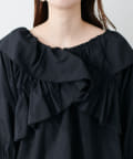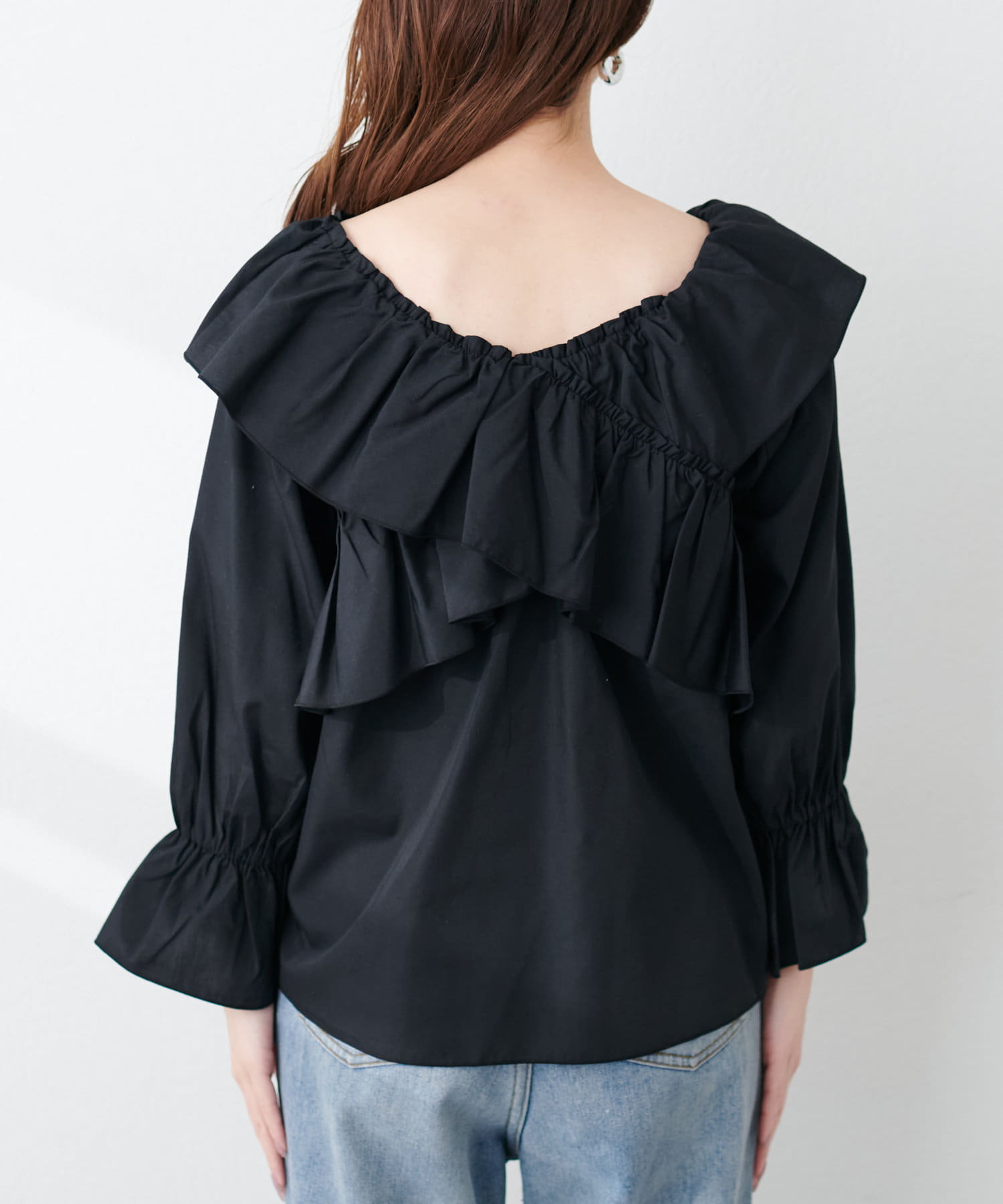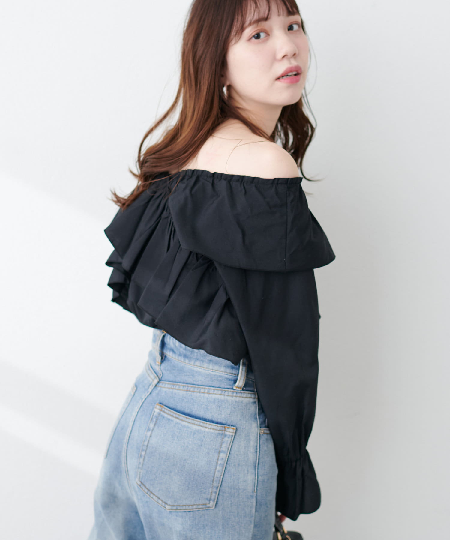 大胆なフリルデザインがコーディネートの主役になるブラウス