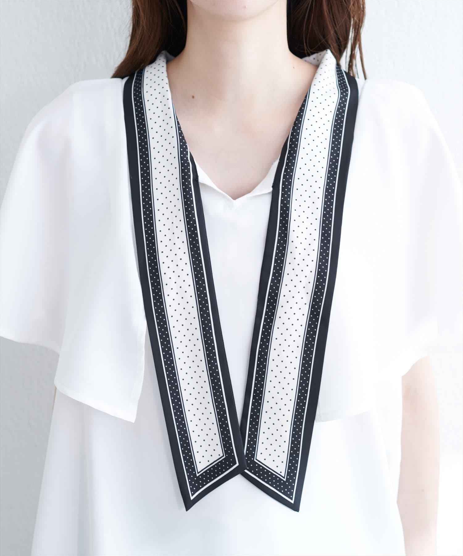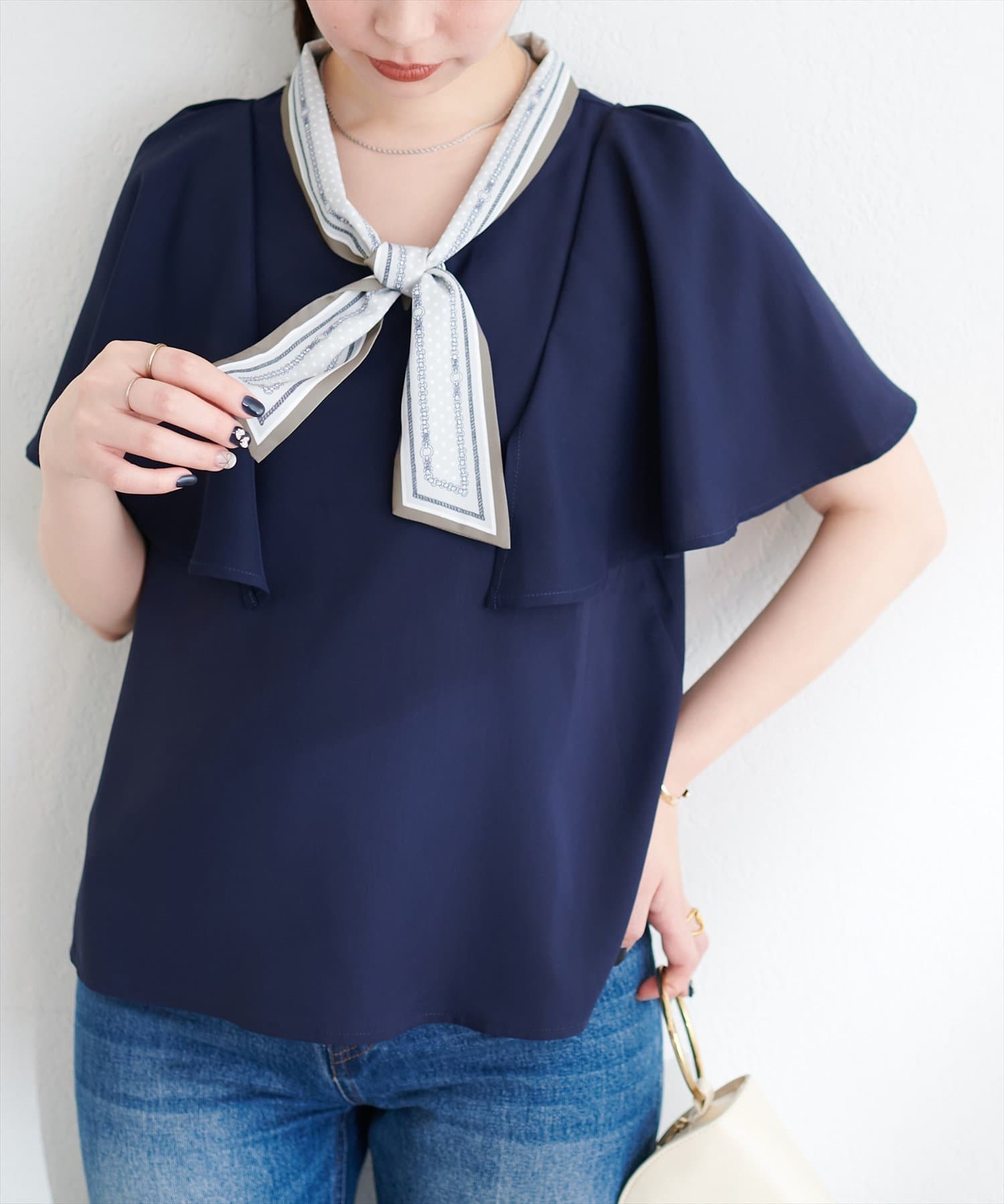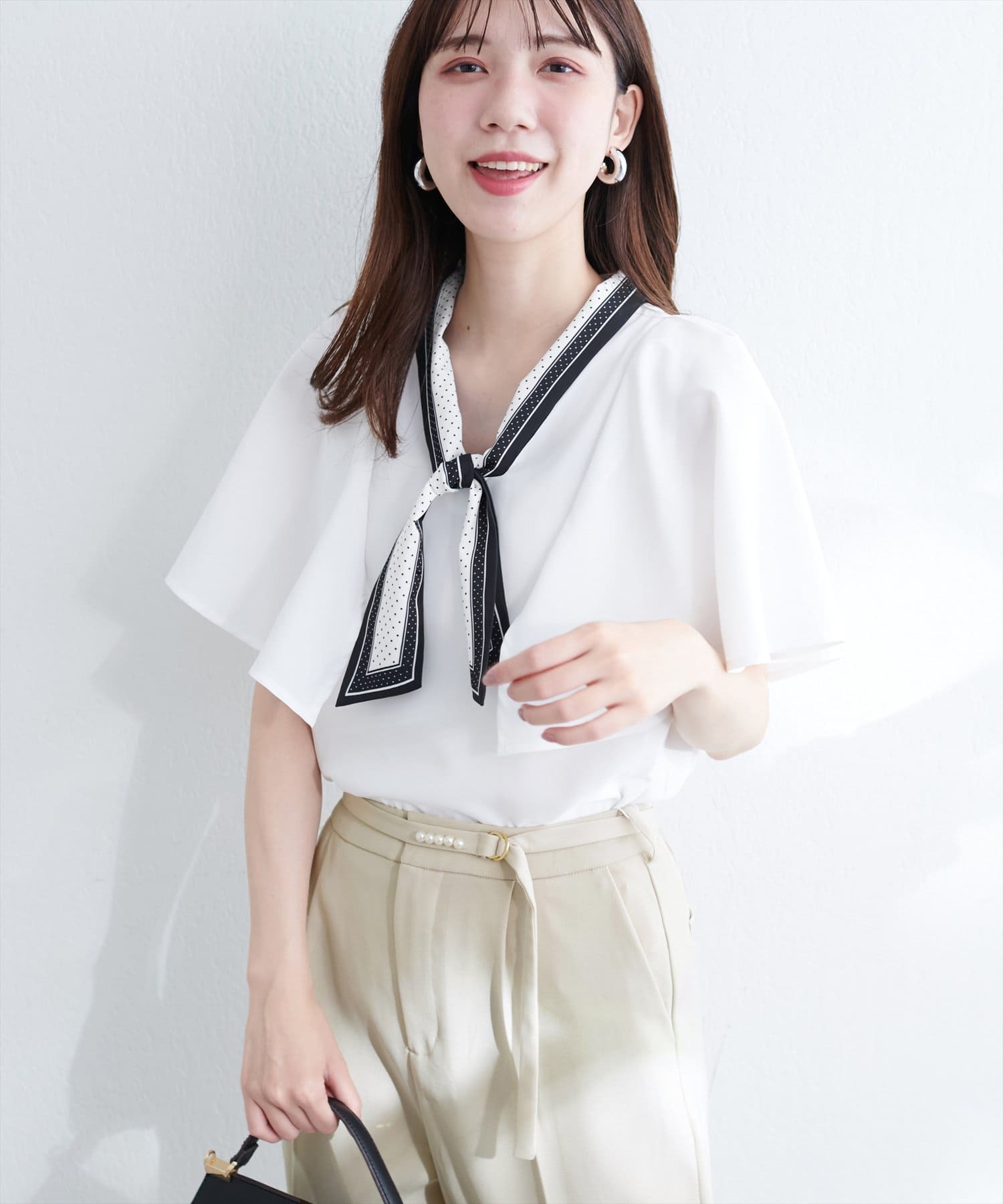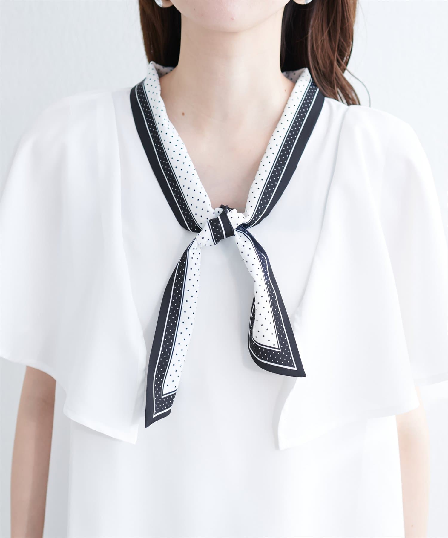 • natural couture(ナチュラルクチュール) 【WEB限定】スカーフプリントボウタイブラウス