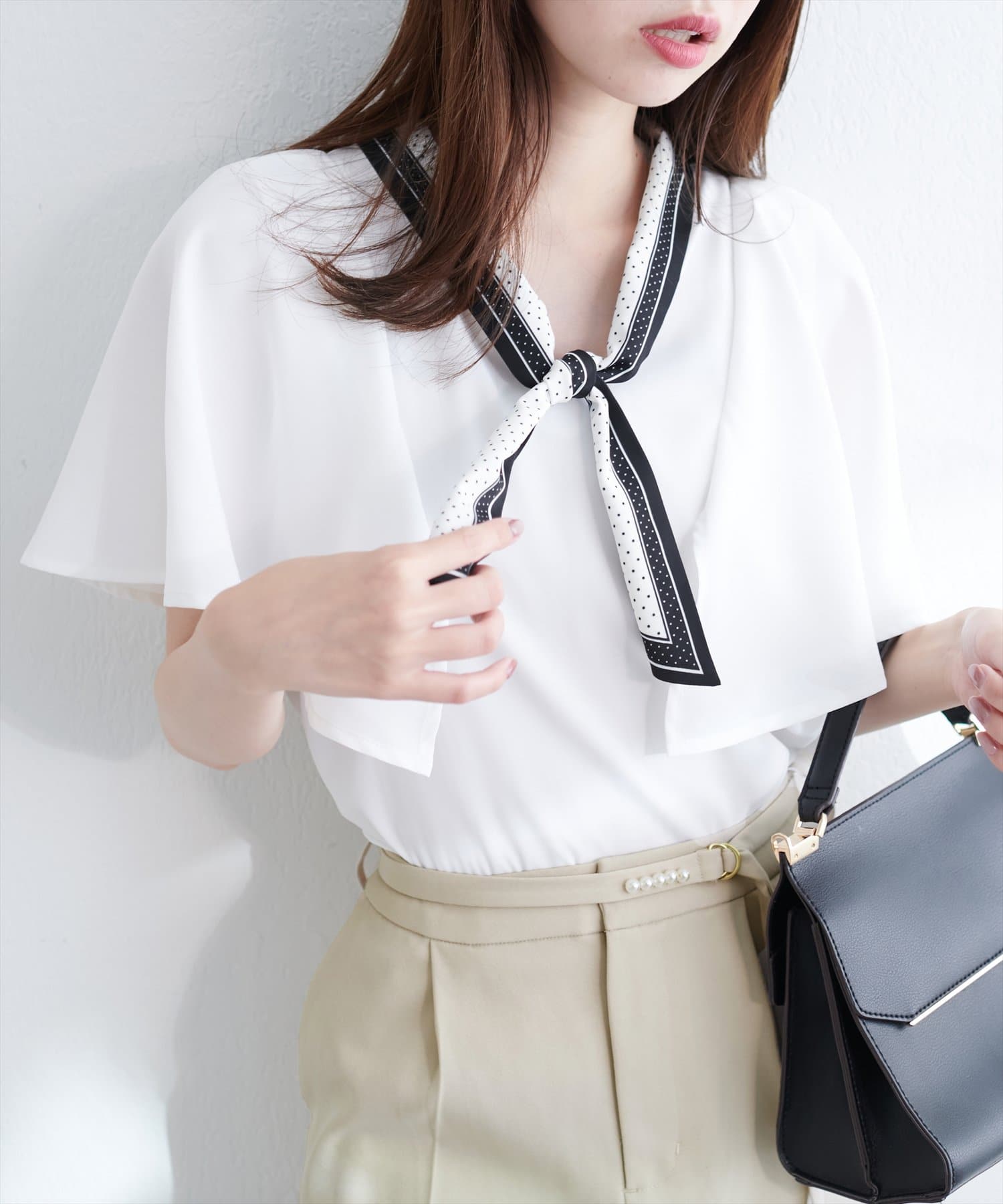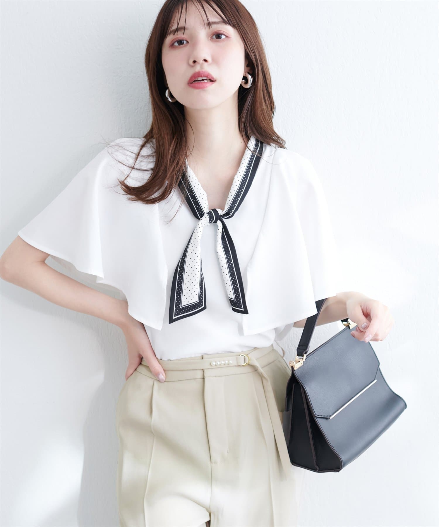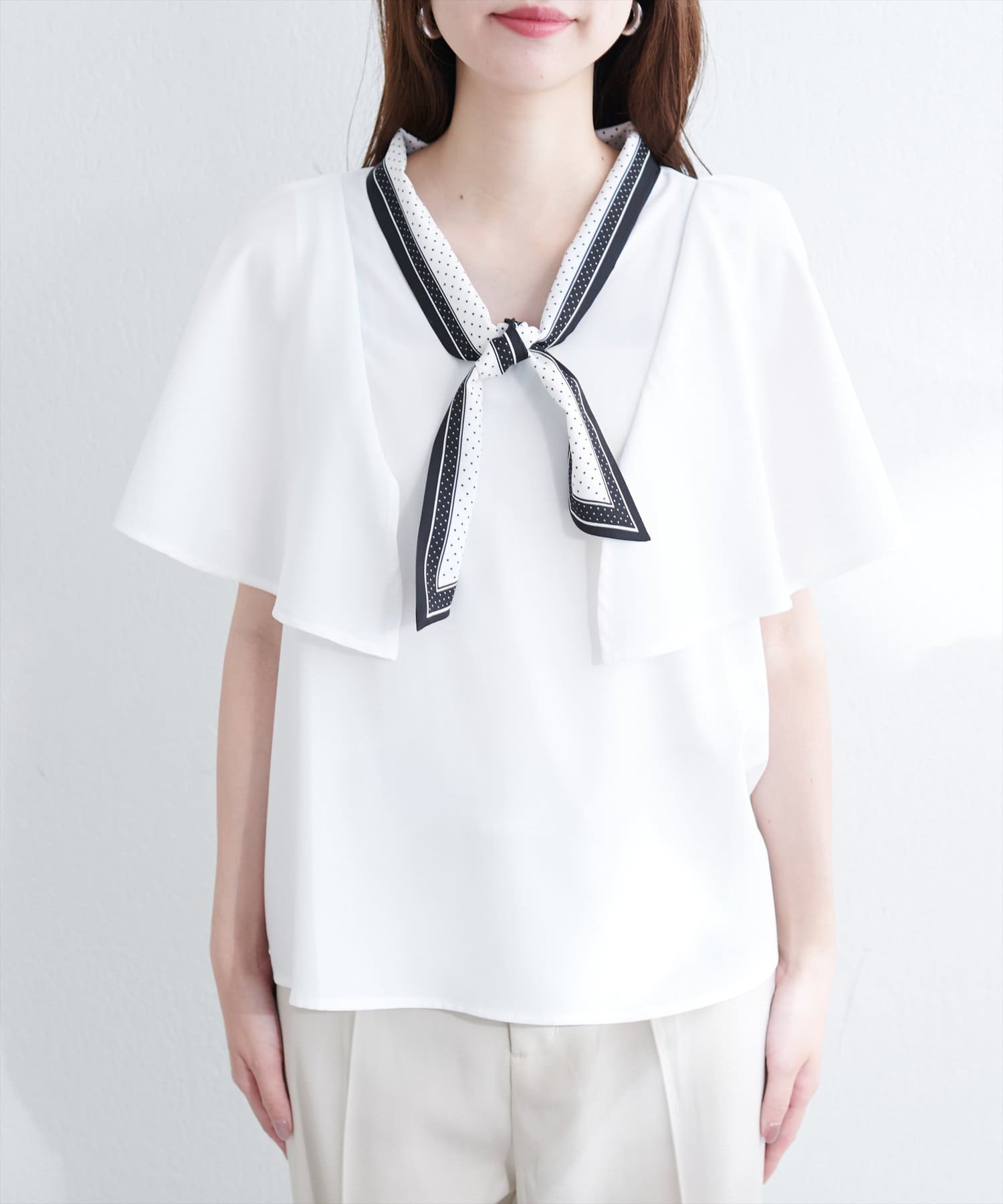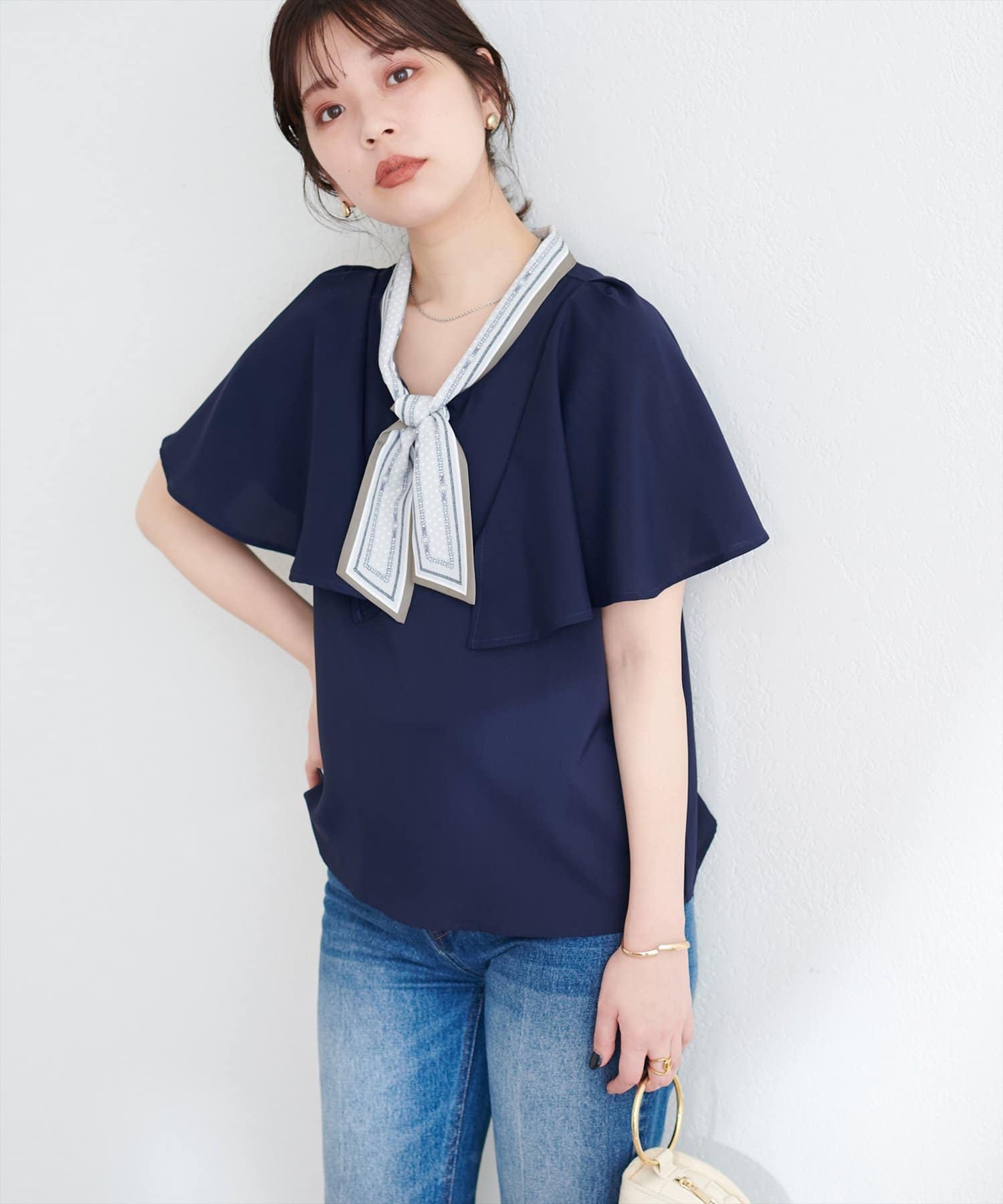 • natural couture(ナチュラルクチュール) 【WEB限定】スカーフプリントボウタイブラウス