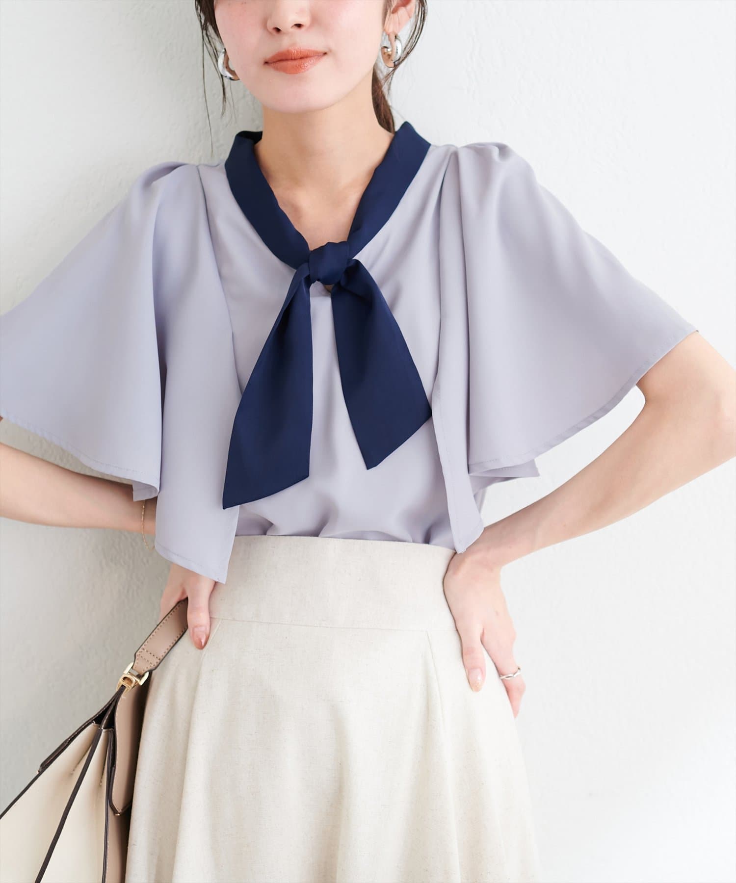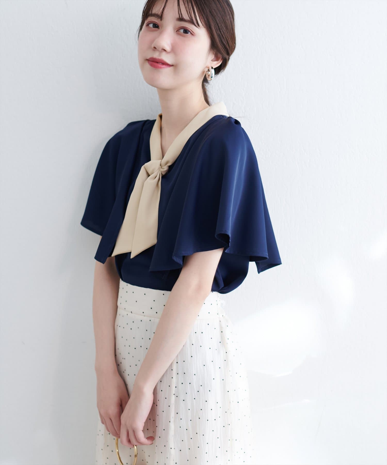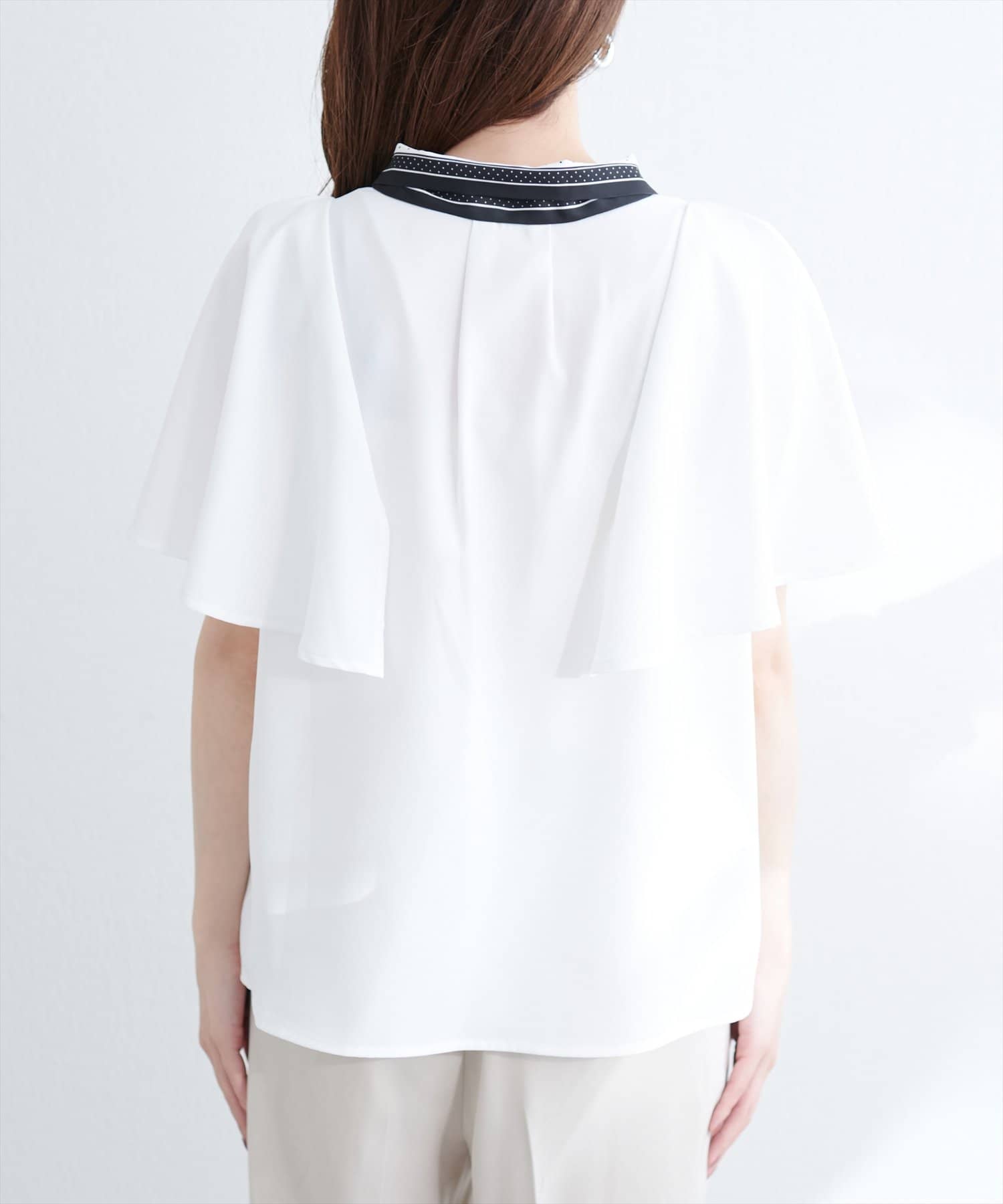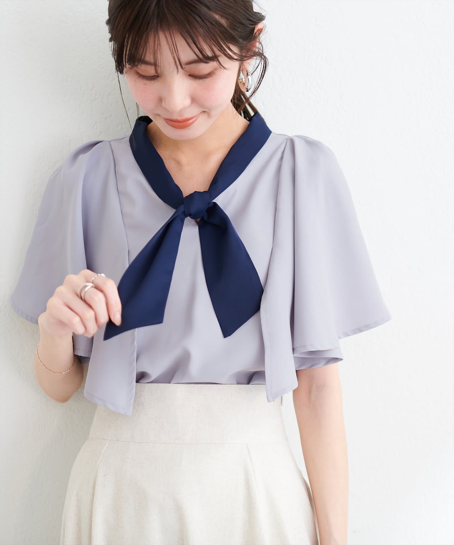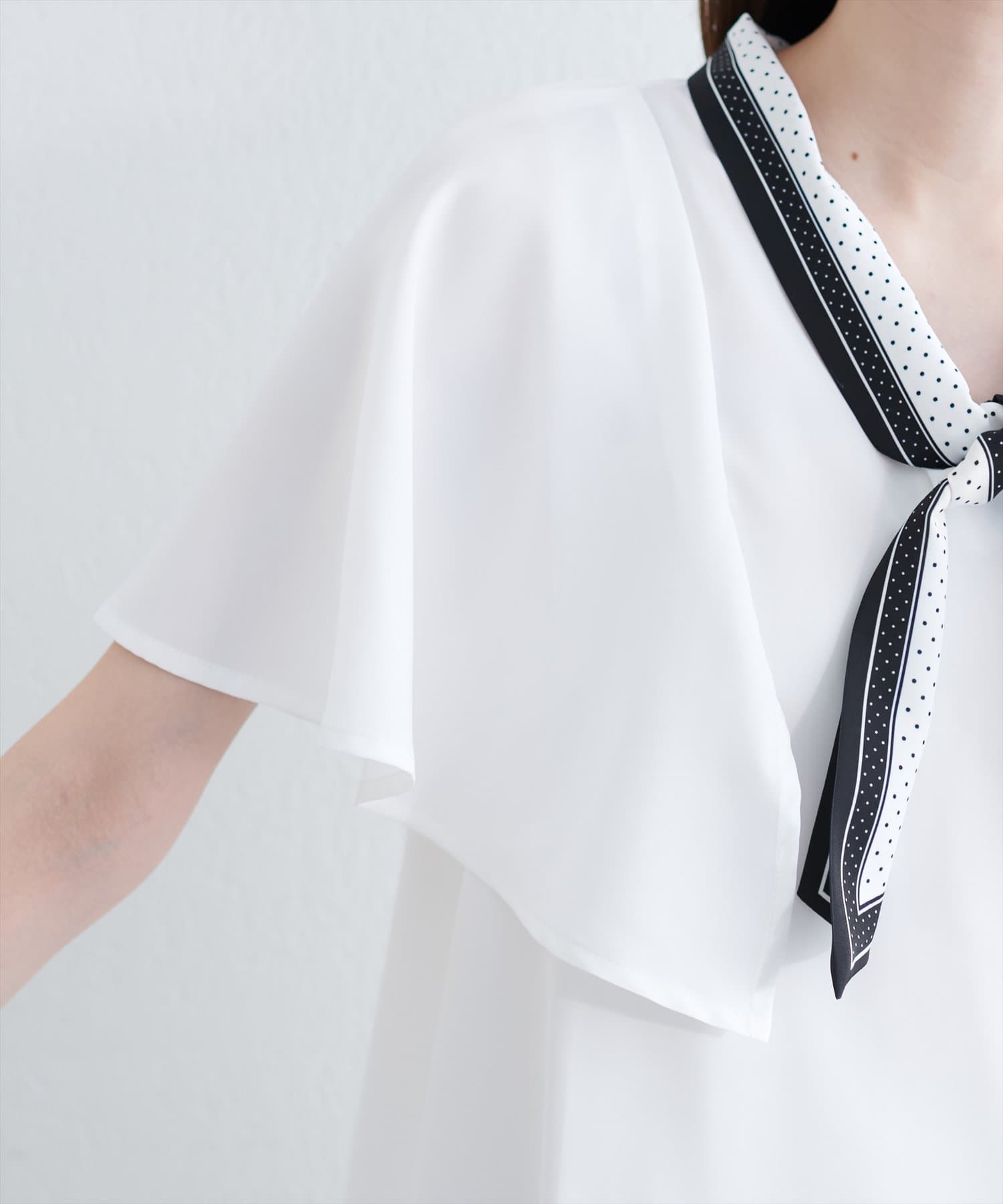 • natural couture(ナチュラルクチュール) 【WEB限定】スカーフプリントボウタイブラウス
