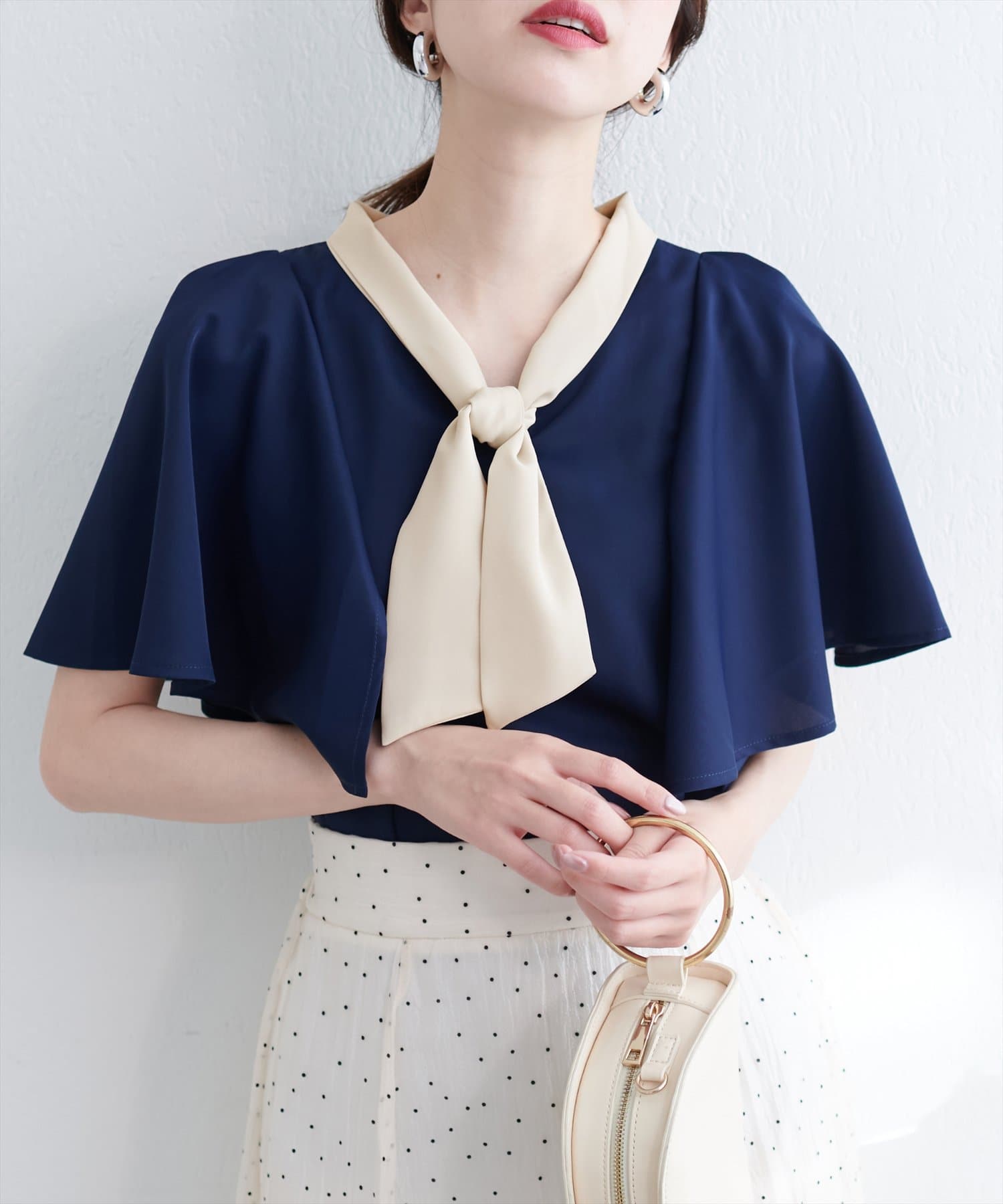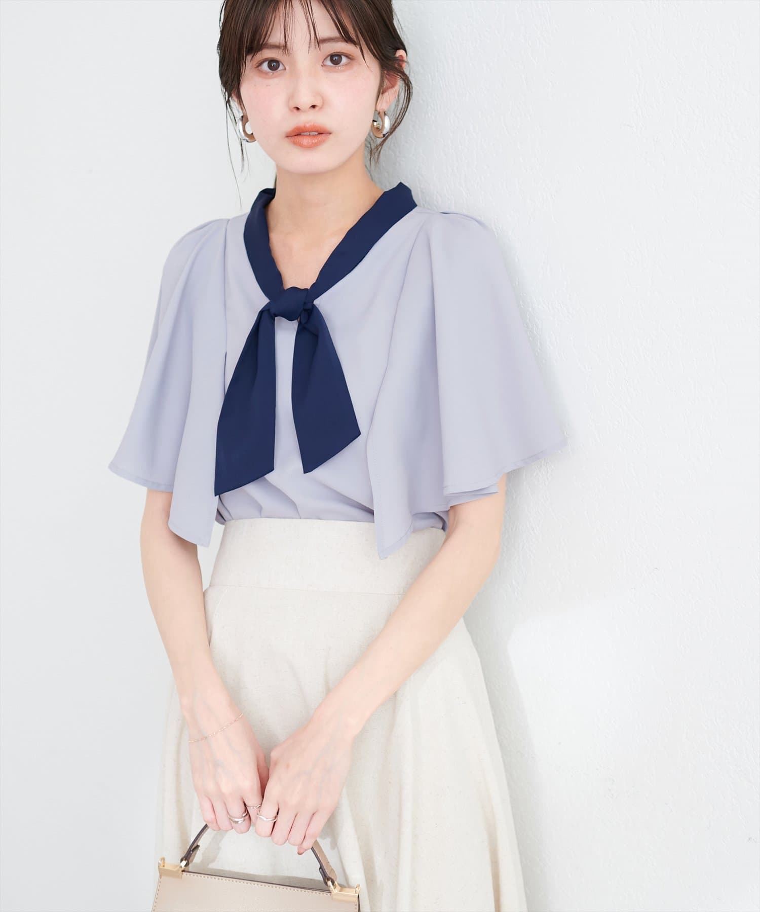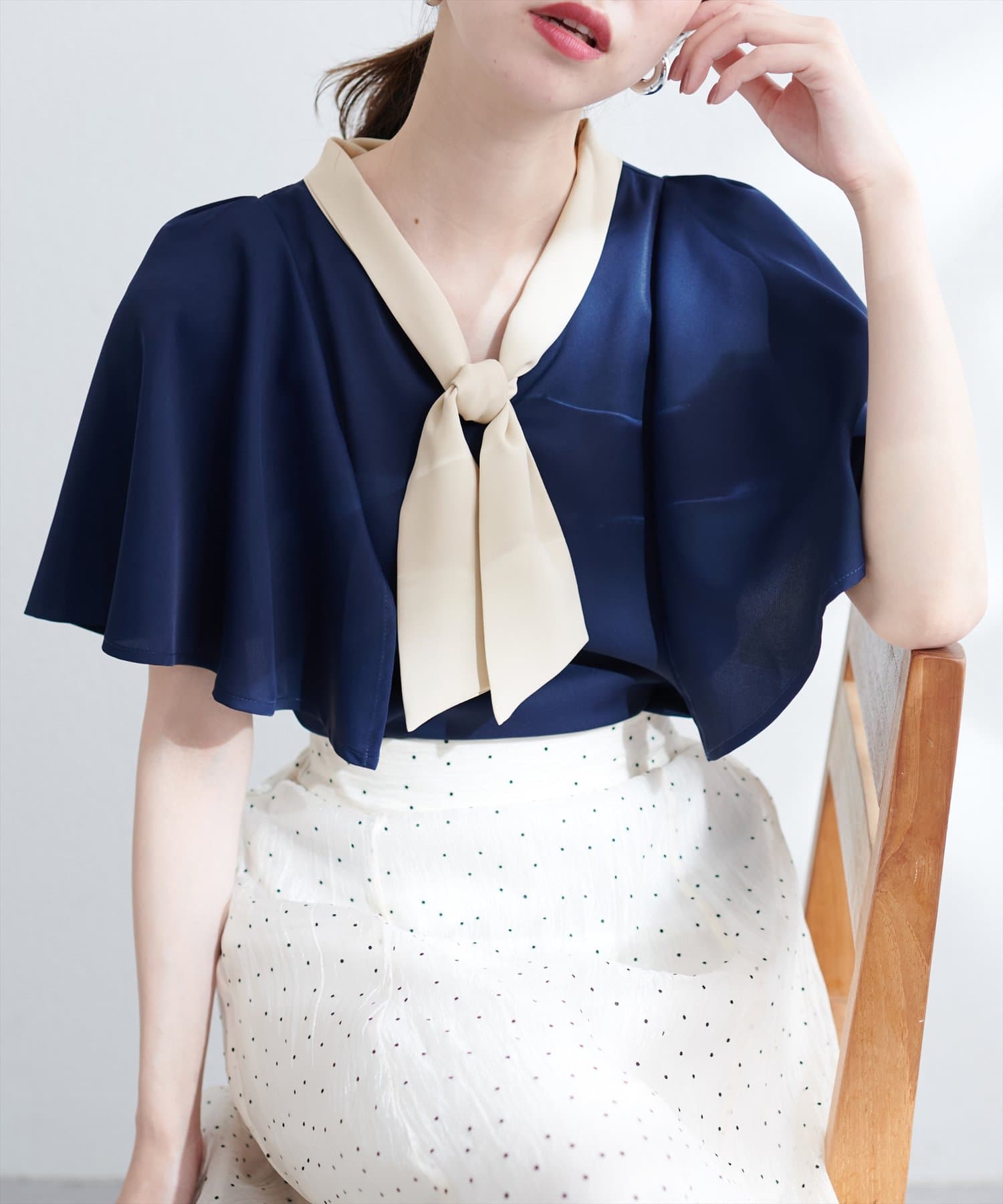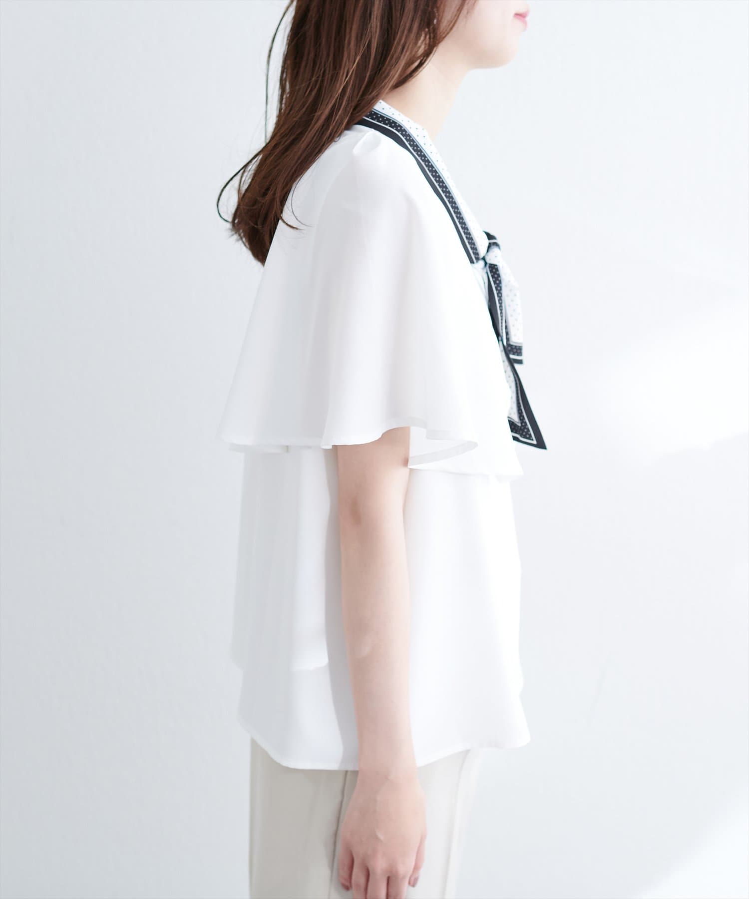 • natural couture(ナチュラルクチュール) 【WEB限定】スカーフプリントボウタイブラウス