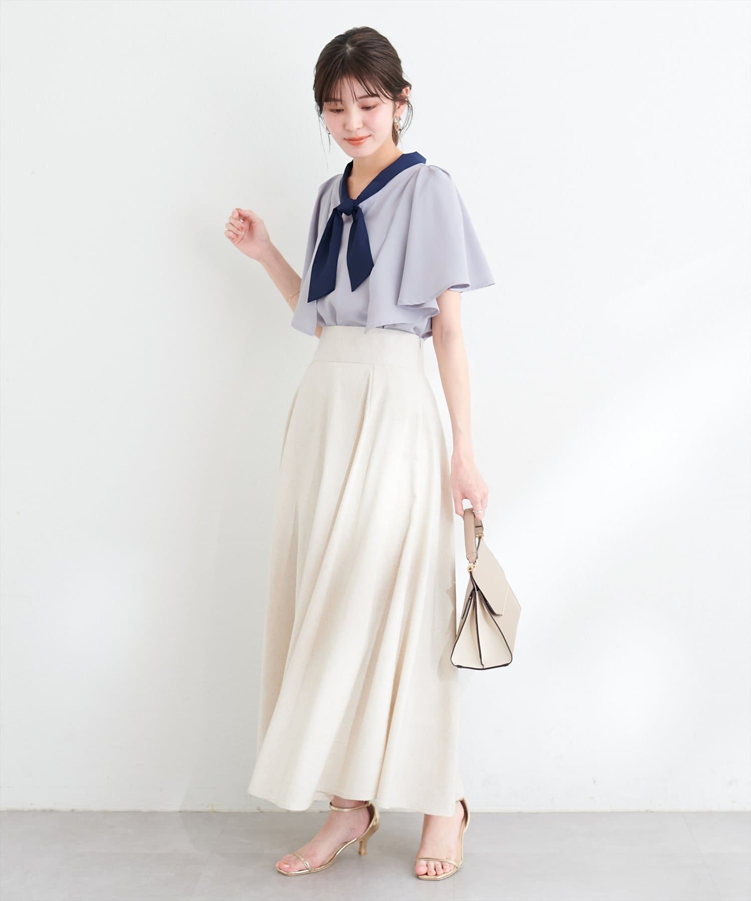 フレアスリーブなので気になる腕周りを華奢に見せてくれます◎