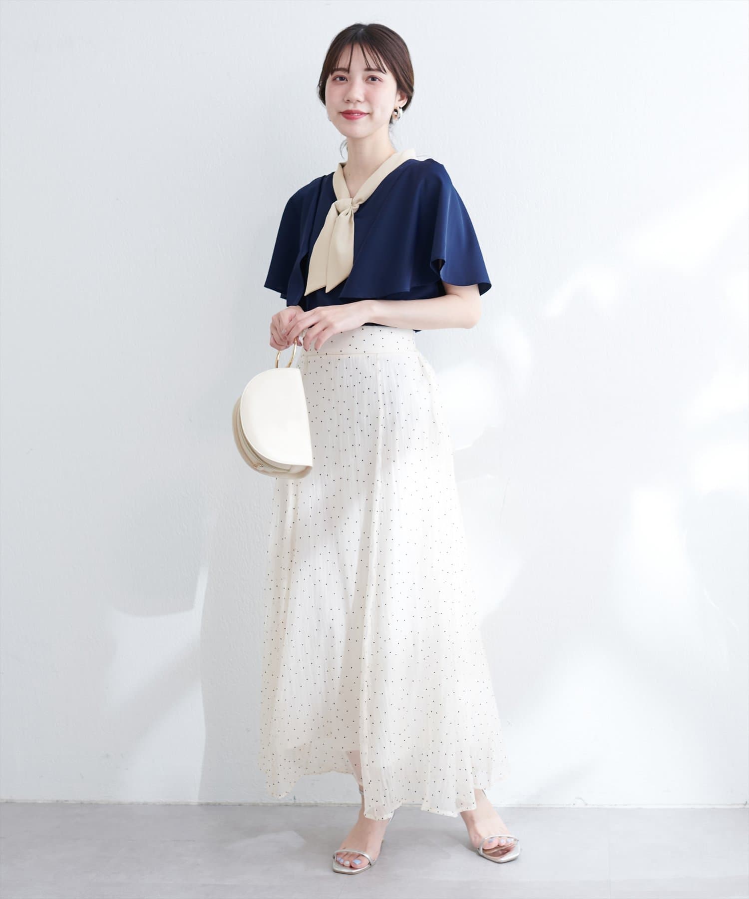 スカート合わせで、上品な印象に仕上げるのはもちろん、