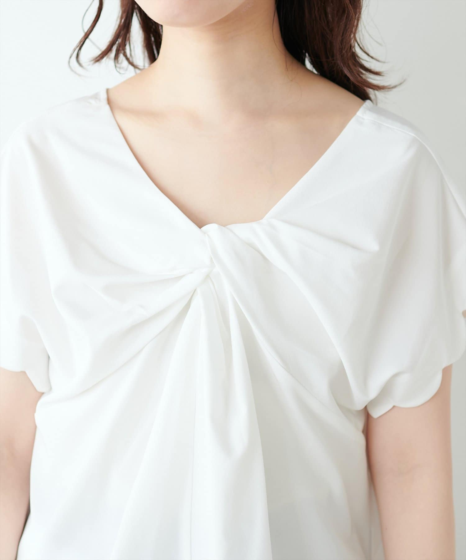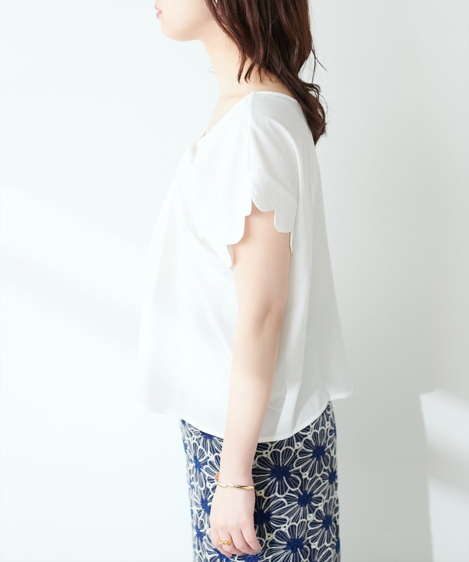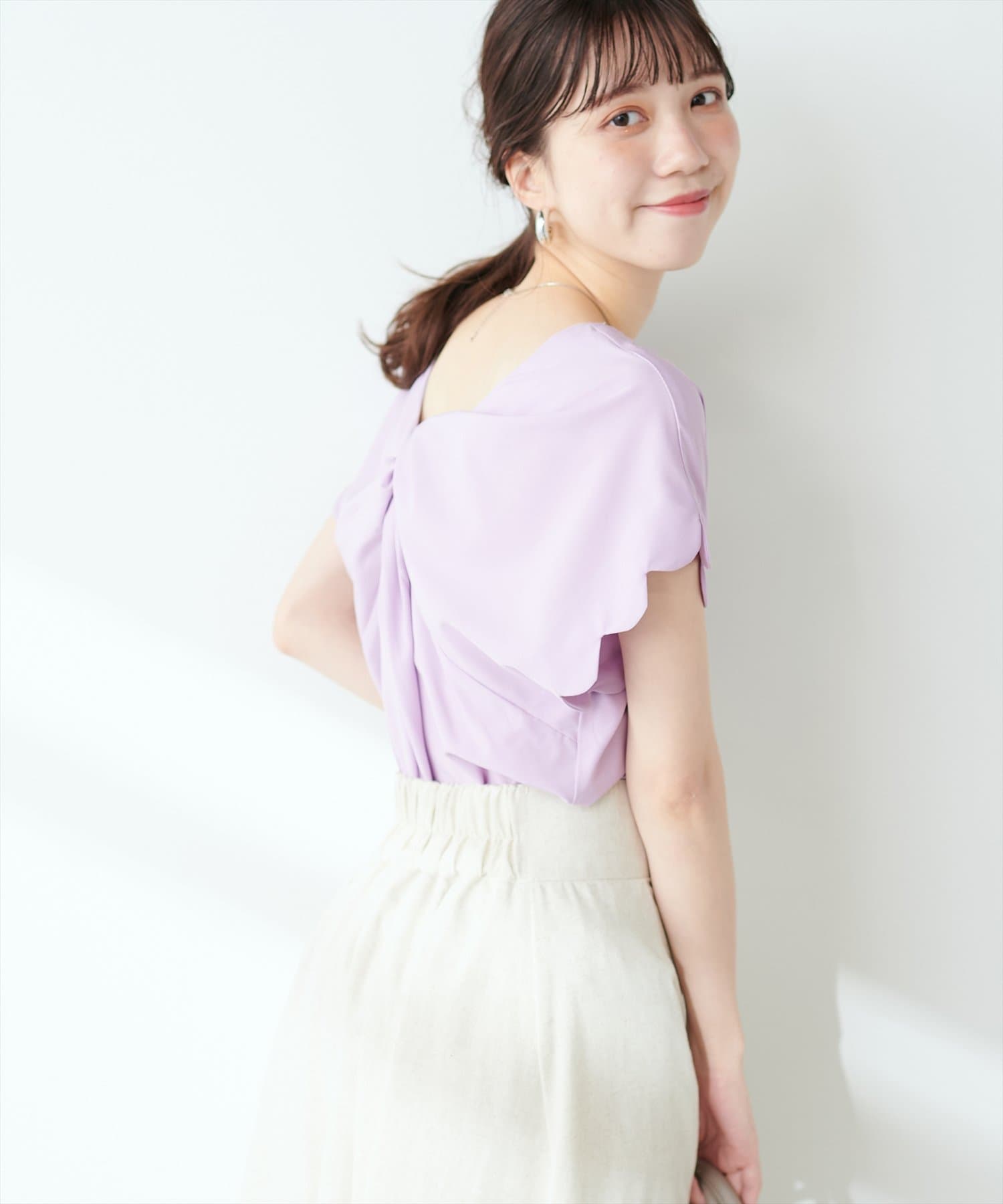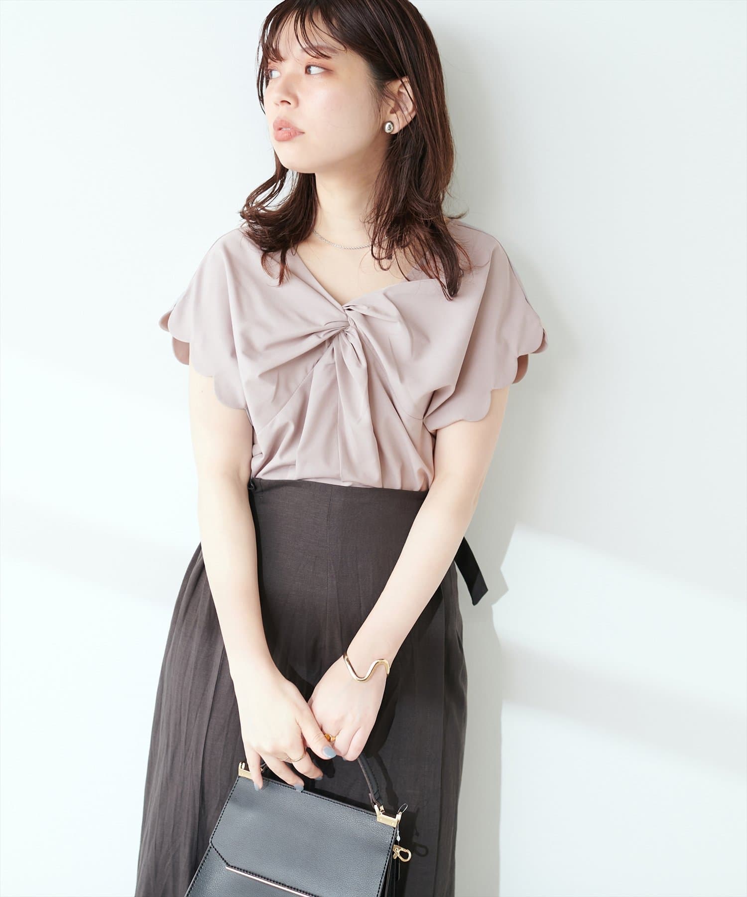ねじりデザインが大人っぽくて可愛いスカラップブラウス。