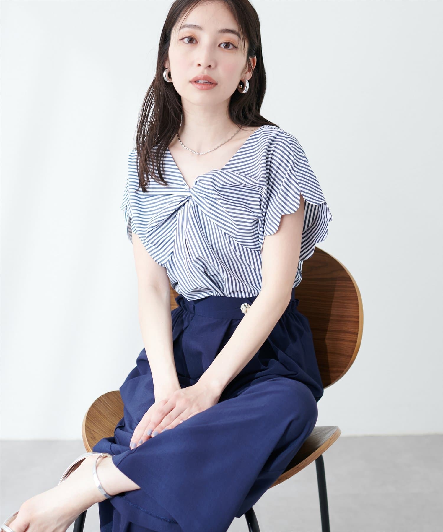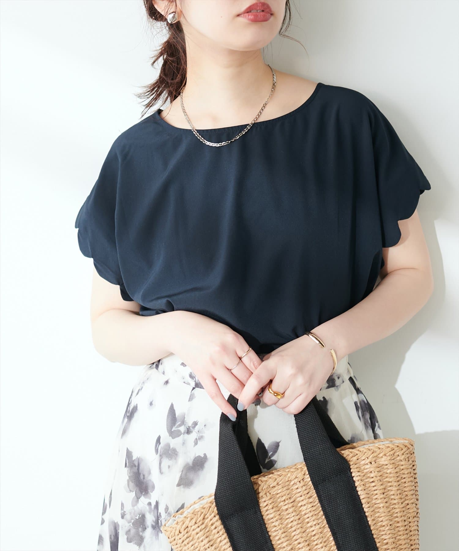 ややフレンチスリーブに仕上げたデザインと、涼やかな素材が季節感のあるスタイリングを叶えてくれます。
