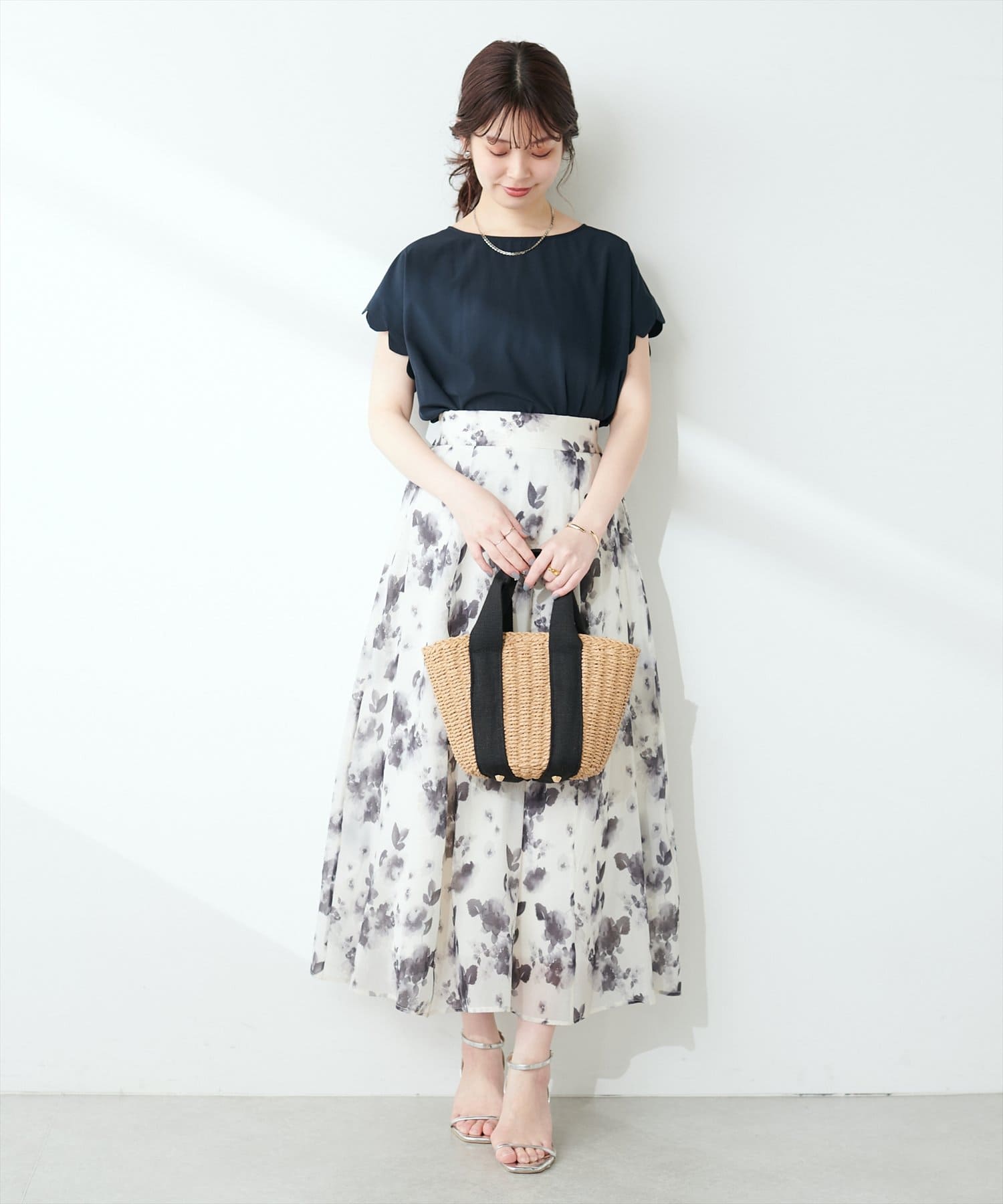 マーメイドシルエットやフレアラインのスカートにウエストインして頂くと、女性らしさが引き立つ上品スタイルに◎
