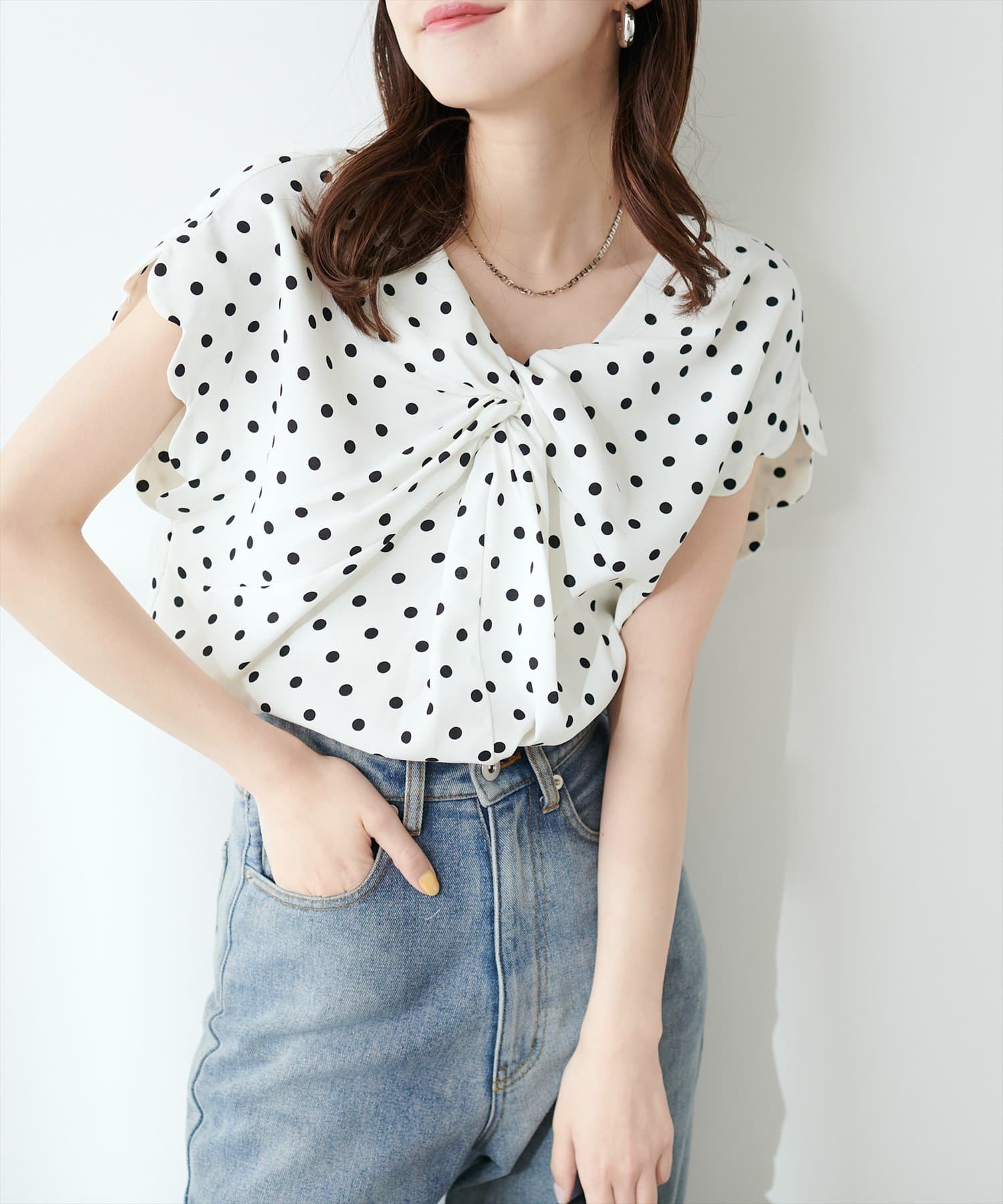 【WEB限定】ねじり&スカラップドット柄ブラウス