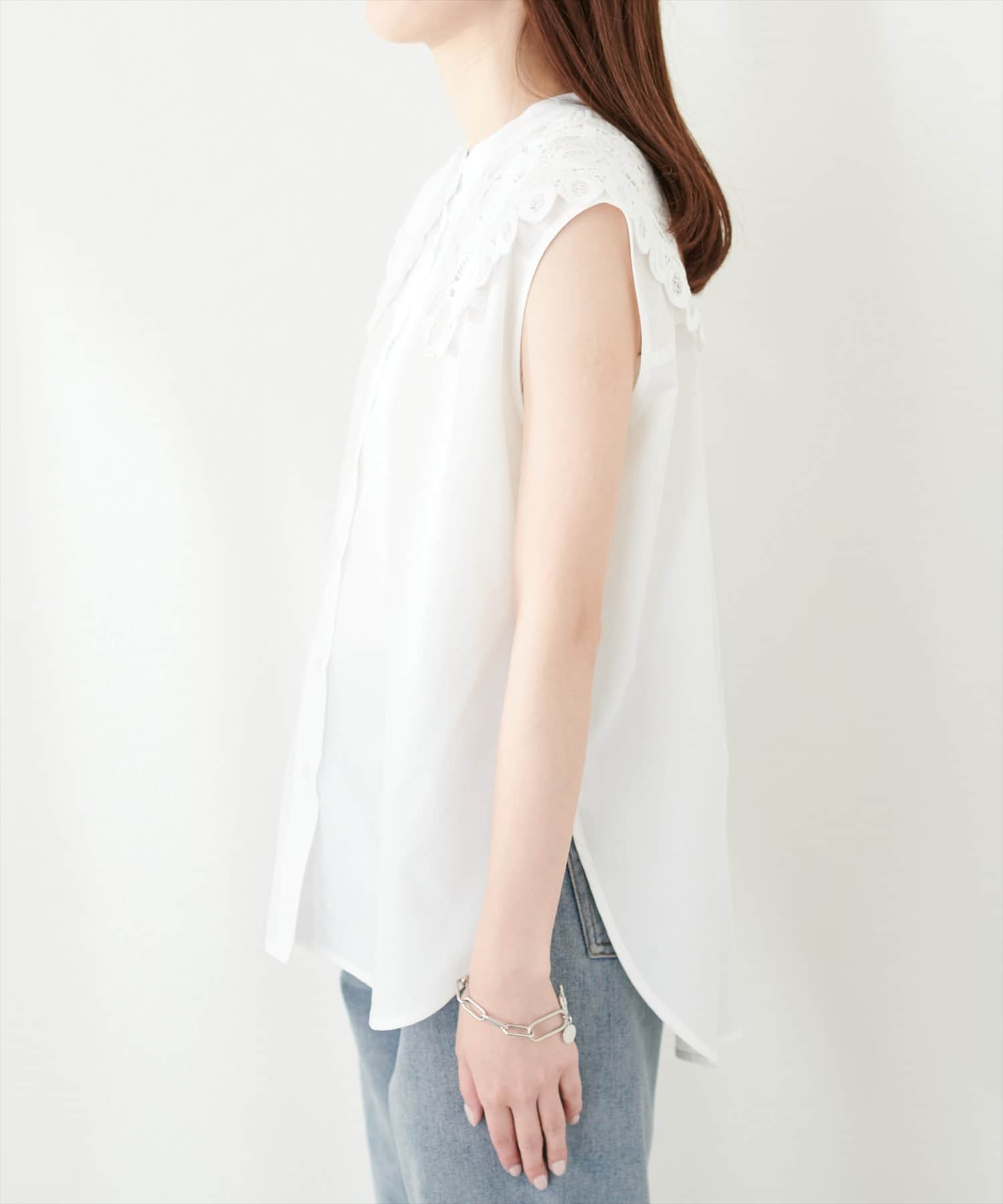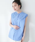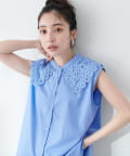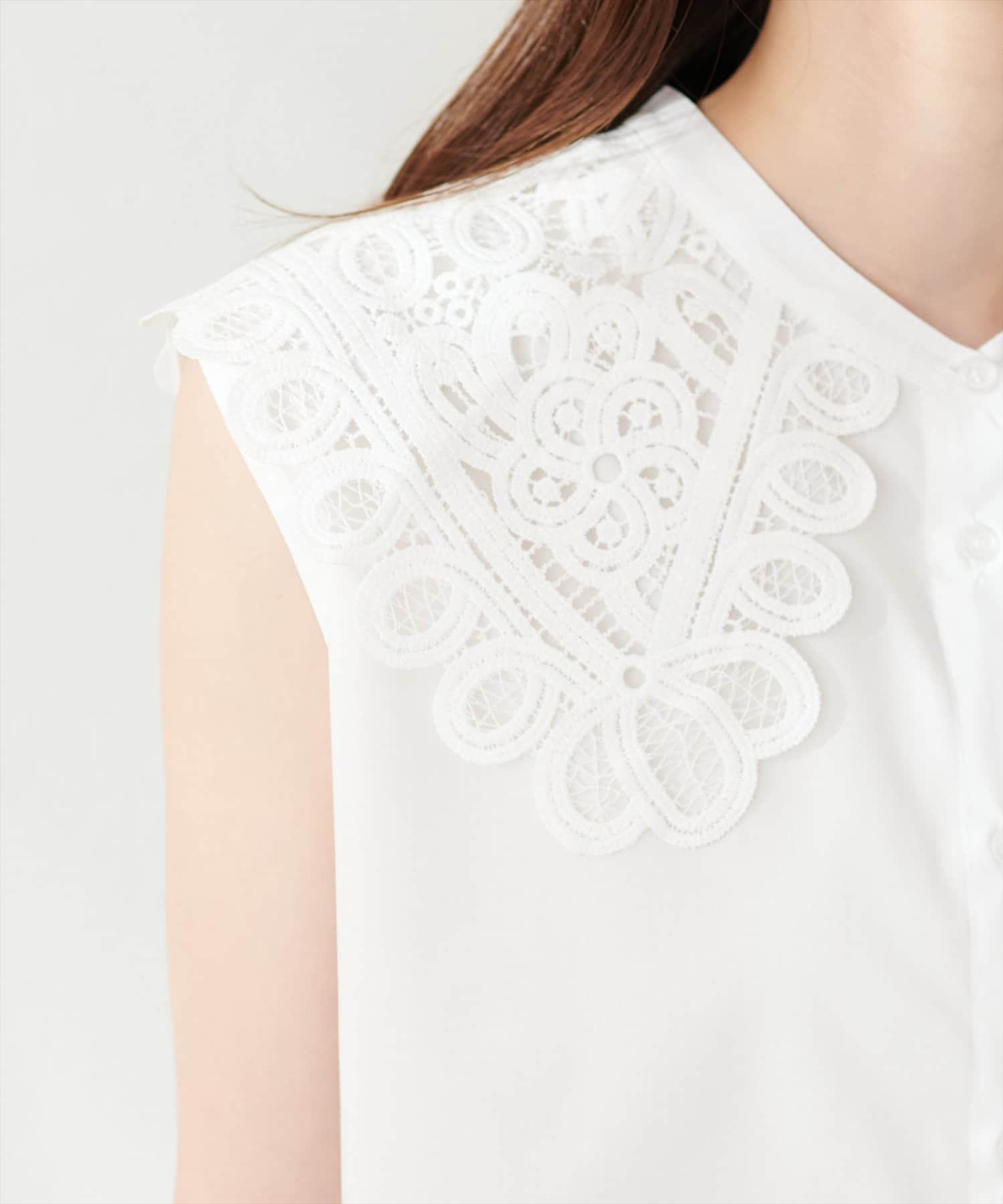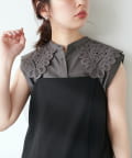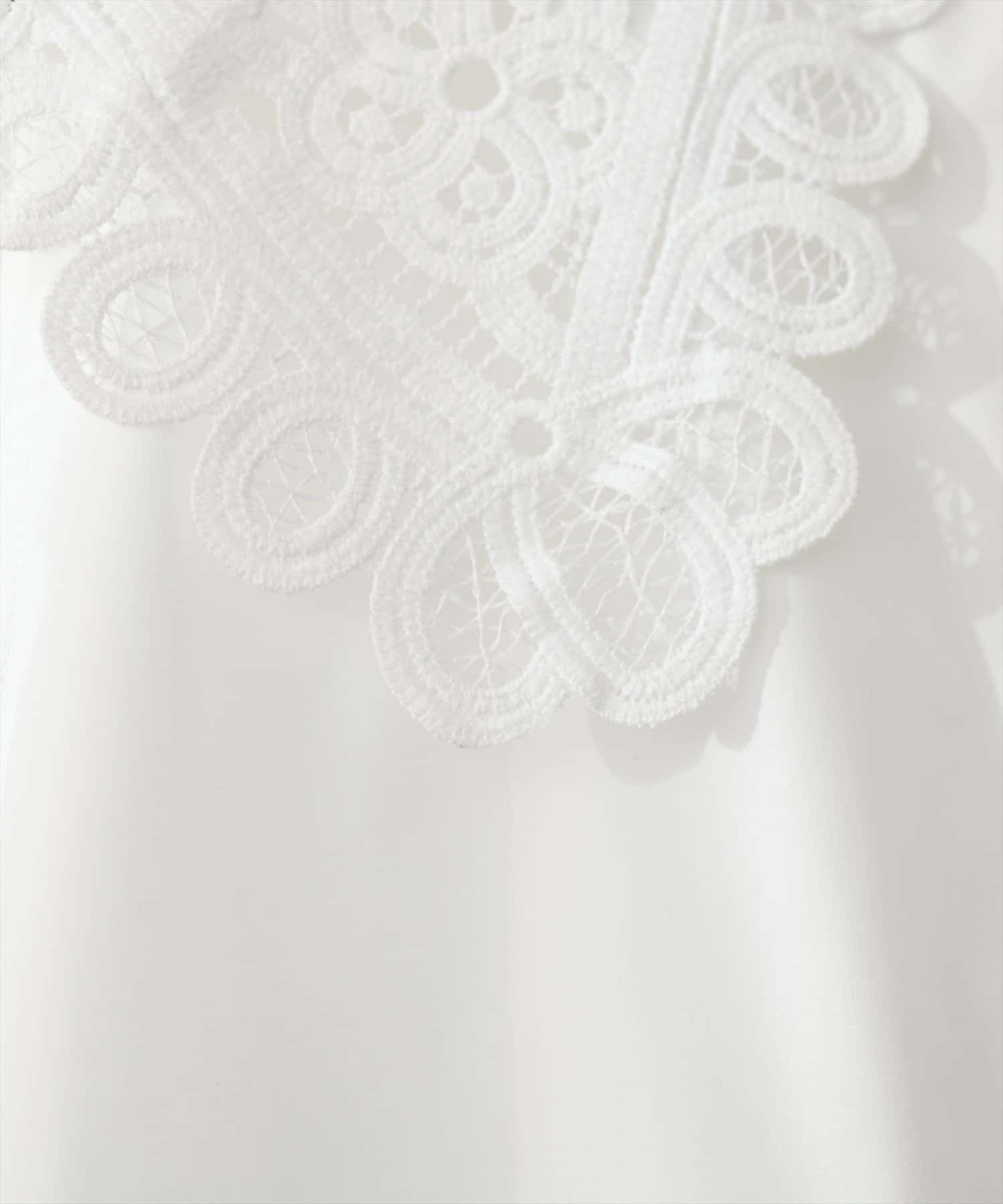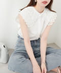 衿レースフレンチスリーブブラウス