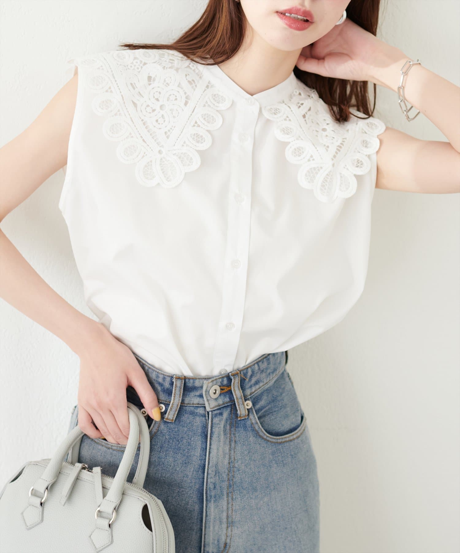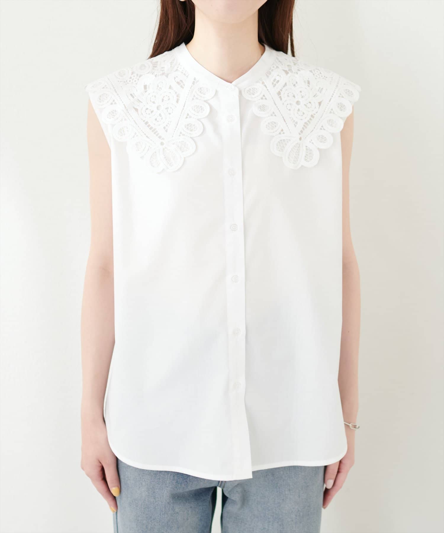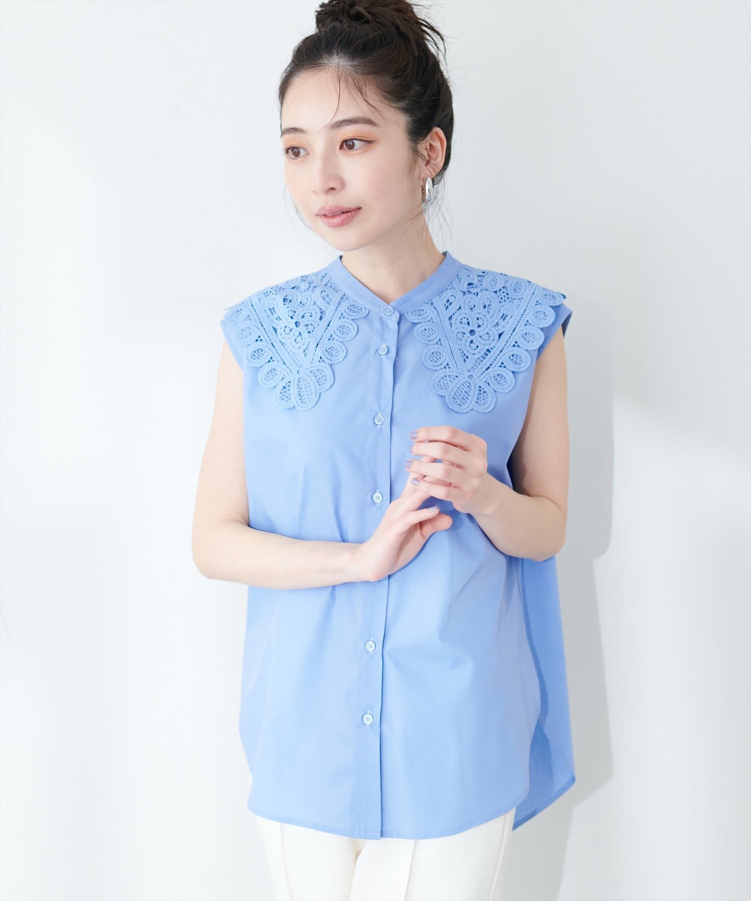 衿レースフレンチスリーブブラウス