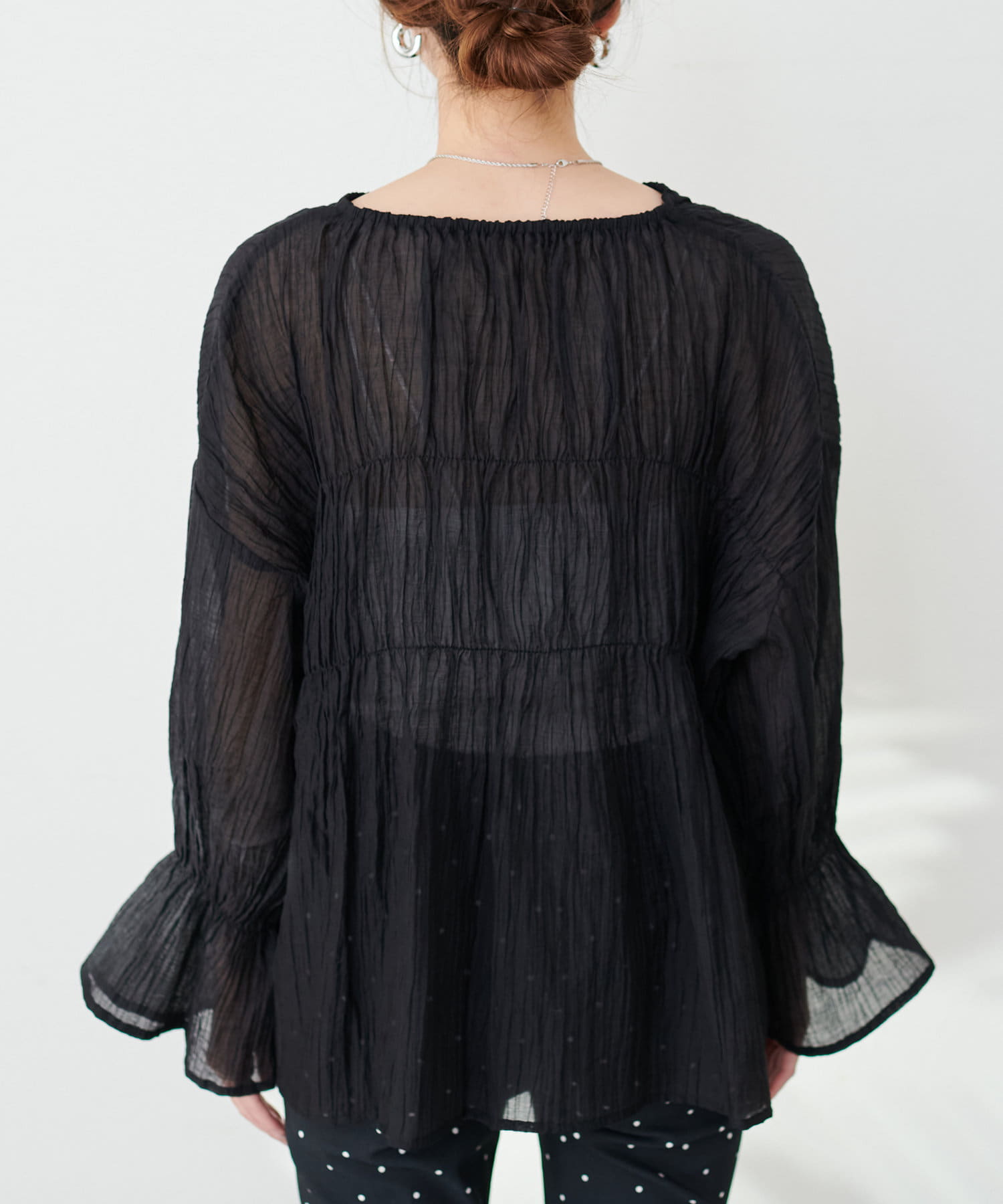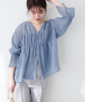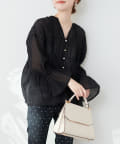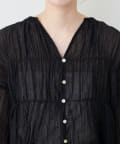 シアー素材キーネックギャザーブラウス