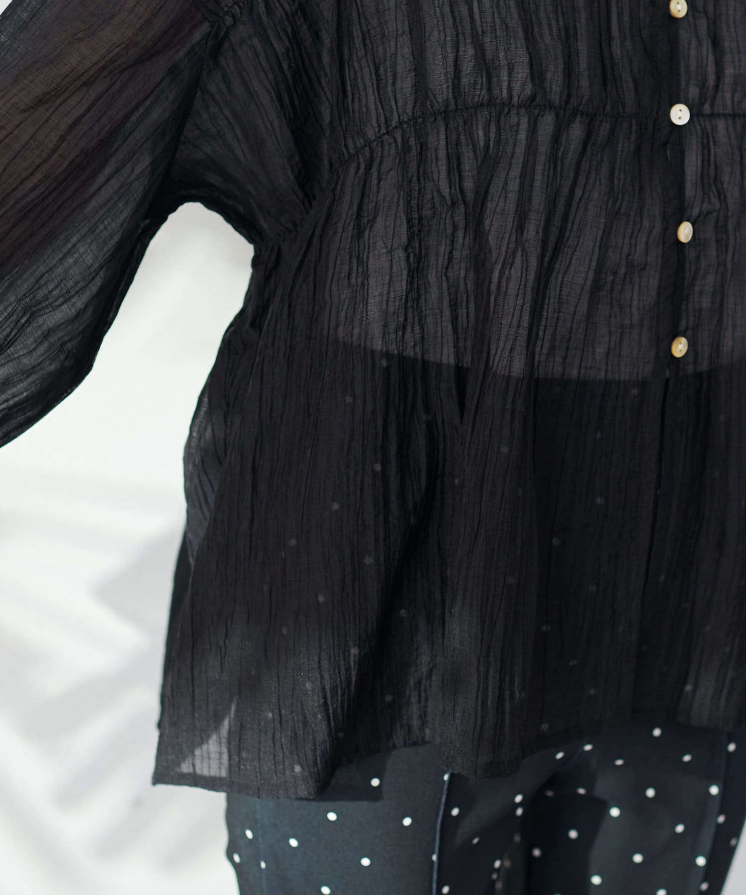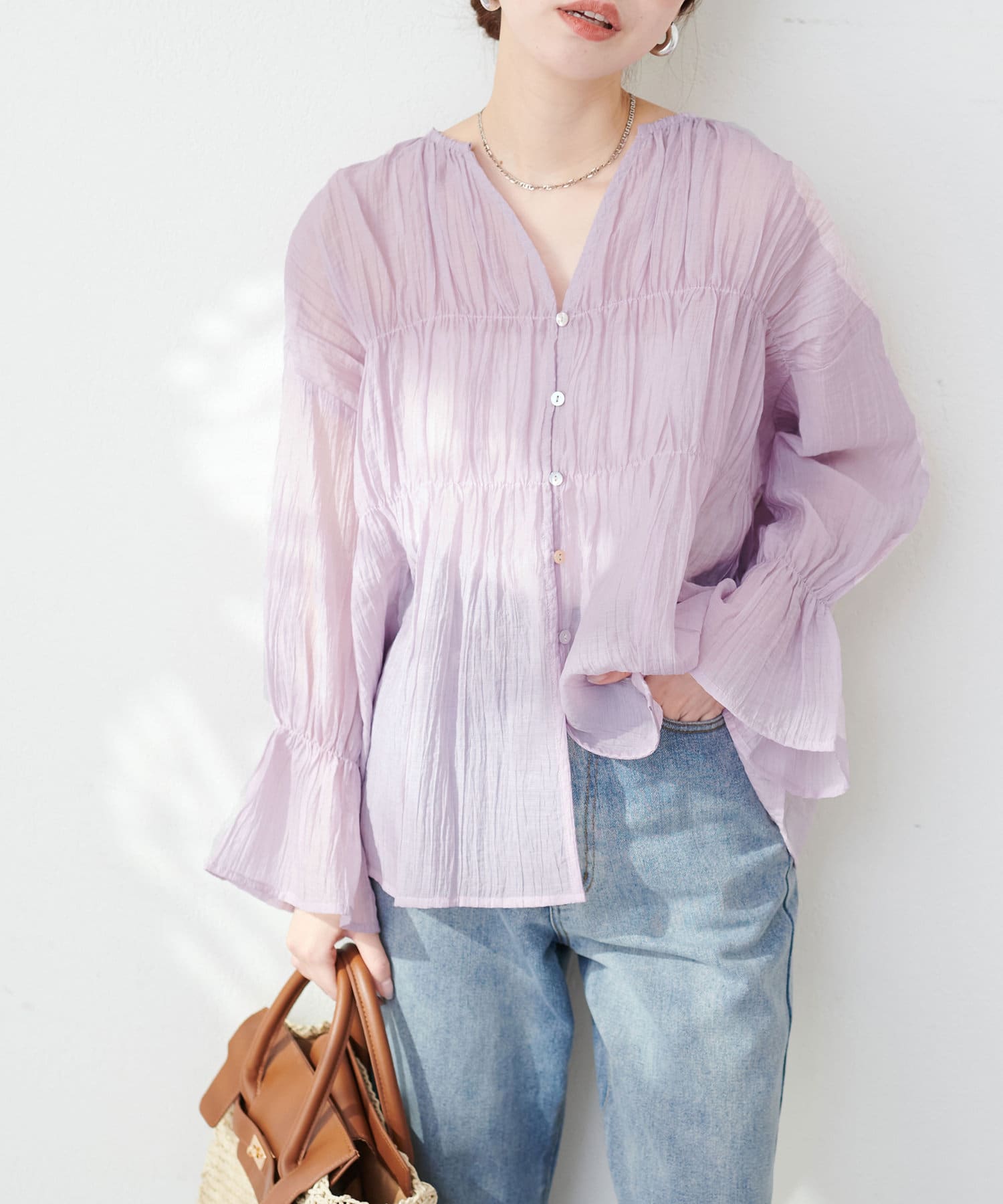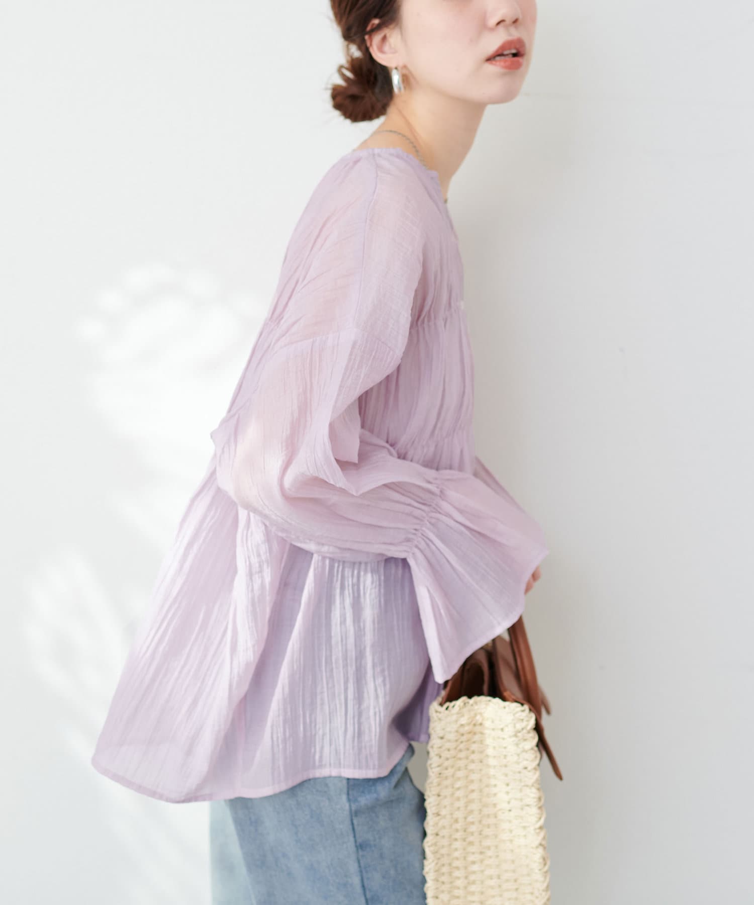 洗いざらしのような自然な風合いが魅力のシアーブラウス。